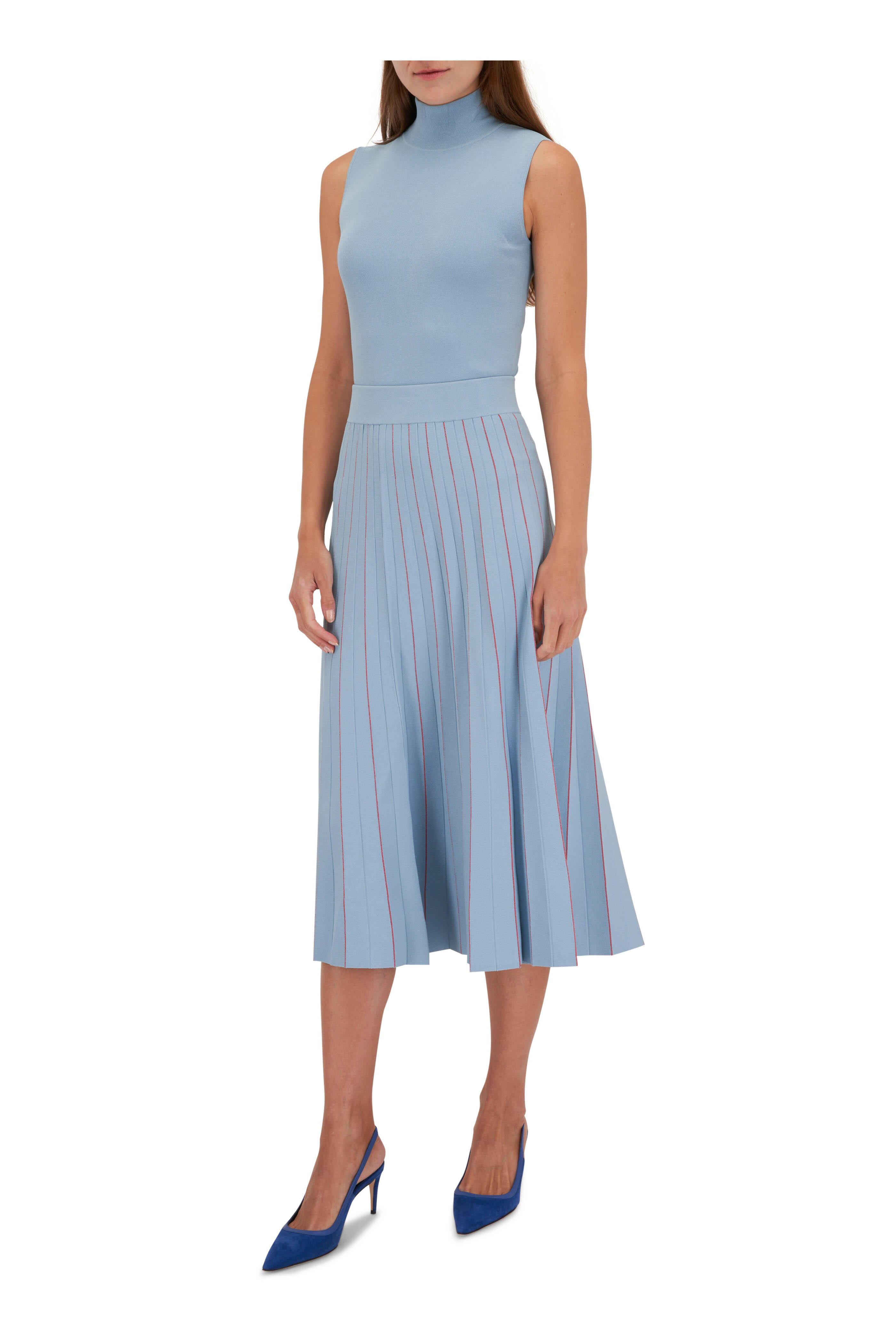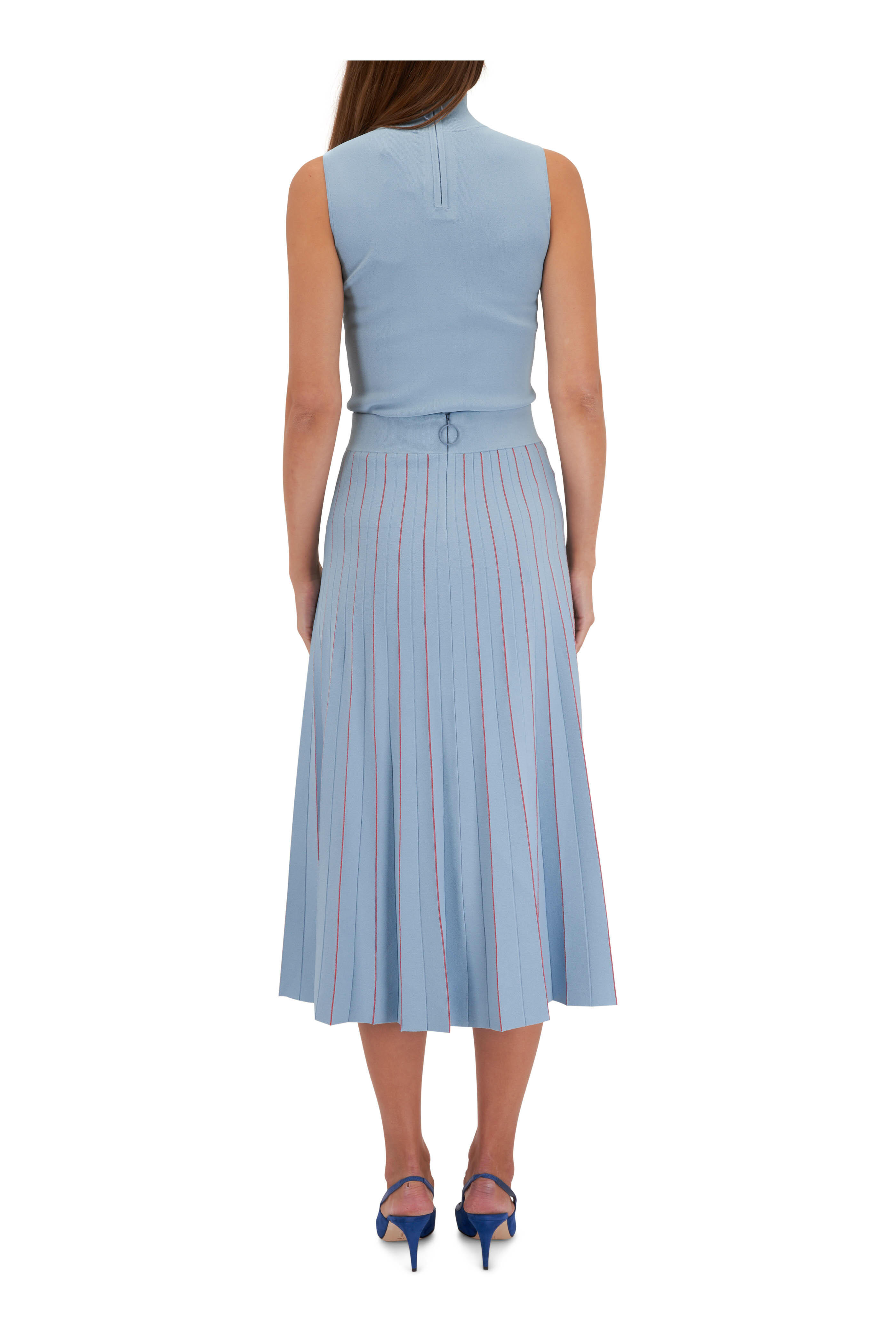 Red Sky Striped Intarsia Pleated Midi Skirt