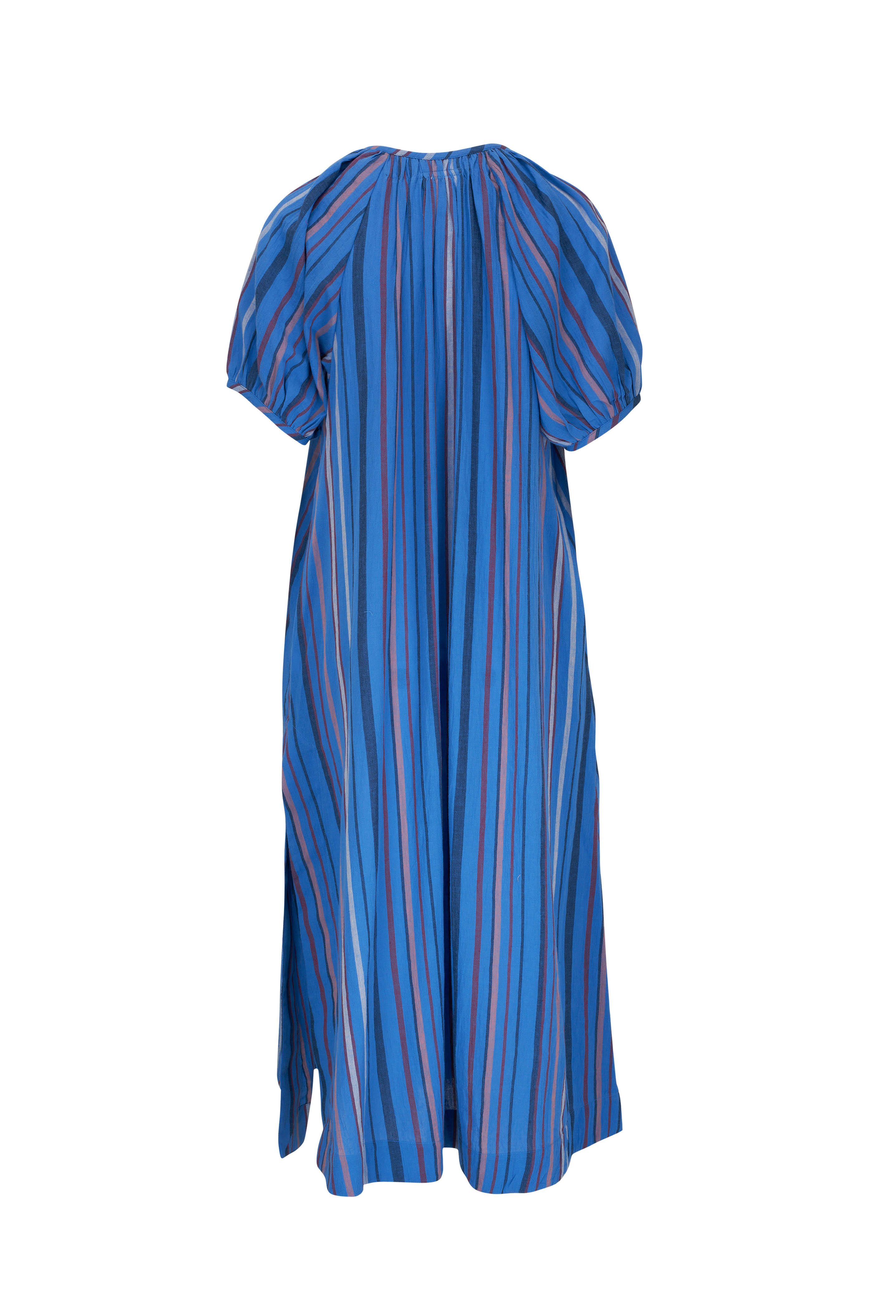 V-neckline. Puff sleeves. Left side slit. Straight hem. Imported. Color: Catch My Drift. 100% cotton. Hand wash.