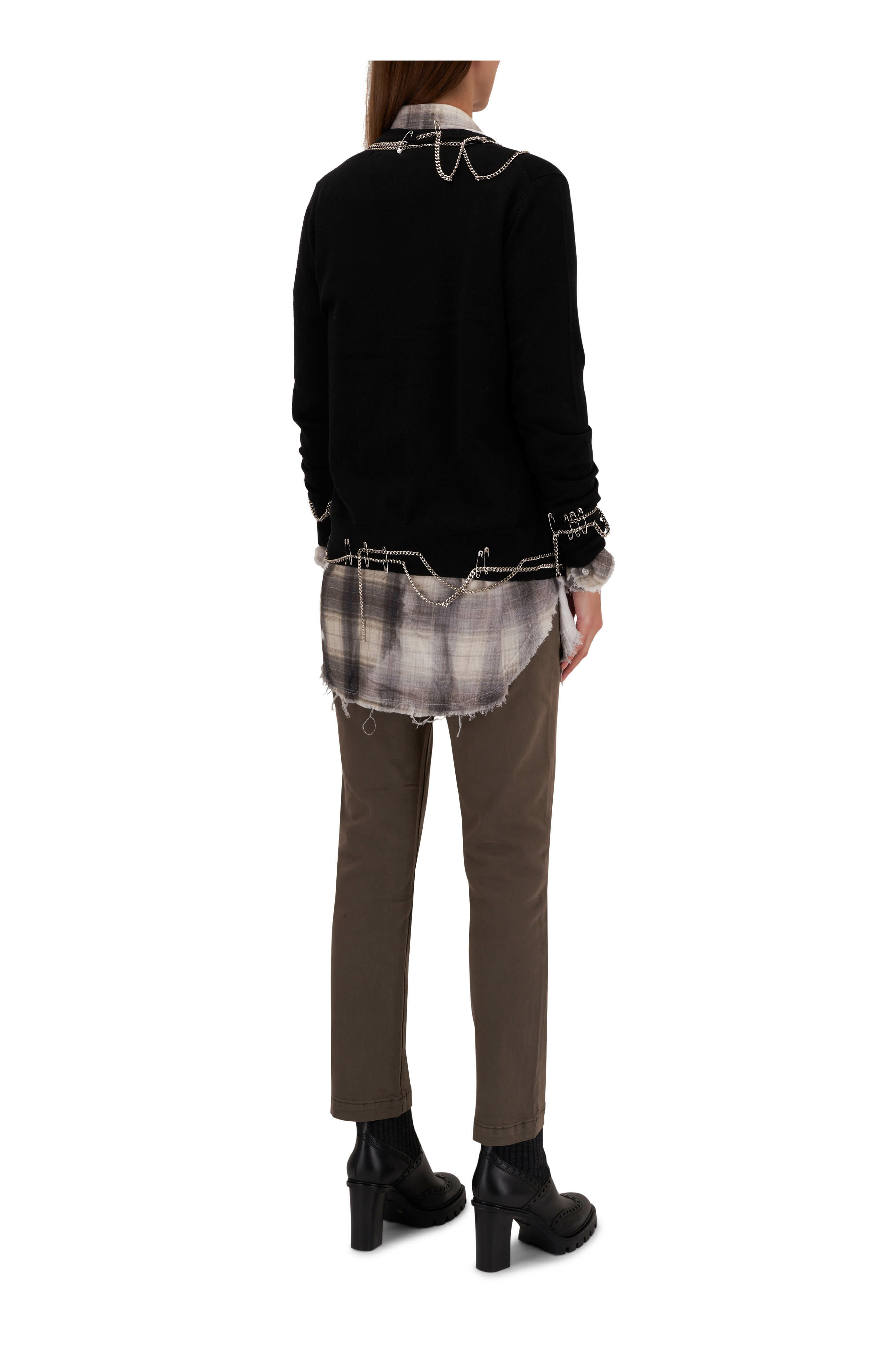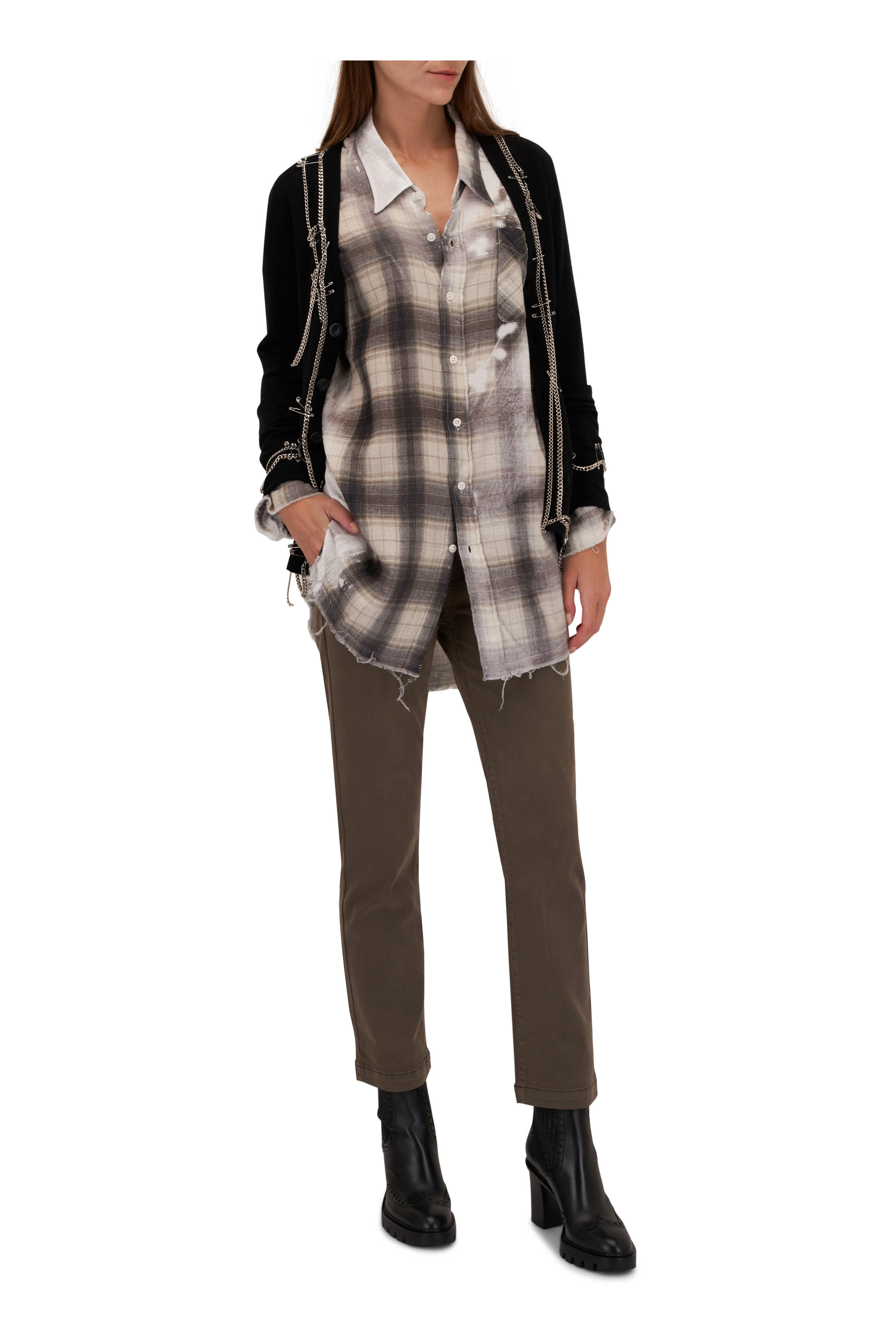 Shredded Seam Drop Neck Bleached Gray Plaid Shirt