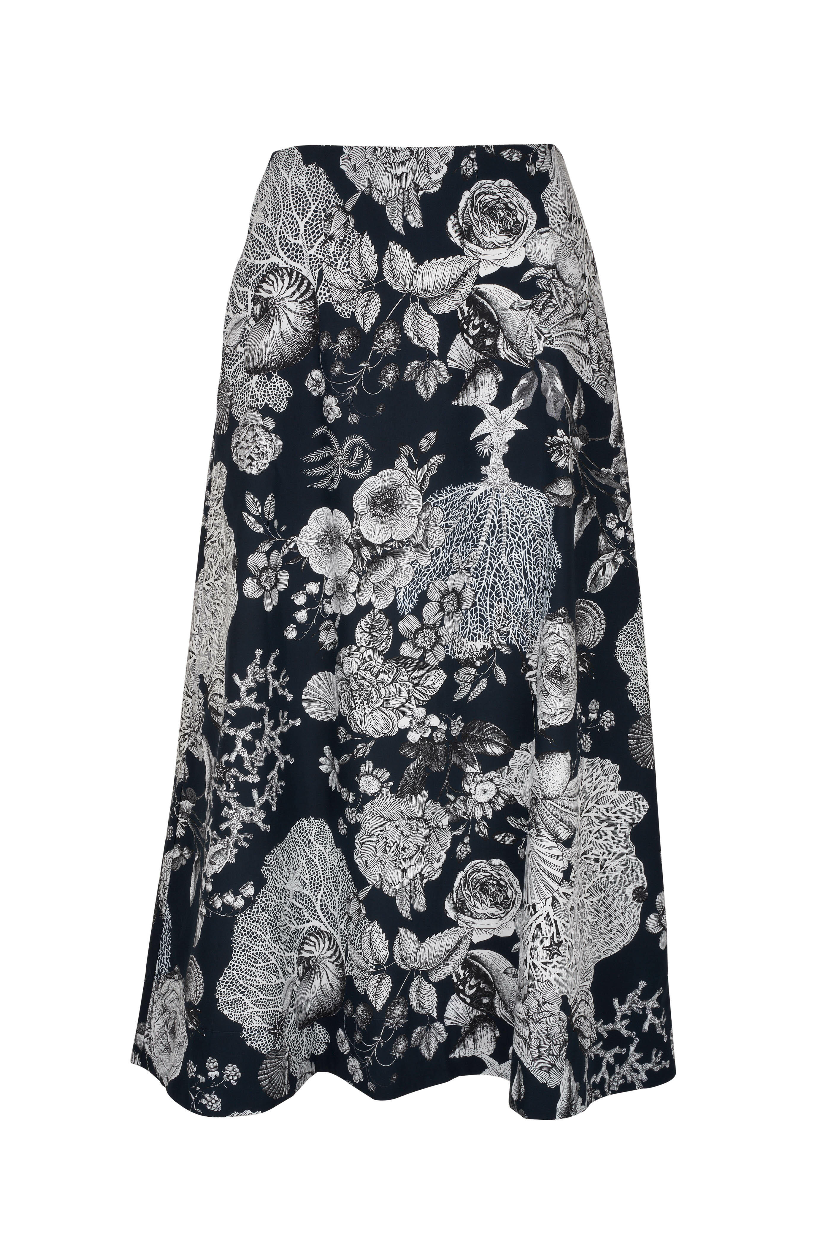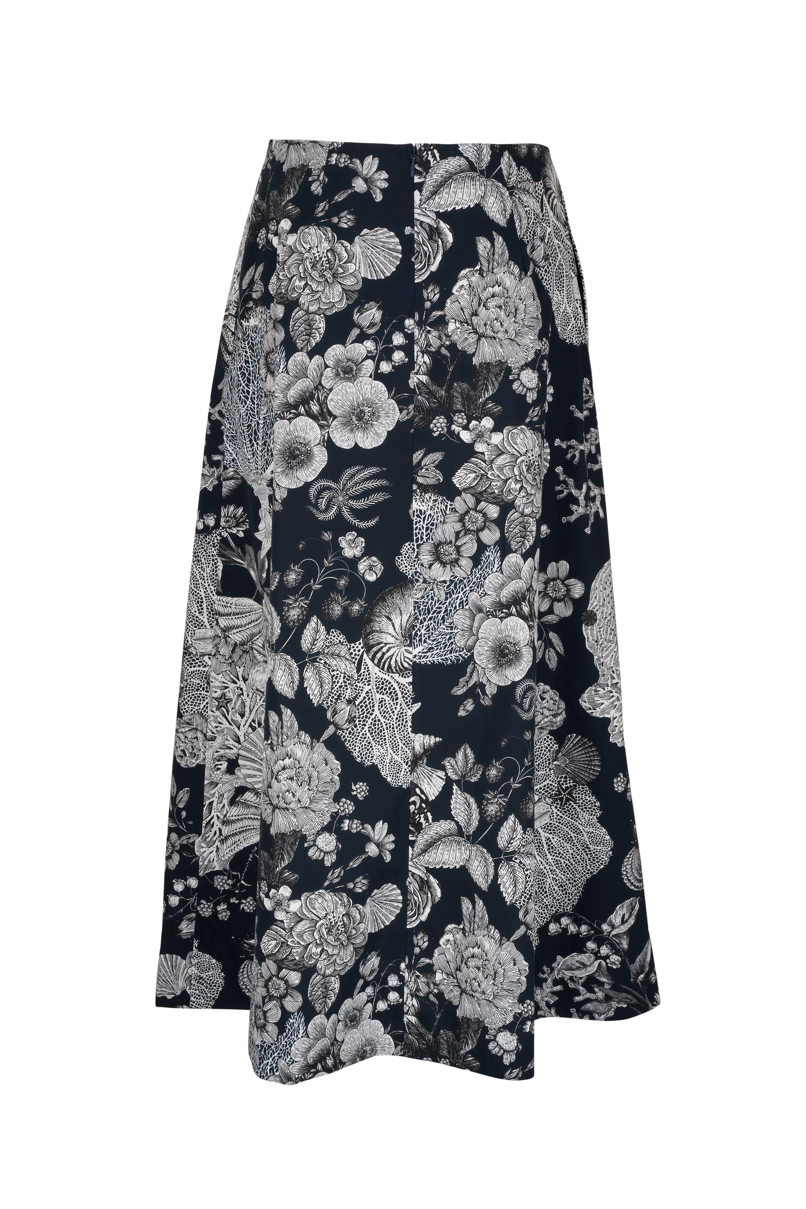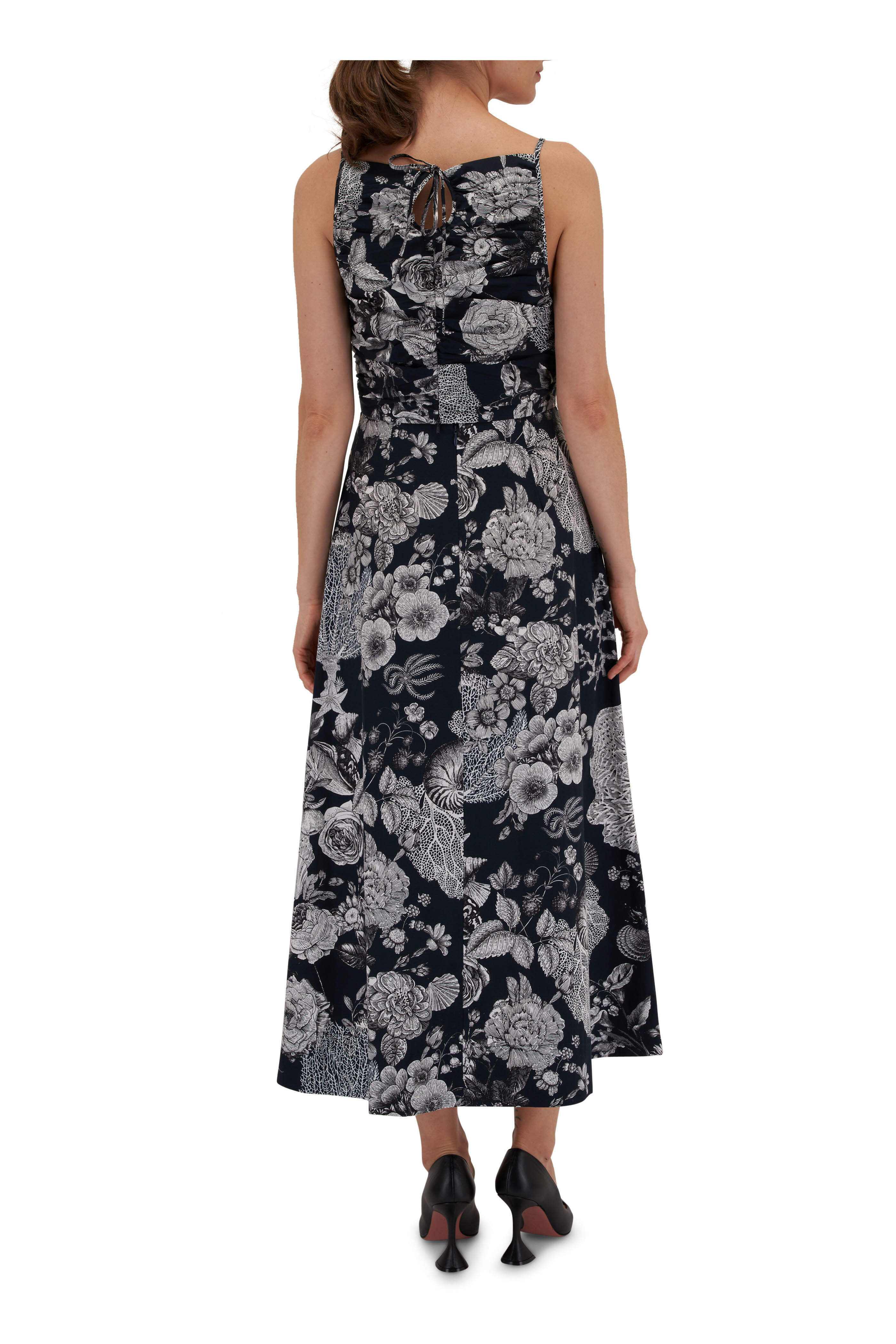 Concealed back zip. Made in the USA. A-line. Midi length. 100% cotton. Dry clean.