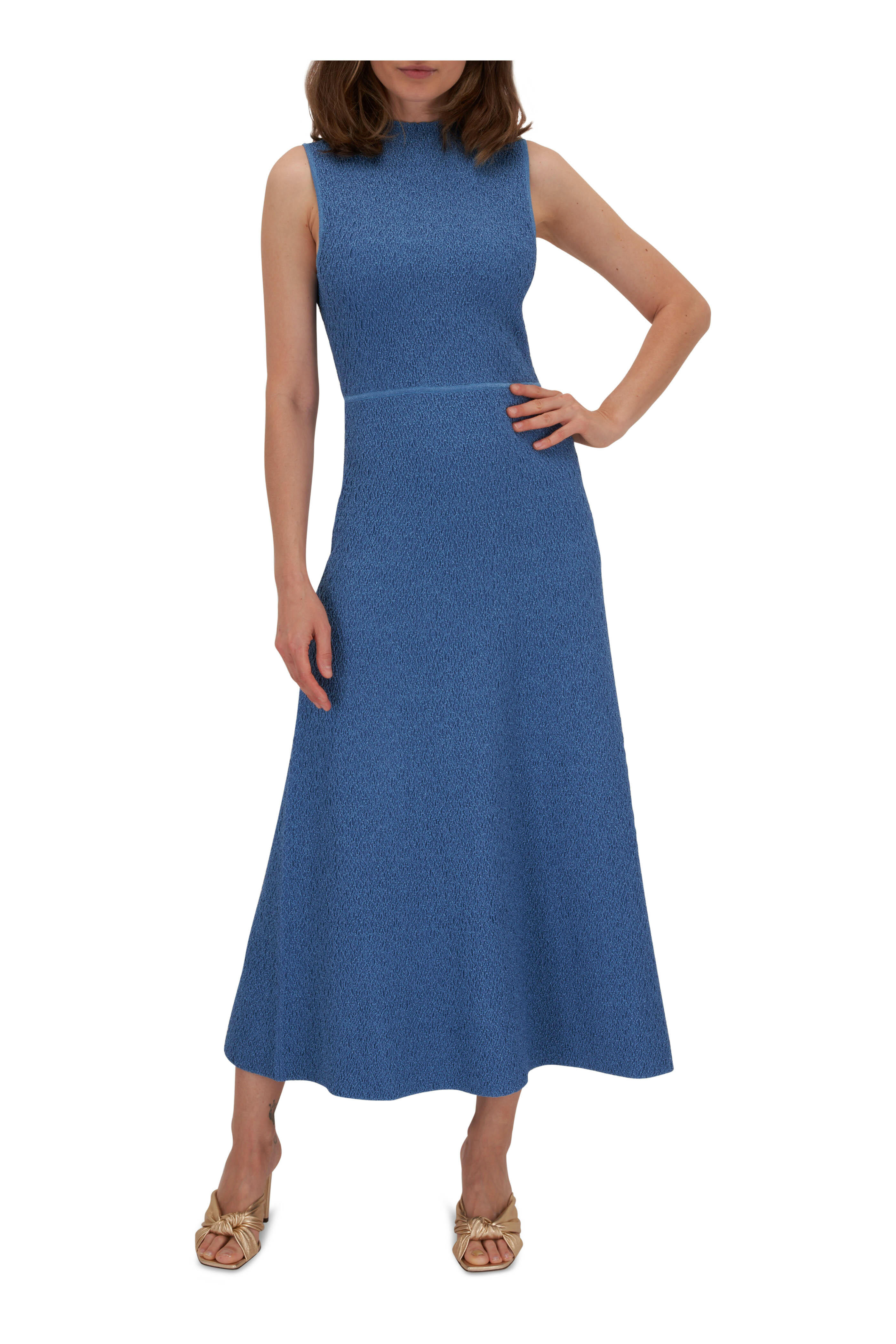 Cerulean Lurex Knit Mock Neck Midi Dress