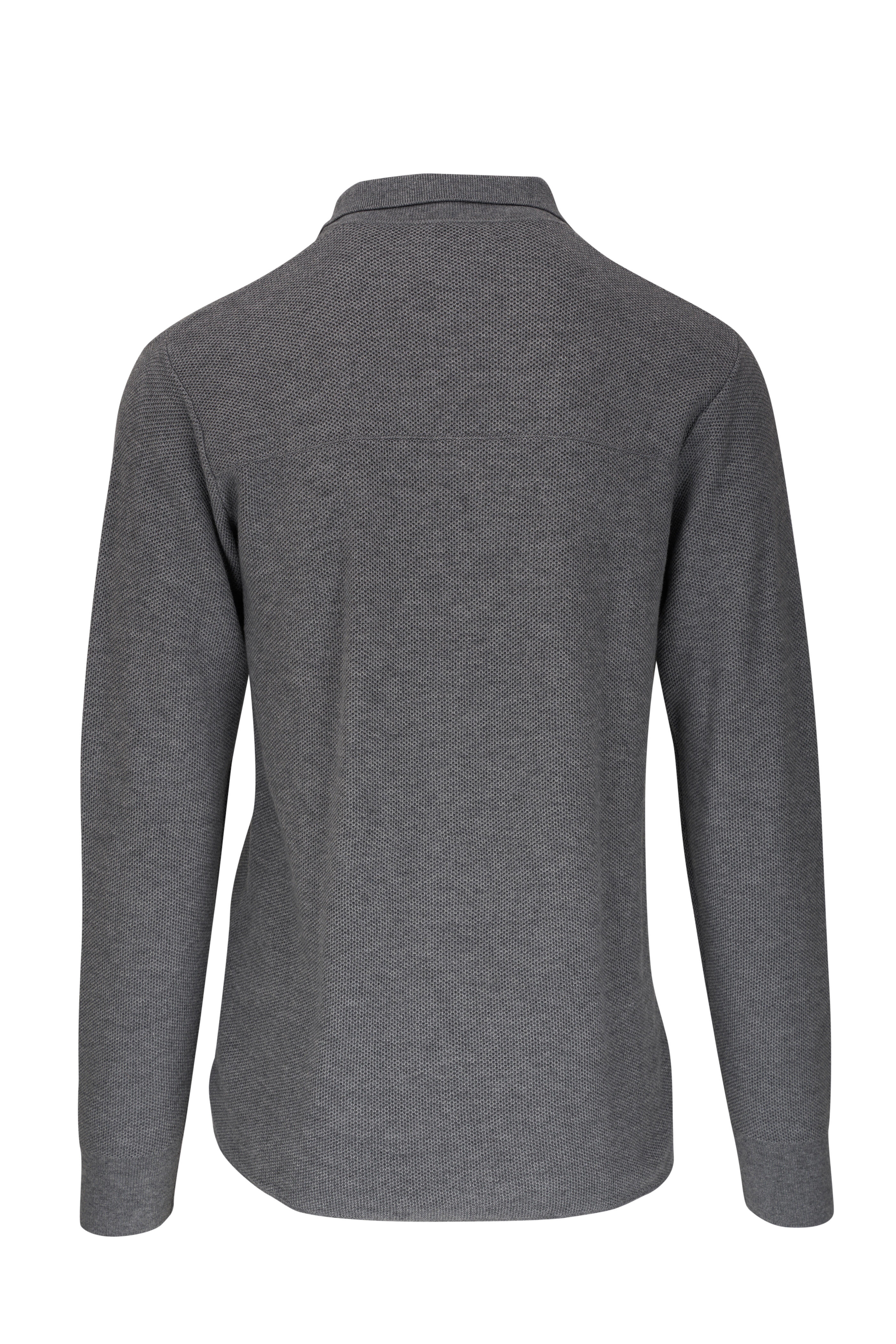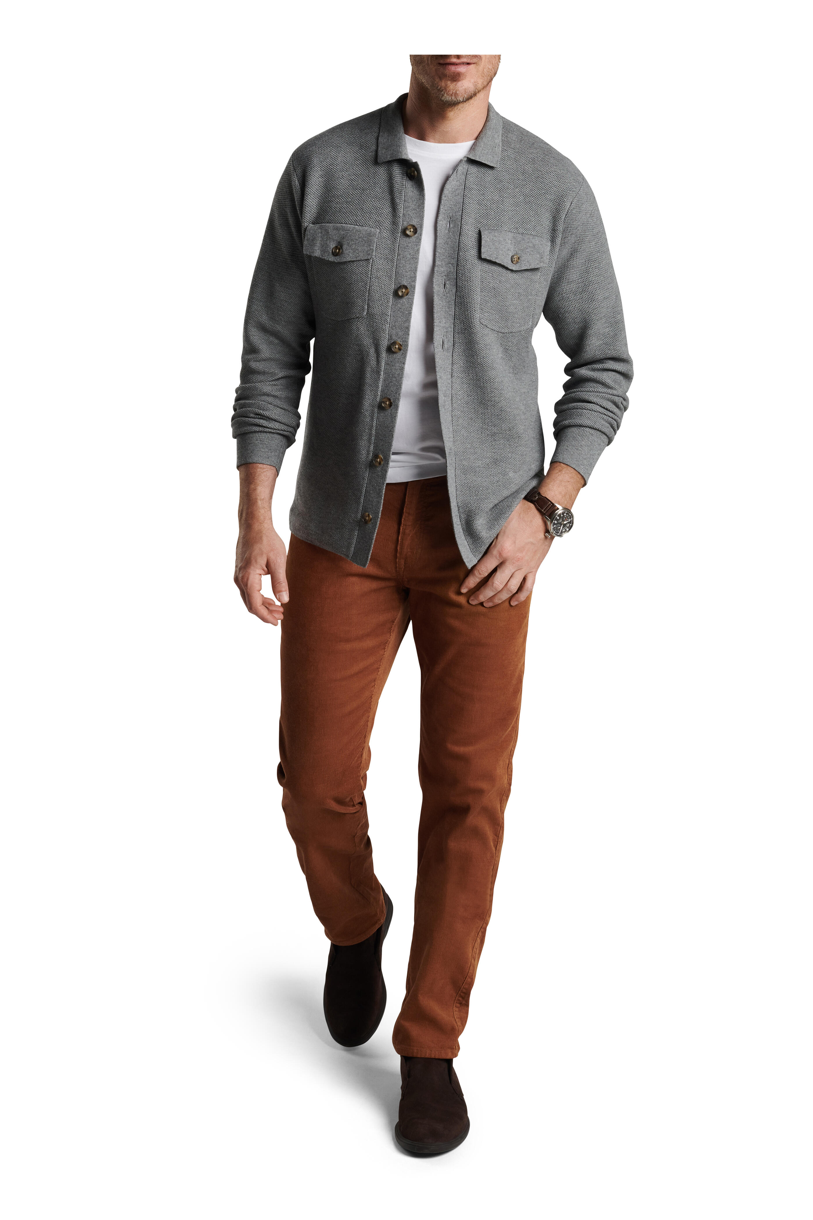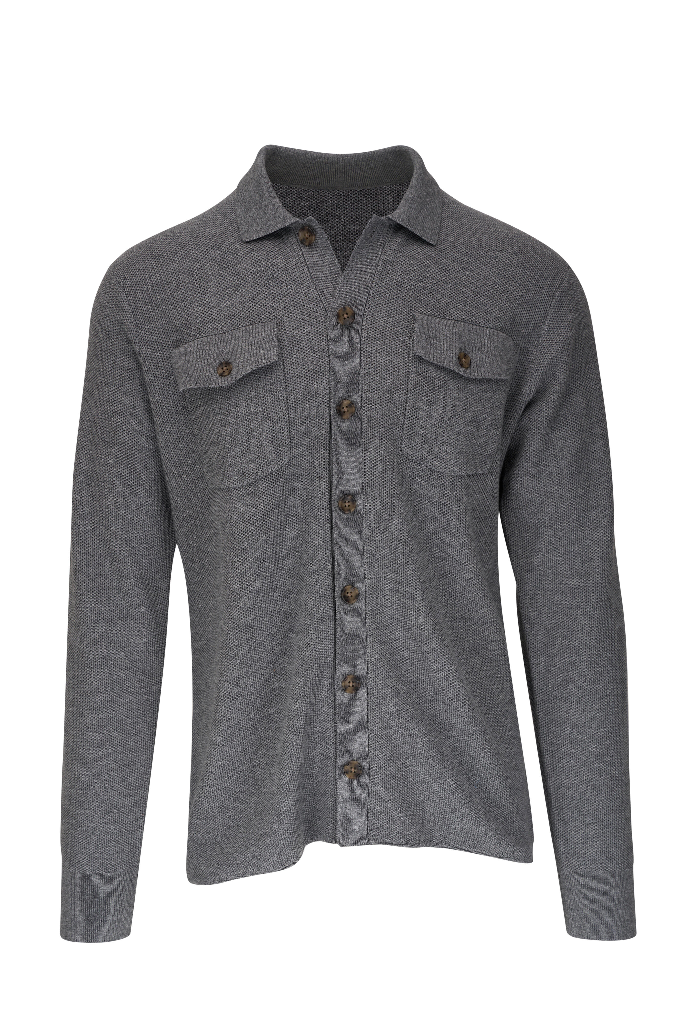 Spread collar. Front button placket. Chest patch pockets. Imported. Classic fit. 70% supima cotton, 30% merino wool. Hand wash.