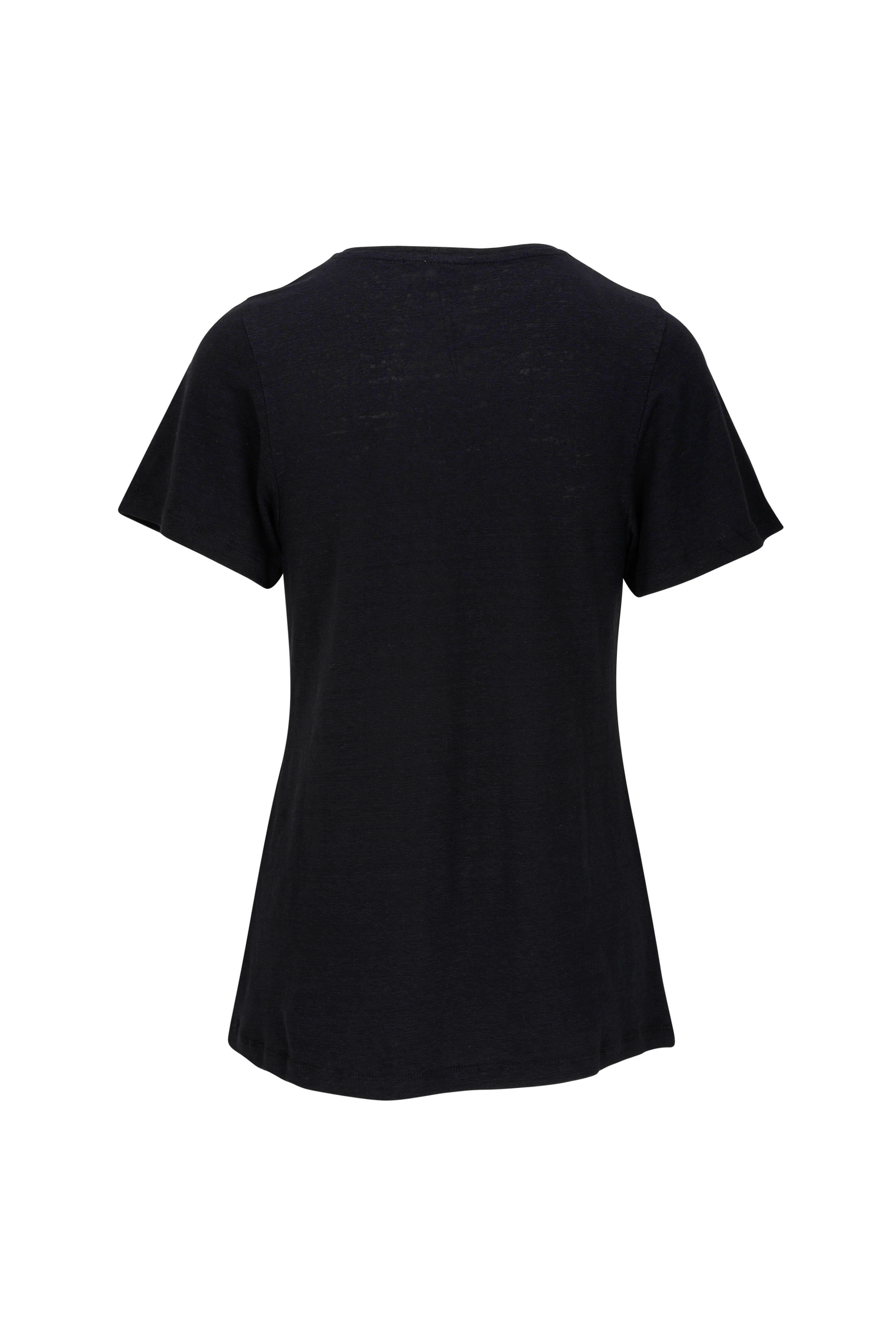 Black Linen Curved Seam T-Shirt