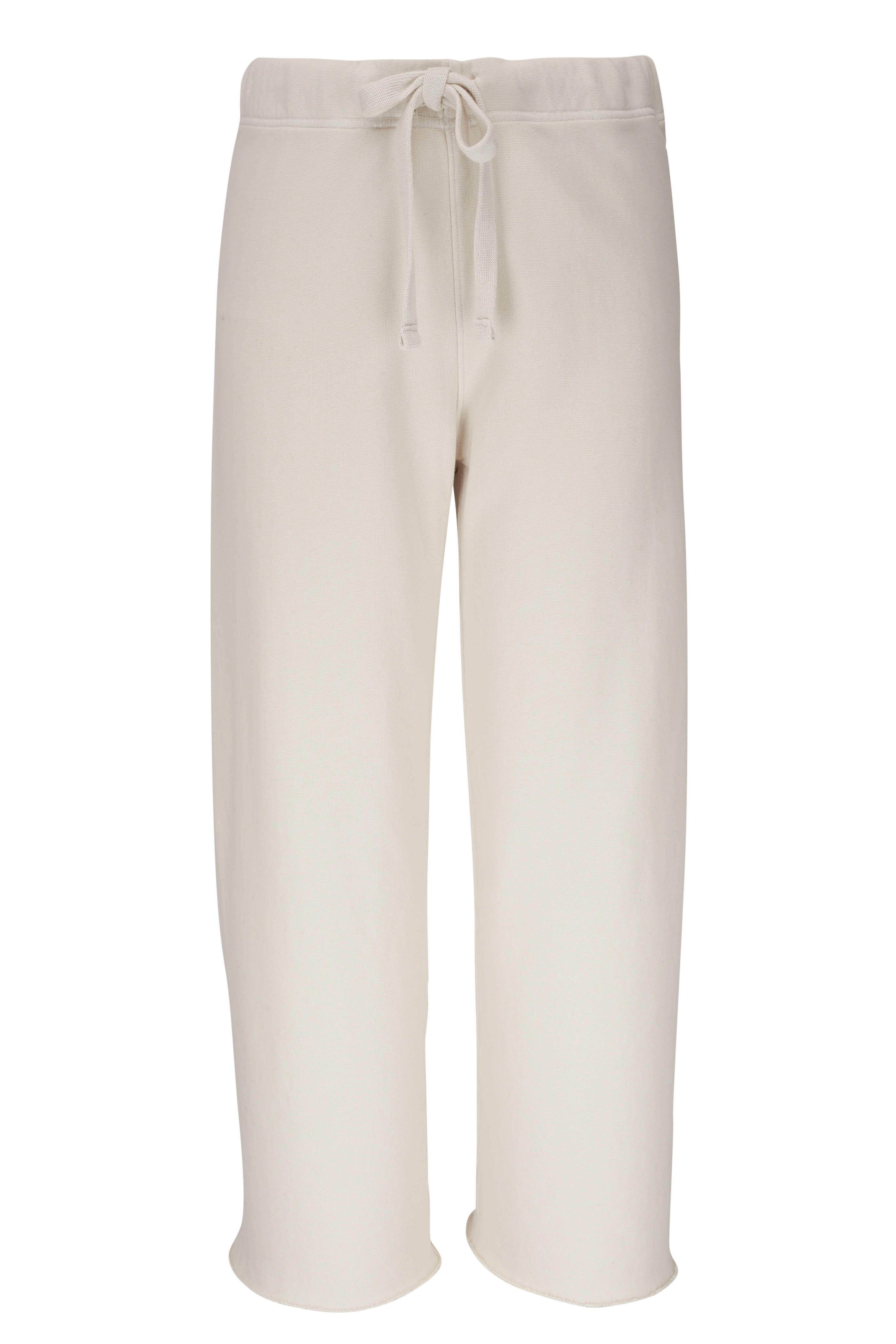 Pull-on style. Banded, elasticized waistband. Drawstring at waist. Made in the USA. 23" inseam. Reinterpreted the traditional sweatpant into a cool, contemporary silhouette with a fashion-forward feel.. Cropped hand-cut raw hem. Mid-rise, wide-leg fit. 100% cotton. Machine wash.