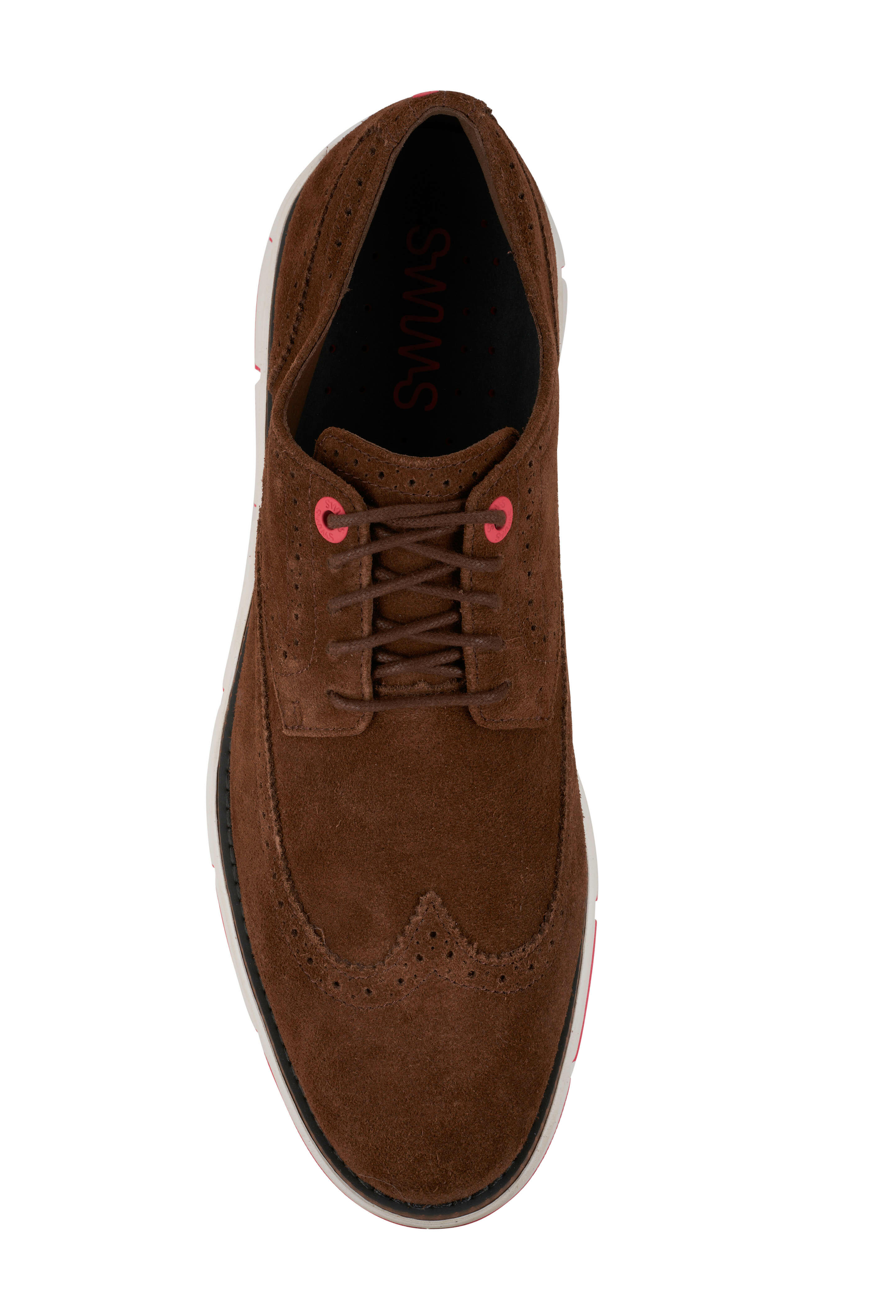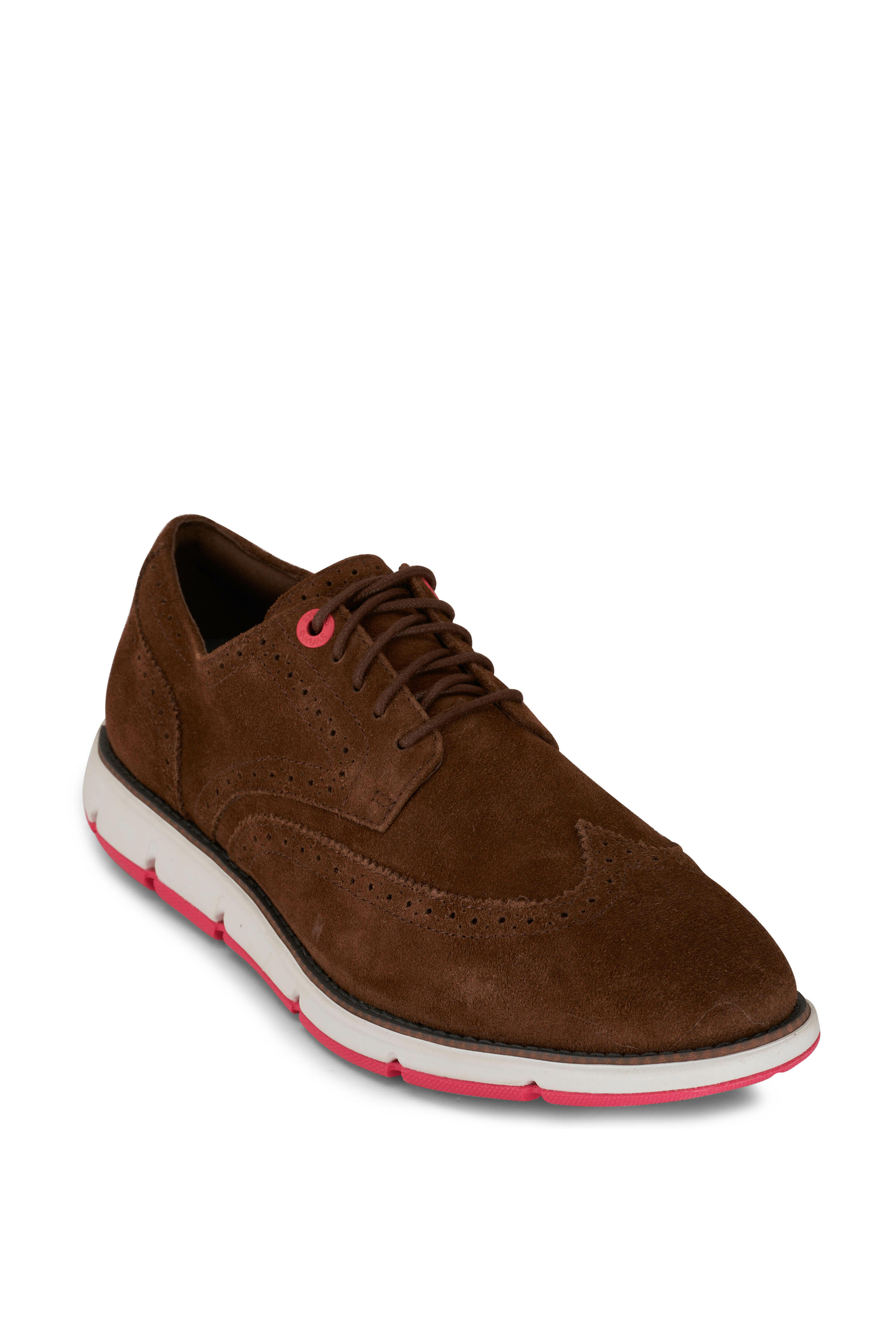 Tapered toe; wingtip stitching. Five eyelet lace up closure. Breathable and moisture wicking. Cushioned insole. Imported. 97% leather, 7% cotton lace. Outsole: 60% rubber, 40% EVA.