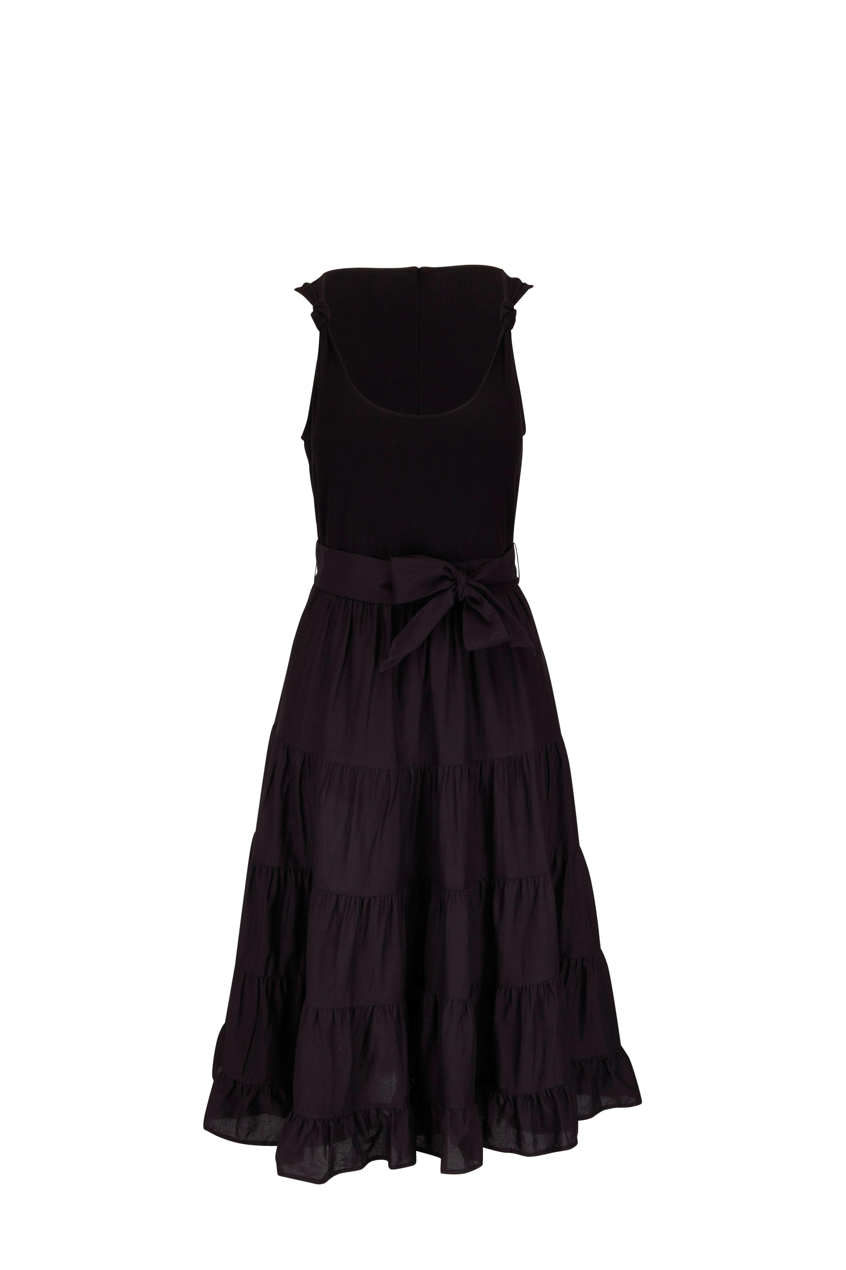 Scoop neckline. Concealed back zip. Knotted shoulder straps. Slip on style. Self-tie belt. Imported. 45" shoulder to hem. 55% cotton, 45% viscose. Machine wash.