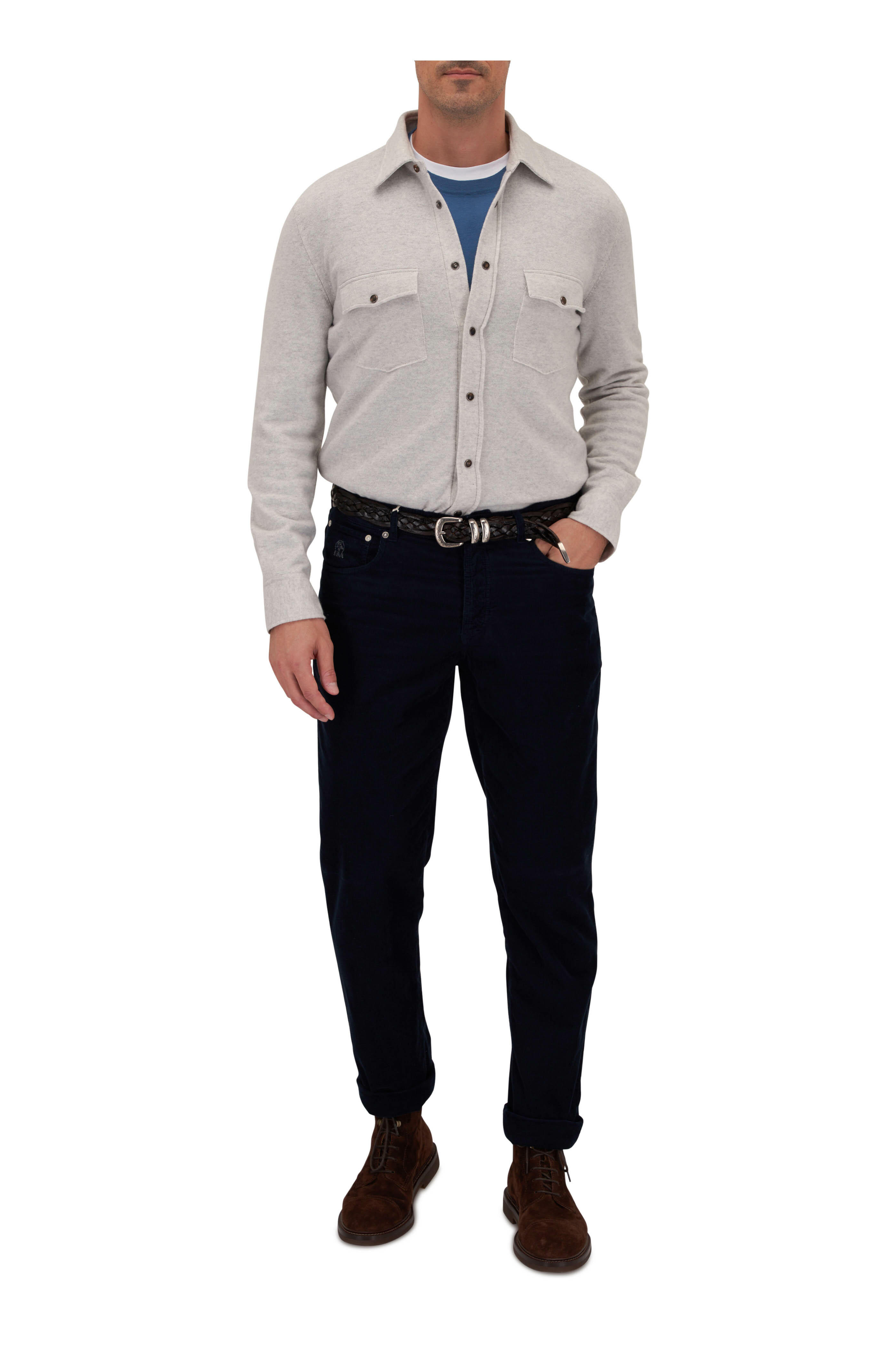 Light Gray Wool, Cashmere & Silk Sweater Shirt