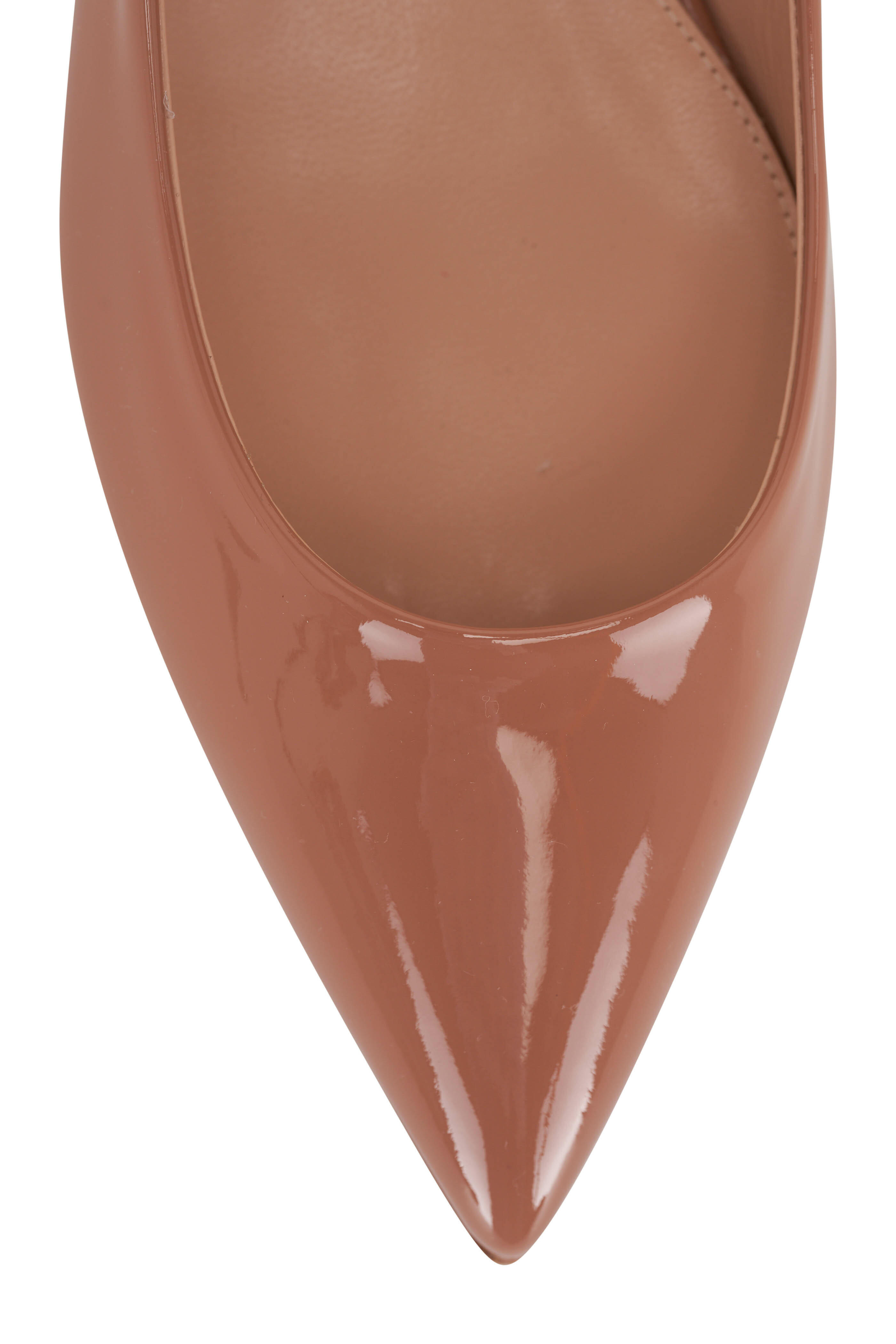 Leather upper. Pointed toe. Clasp closure. Strap across vamp. Leather lining and insole. Stacked heel. Leather sole. Made in Italy.