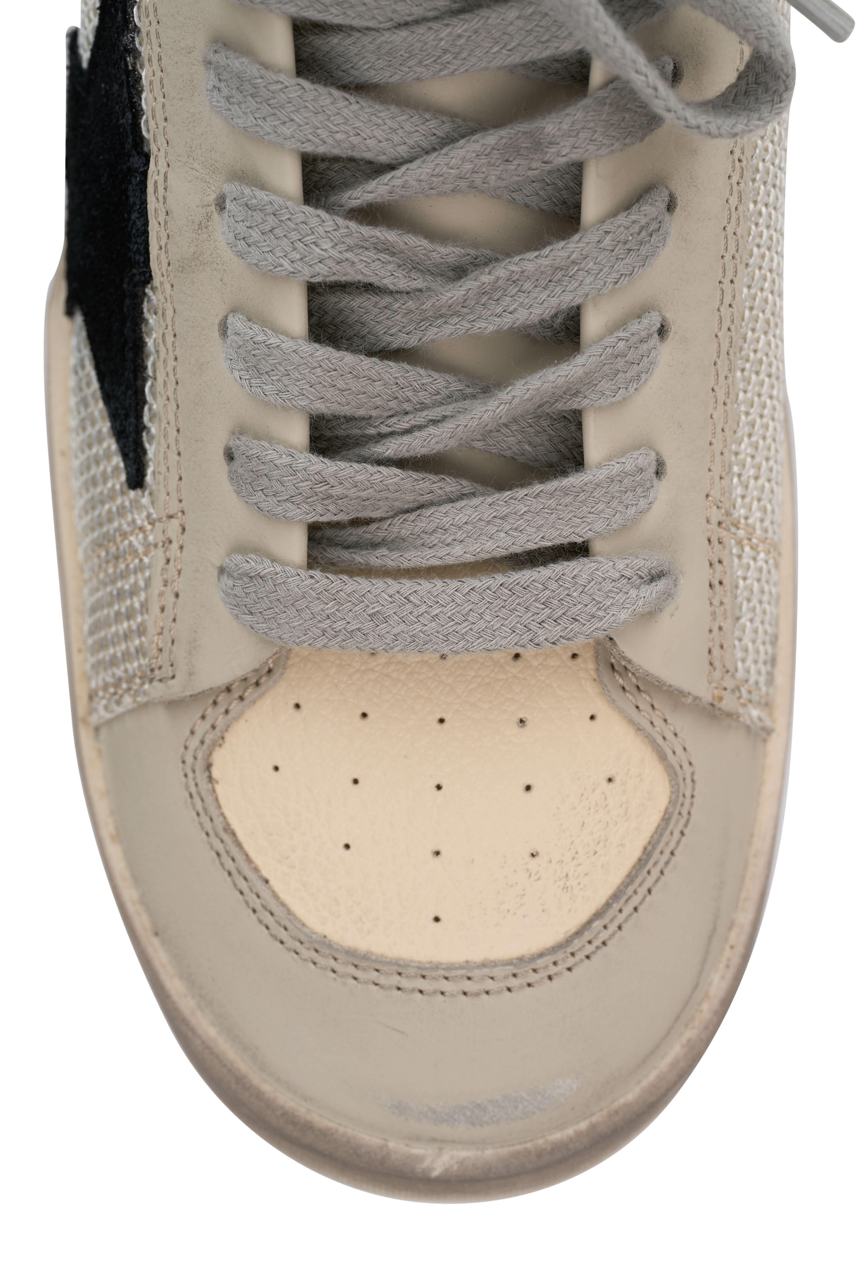 Netted and leather upper. Round toe. Lace-up closure. Black suede star. Leather and cotton lining, cushioned insole. Contrast gold heel with logo embossing. Rubber sole. Made in Italy.