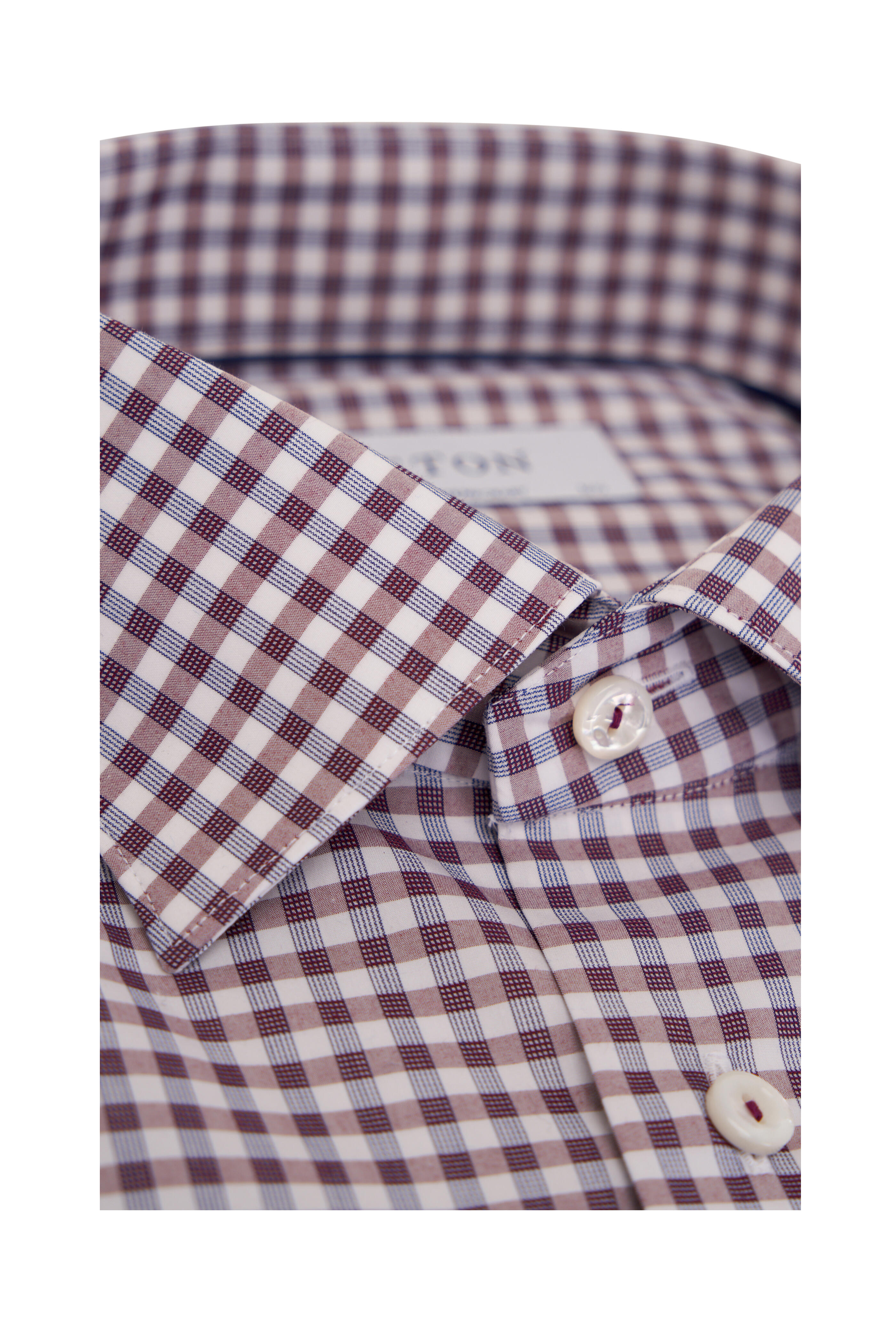 Spread collar. Front button placket. Single button cuffs. Imported. 100% cotton. Machine wash.