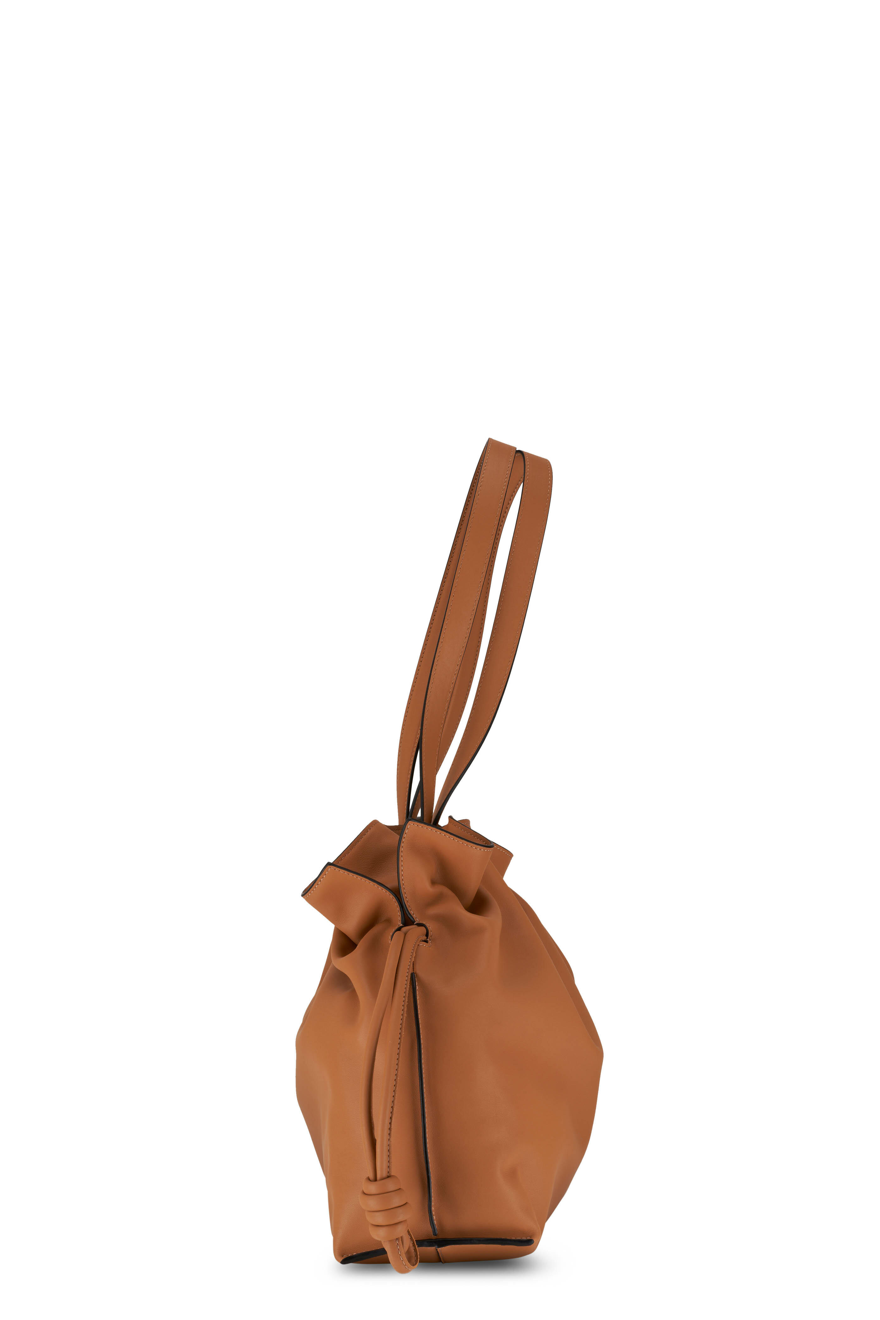 Nappa leather. Dual top handles. Concealed magnetic closure. Interior zip pocket. Canvas lined. Embossed logo detail. Made in Spain. Width: 17 ½". Height: 12". Depth: 5".