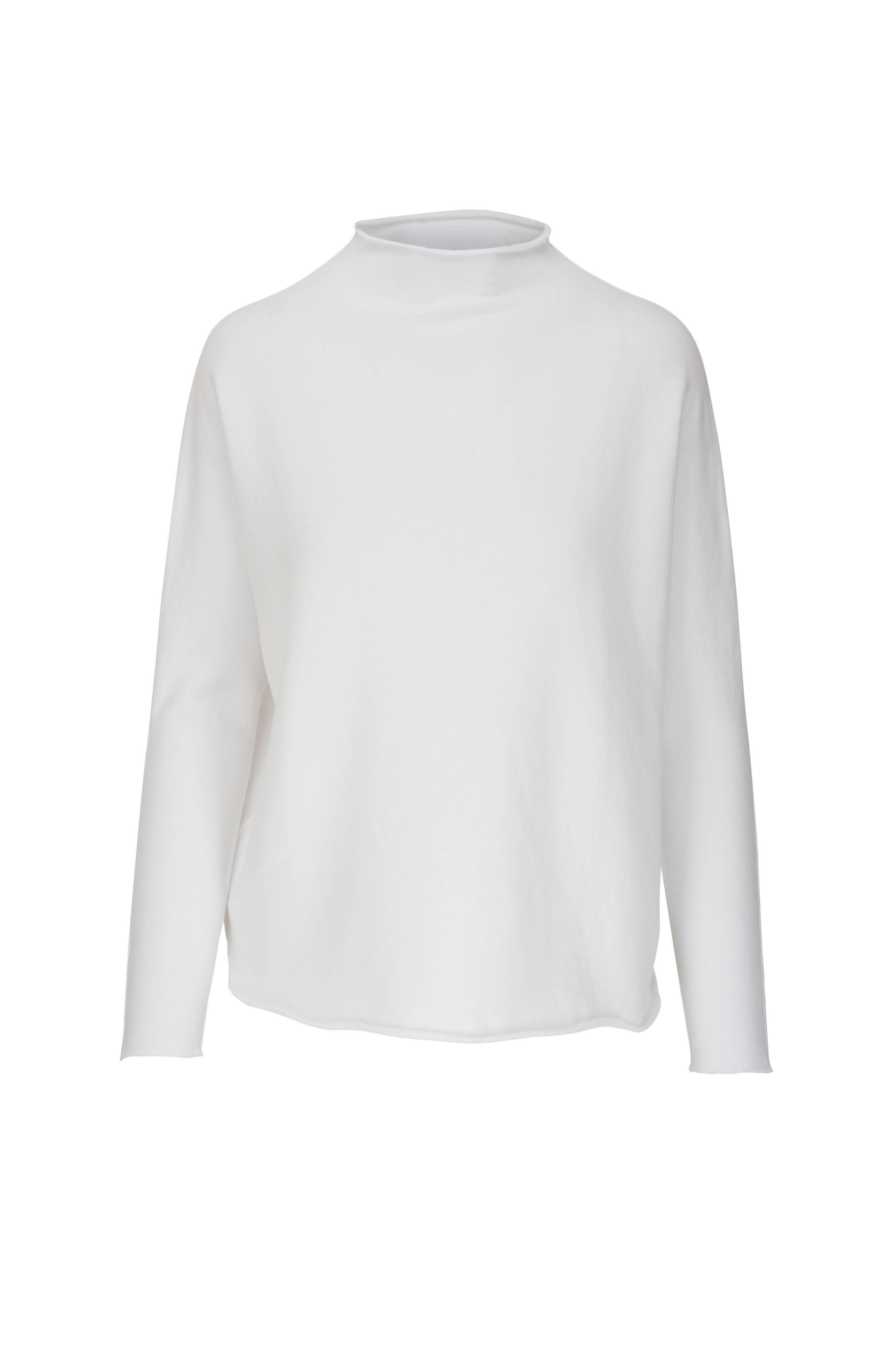 Funnel neckline. Pullover style. Dolman sleeves. Curved hem. Made in the USA. 24" shoulder to hem. 100% cotton. Machine wash.
