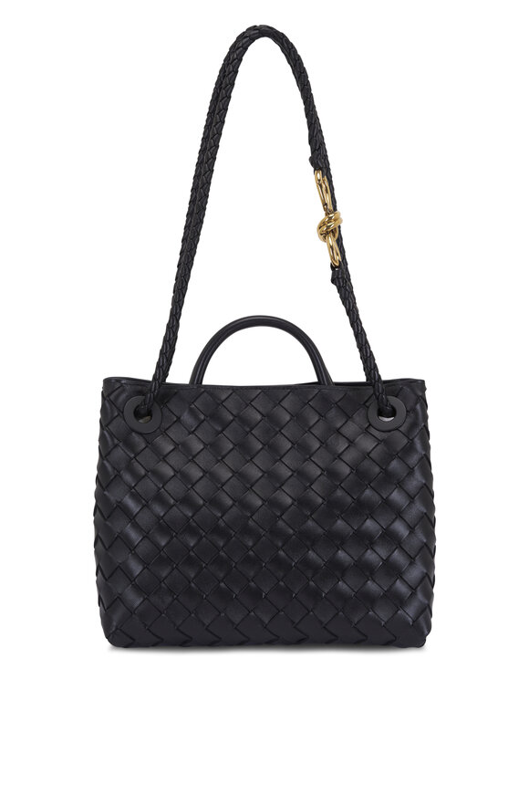 Intrecciato lambskin leather. Single top handle. Sliding cross-body strap. Magnetic closure. Single compartment. Interior zip pocket; two open pockets. Lambskin bonded intrecciato leather lining. Brass-finish hardware. Made in Italy. Height: 22 cm | 8.7". Width: 25 cm | 9.8". Depth: 10.5 cm | 4.1". Handle drop: 8 cm | 3.1". Strap drop: 50 cm | 19.7".