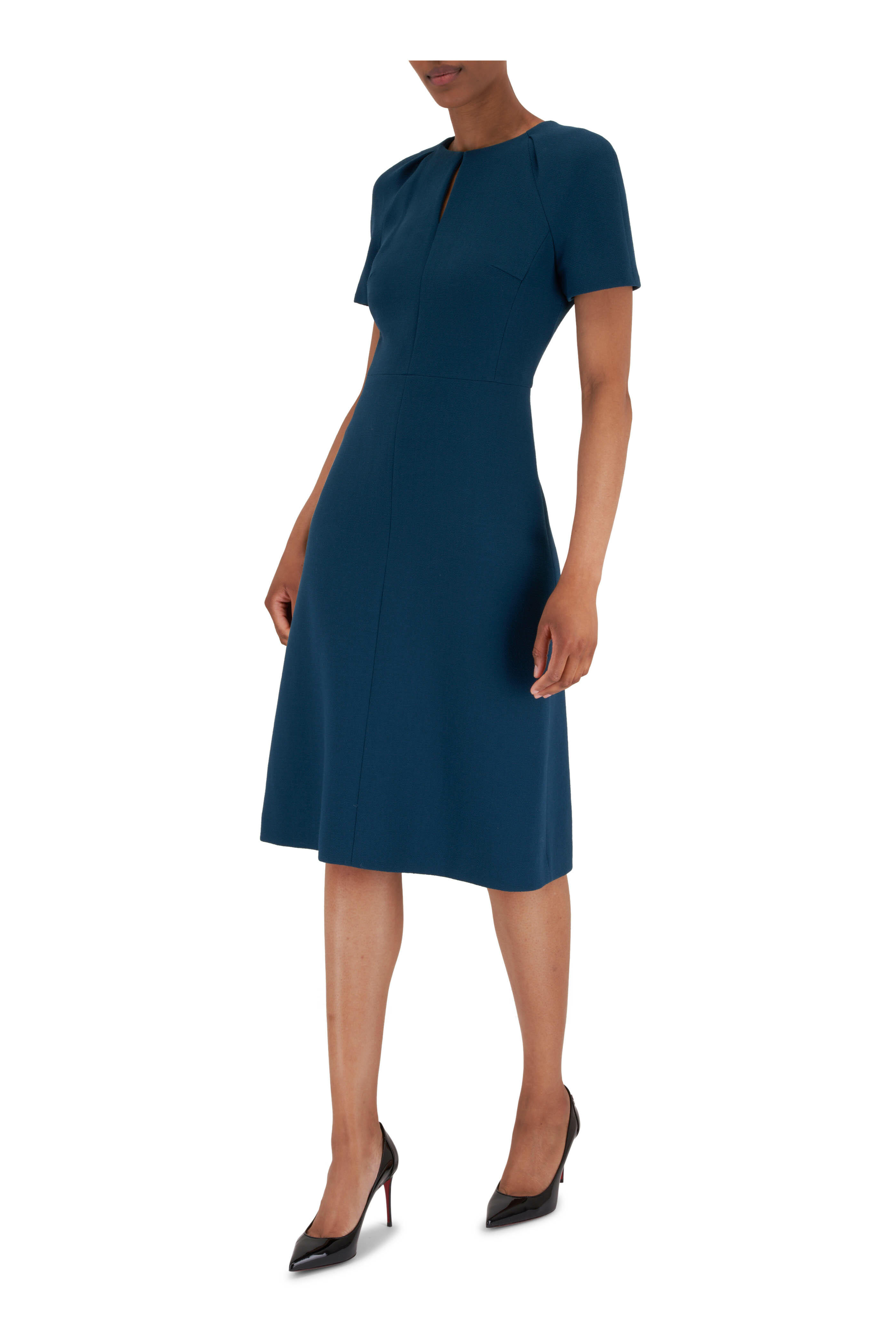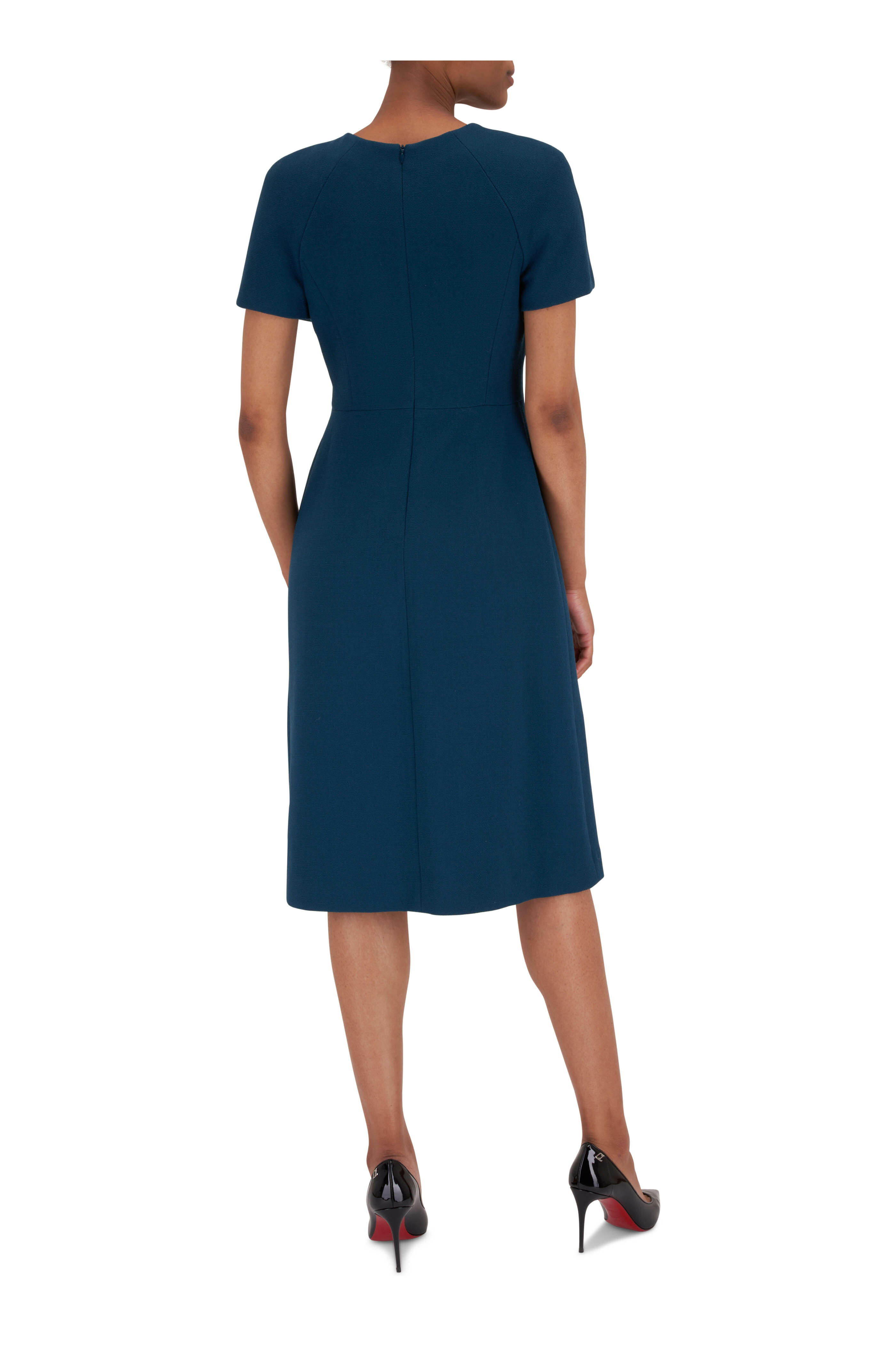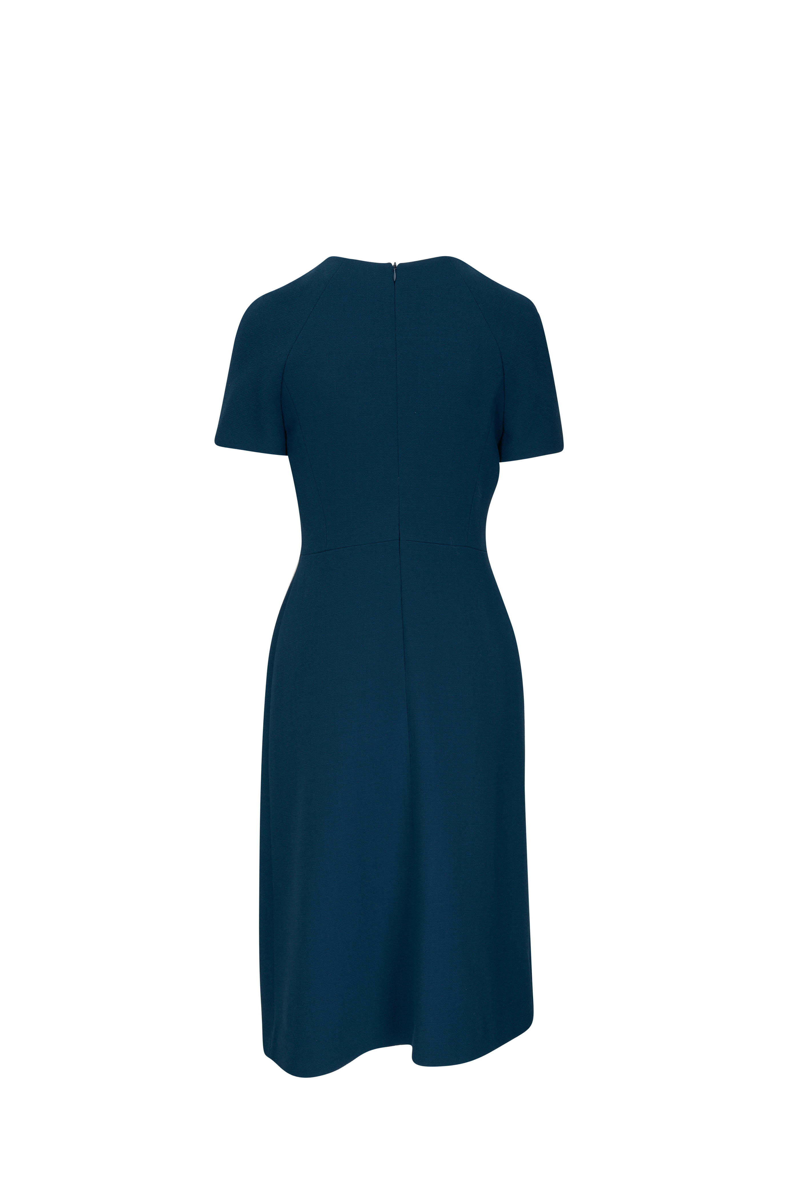 Teal Crepe Keyhole Short Sleeve Tea Dress