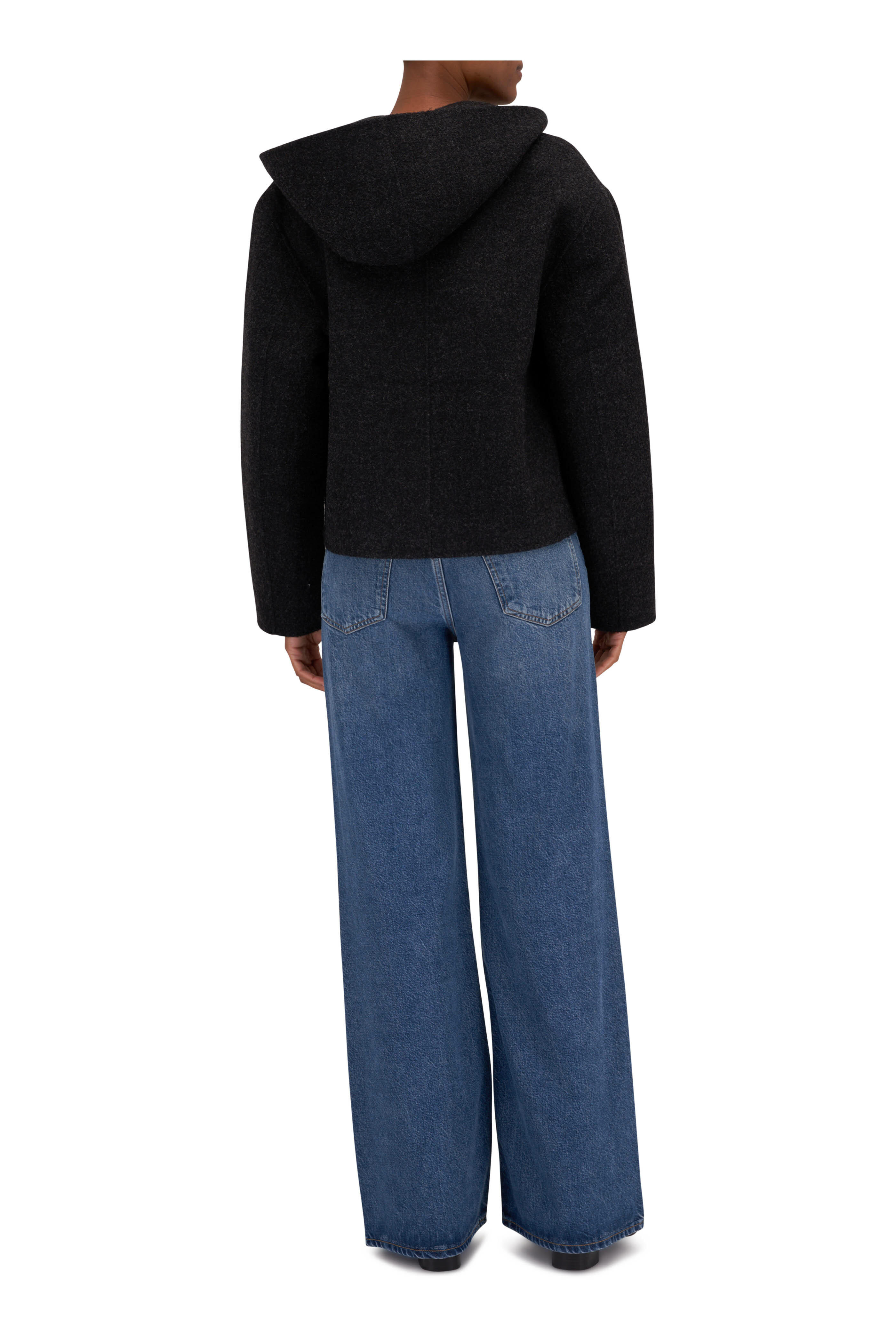 Fixed hood. Wooden toggle front closure; rope loop detail. Lower patch pockets. Straight hem. Imported. Boxy fit. True to size. 23" shoulder to hem (size 34). 88% wool, 12% polyester; fully lined. Dry clean.
