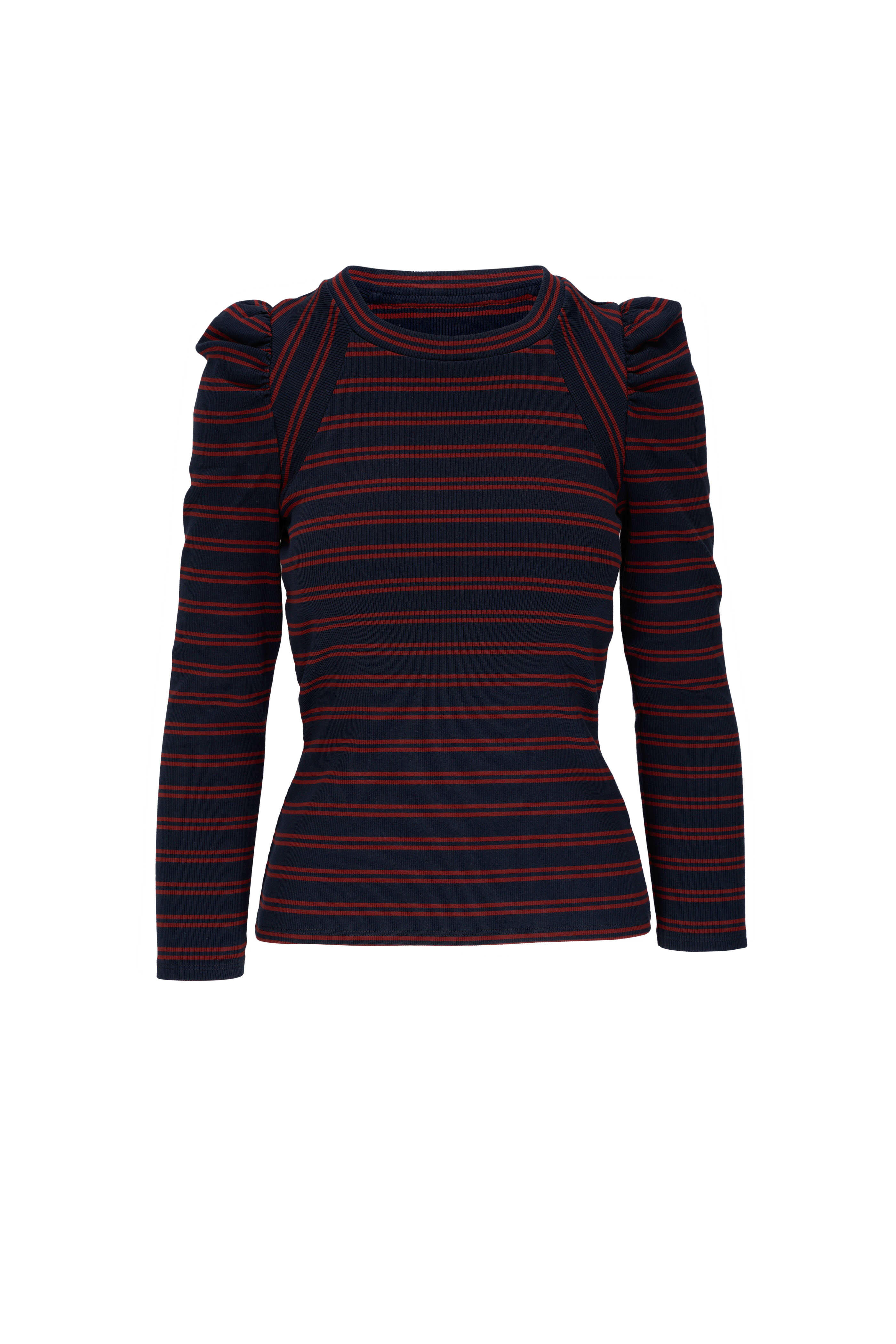 Delano Navy Syrah Stripe Puff Sleeve Top