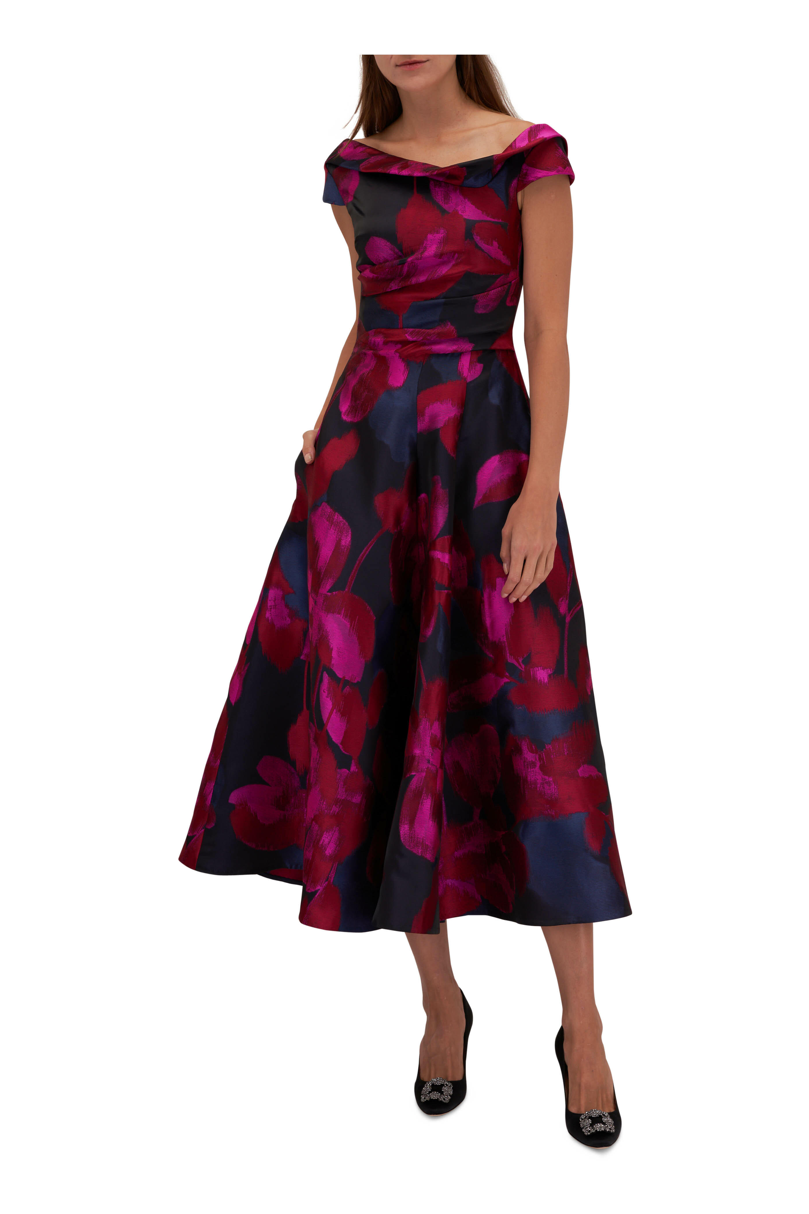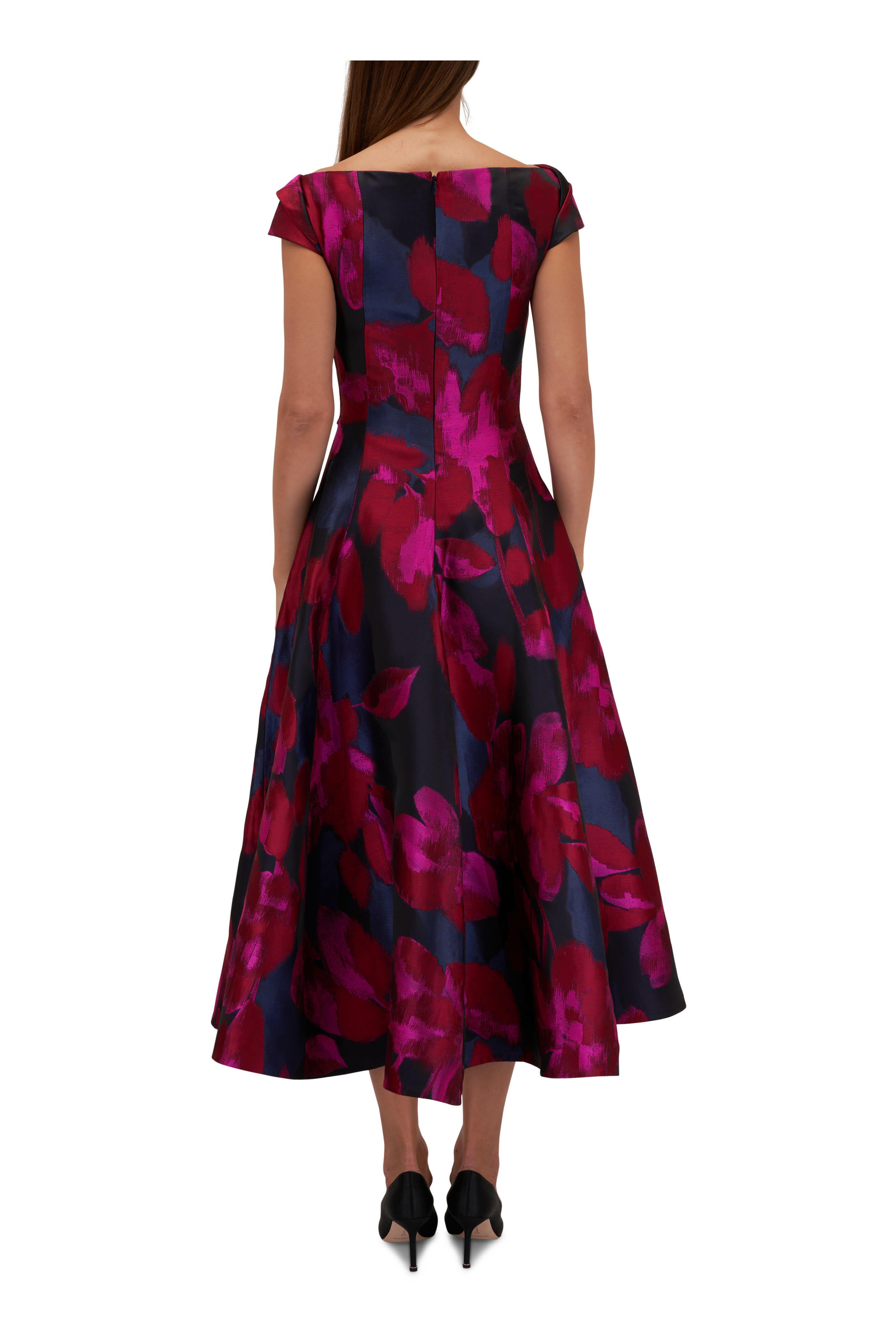 Kobold1 Navy & Red Floral Jacquard Midi Dress