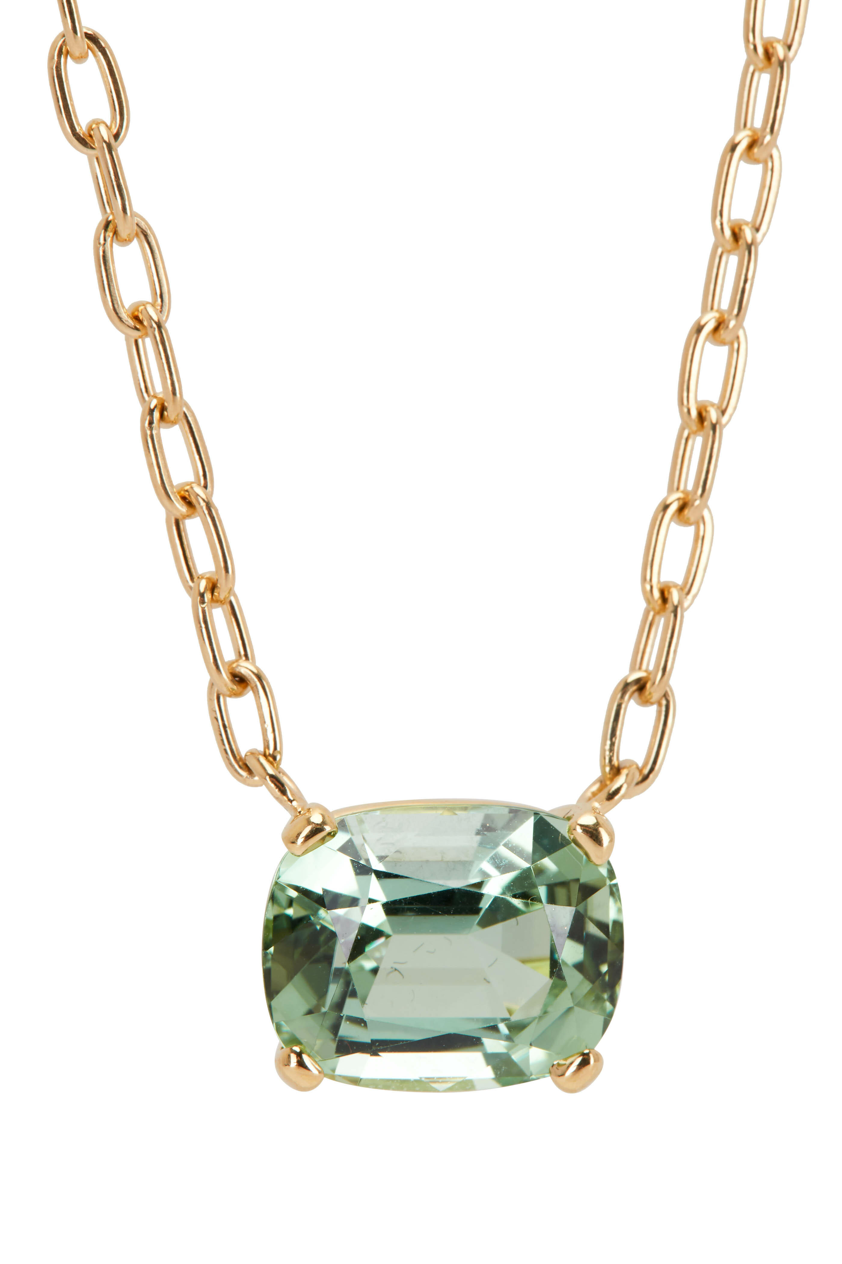 18K Yellow Gold. Congo Mint Tourmaline: 9.50CT, 4.3mm. Cable Chain.