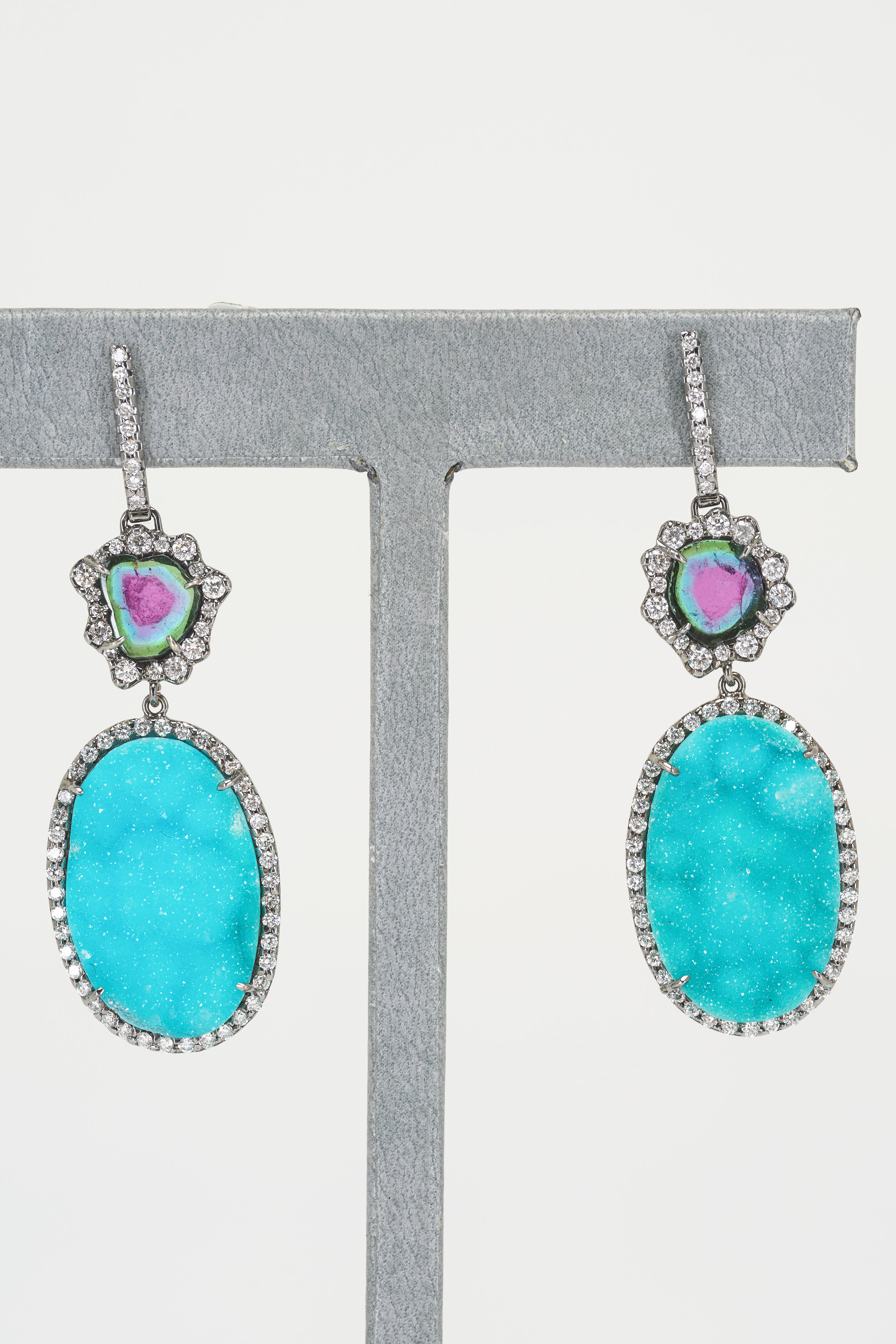 Black Rhodium. 1.98 ct Diamond. 21.6 ct Druze. 3.45 ct Tourmaline.