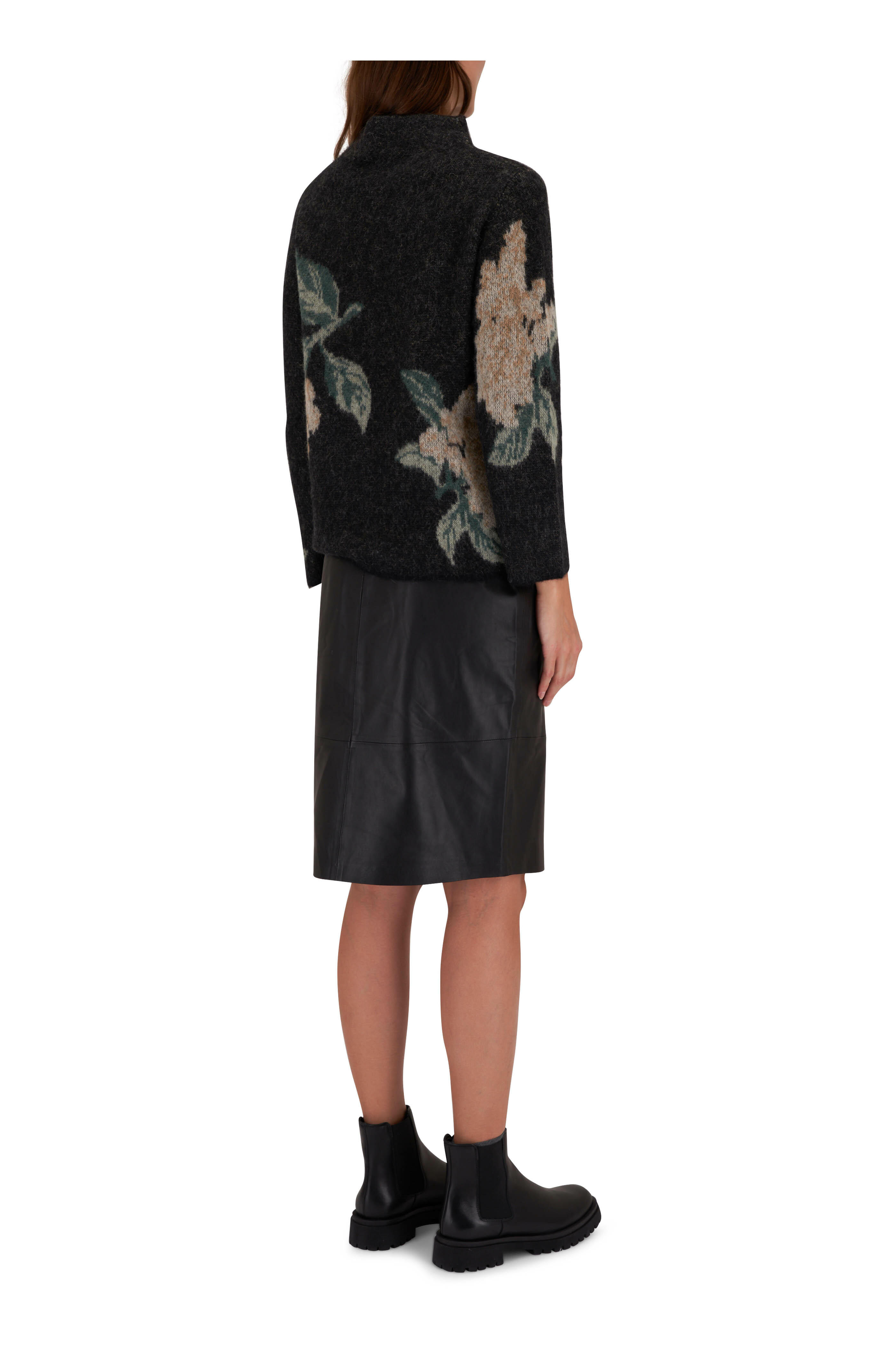Specialist clean. Concealed back zip. Decorative waist tabs. Straight hem. Side slit. Imported. High waist. Straight fit; subtle flare. 100% lamb leather; partially lined.