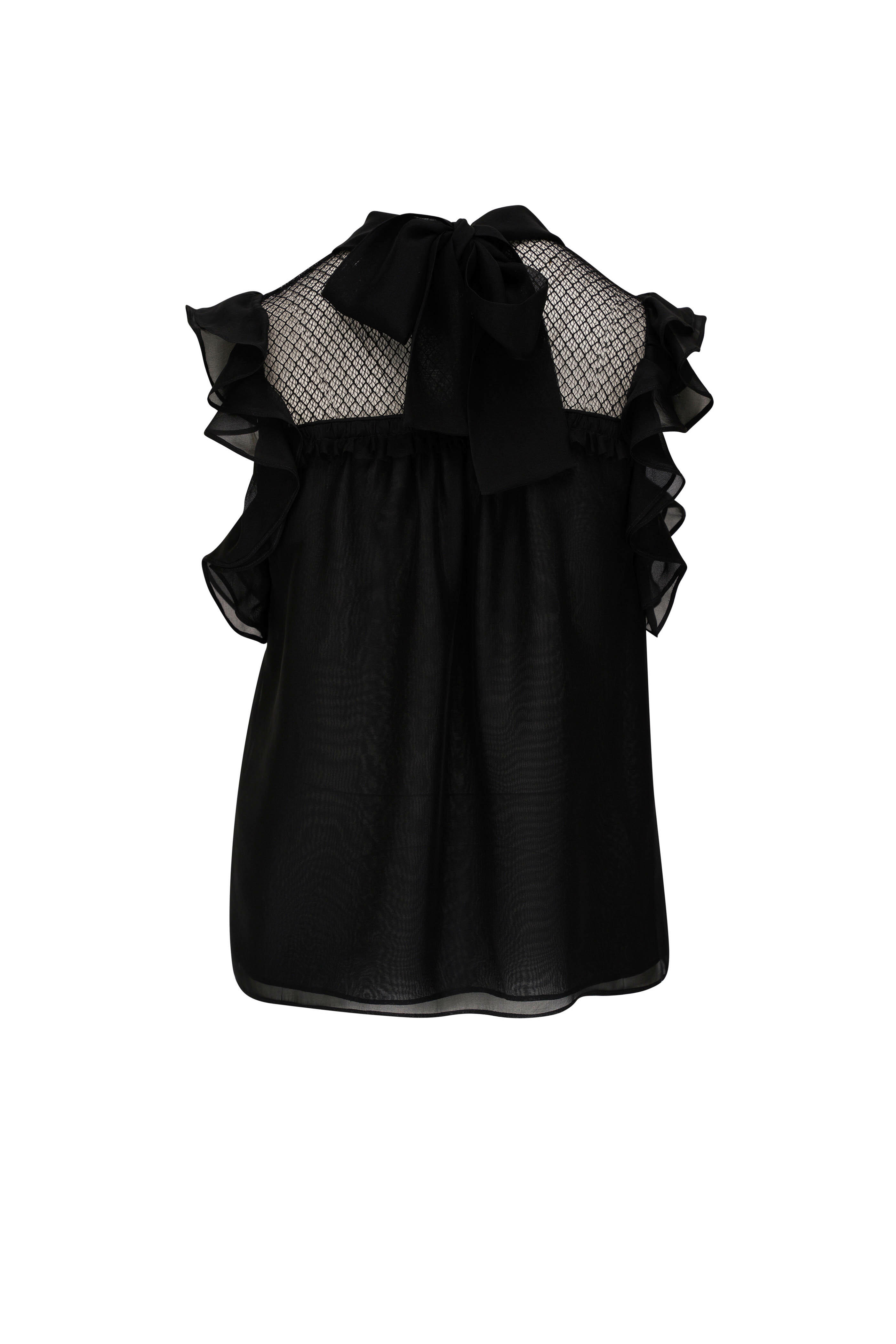 Playful Lightness Pure Black Silk Blouse