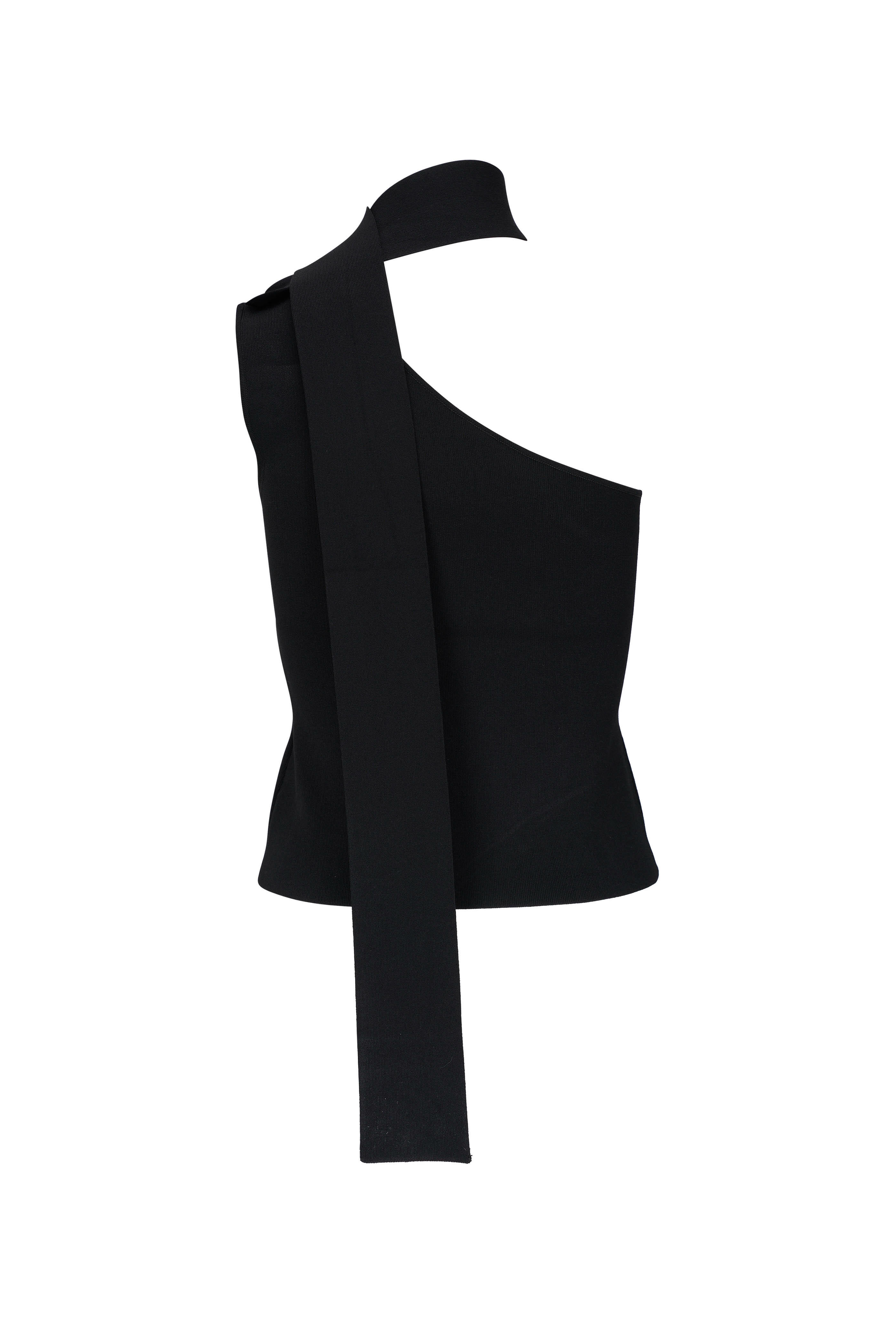 One shoulder neckline. Slip-on style. Shoulder sash. Imported. 83% recycled viscose, 17% polyester. Dry clean.