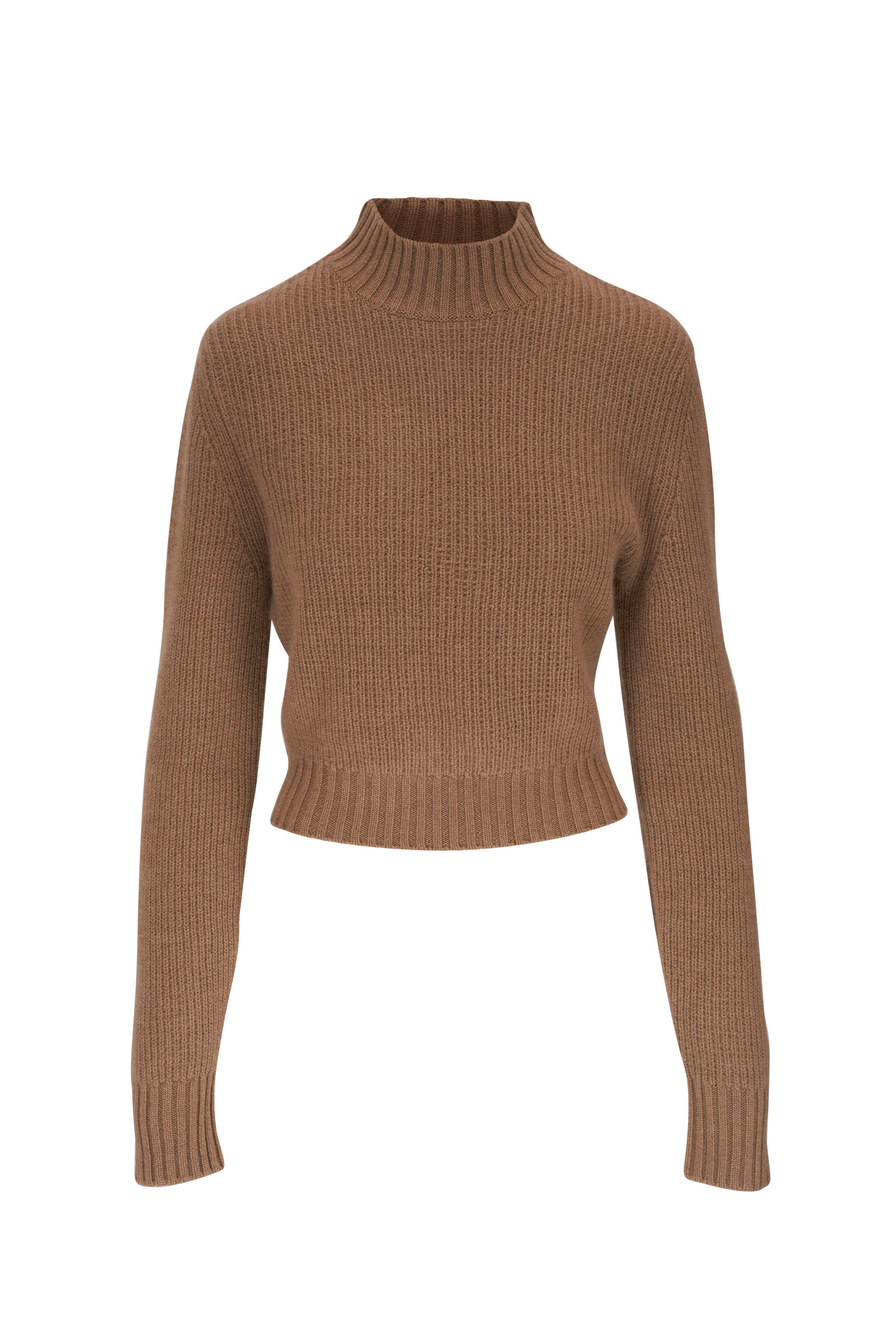 Camel Mock Neck Cashmere Sweater