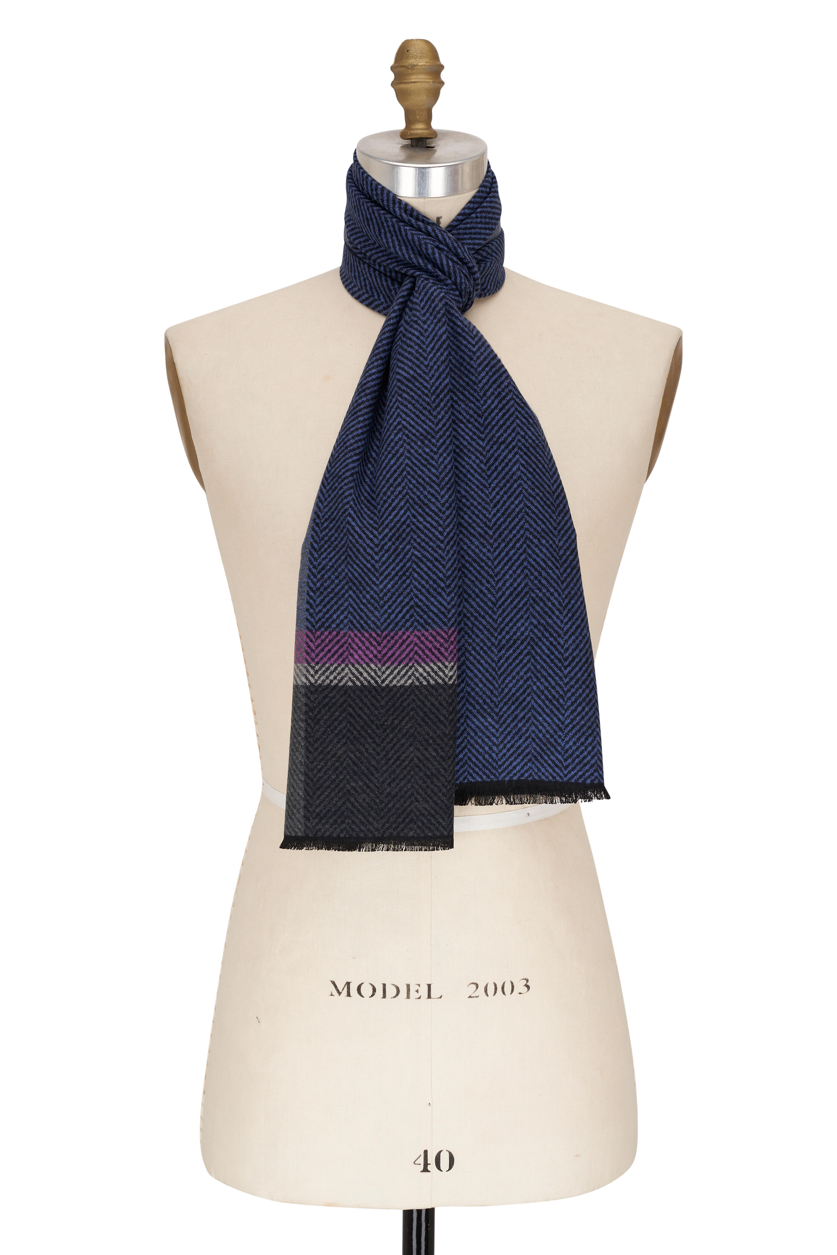 Blue, Gray & Pink Herringbone Silk Scarf