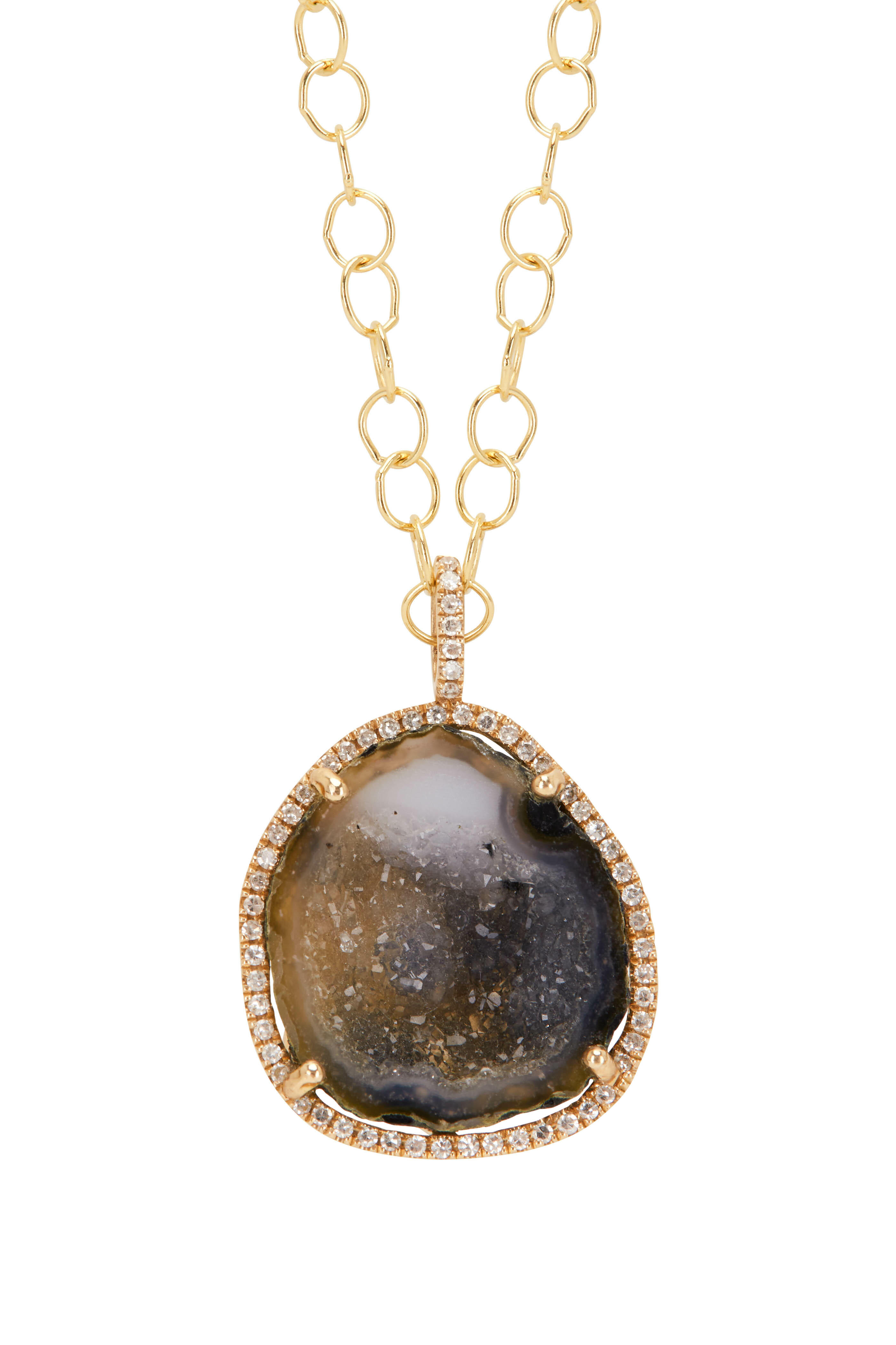 Blue Gray Geode & Diamond Necklace