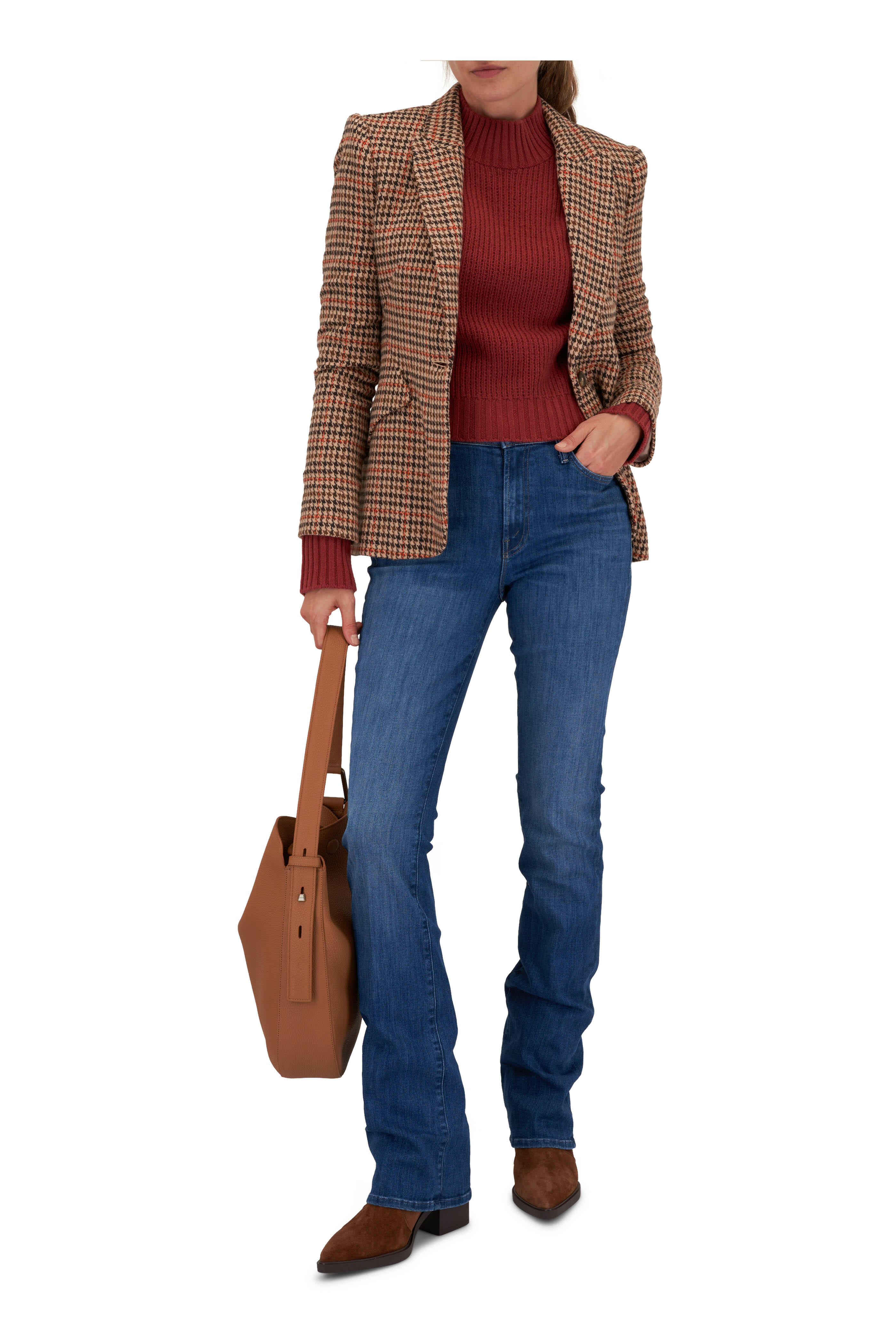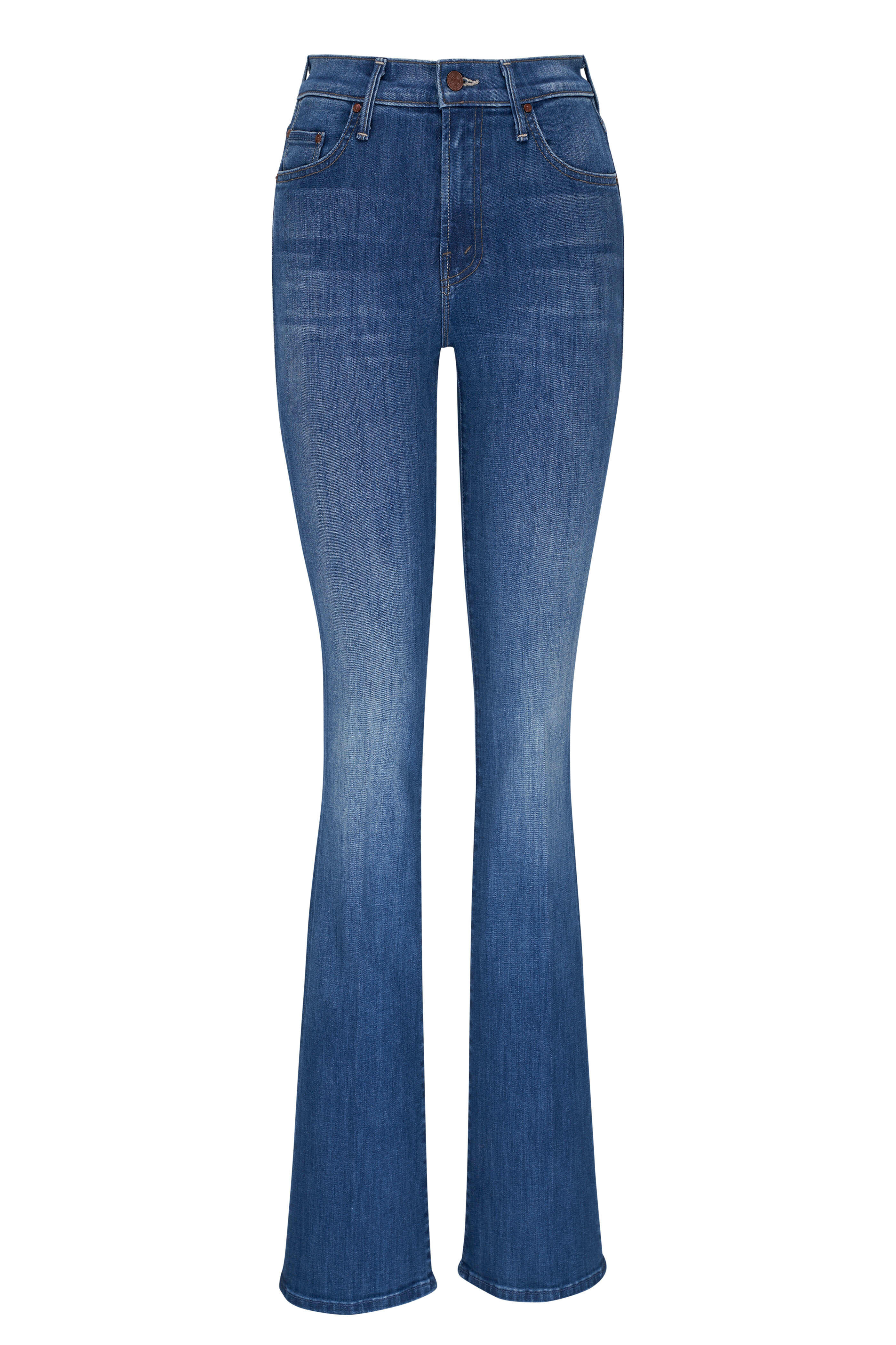 Zip fly; button closure. Banded waist; belt loops. Five pocket styling. Bootcut hem. Made in the USA. Color: One Trick Pony. Rise: 10". Inseam: 36". 92% cotton, 6% polyester, 2% elastane. Machine wash.