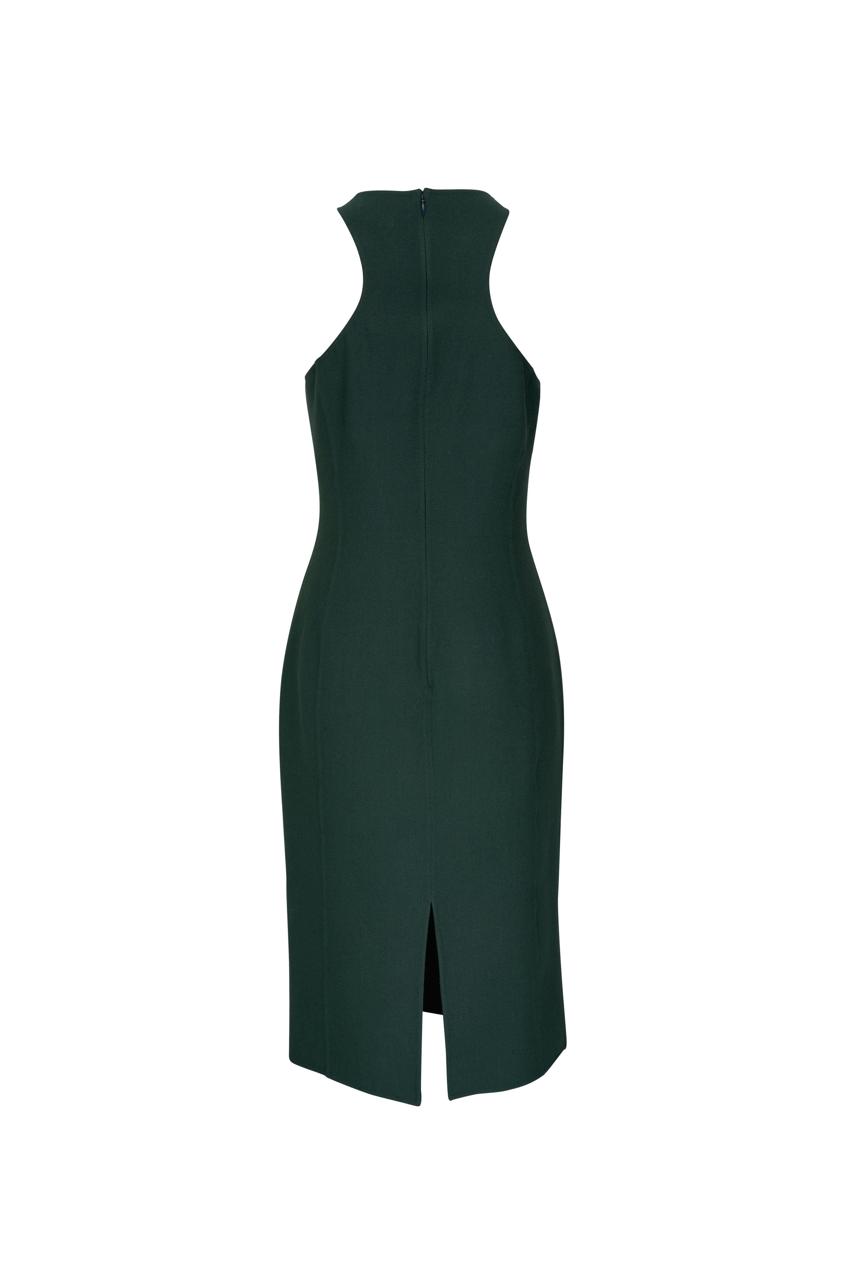 Round neckline; Racerback. Concealed back zip. Center back slit. Made in Italy. 40" shoulder to hem. Sheath silhouette. 68% virgin wool, 28% viscose, 4% elastane; unlined. Dry clean.