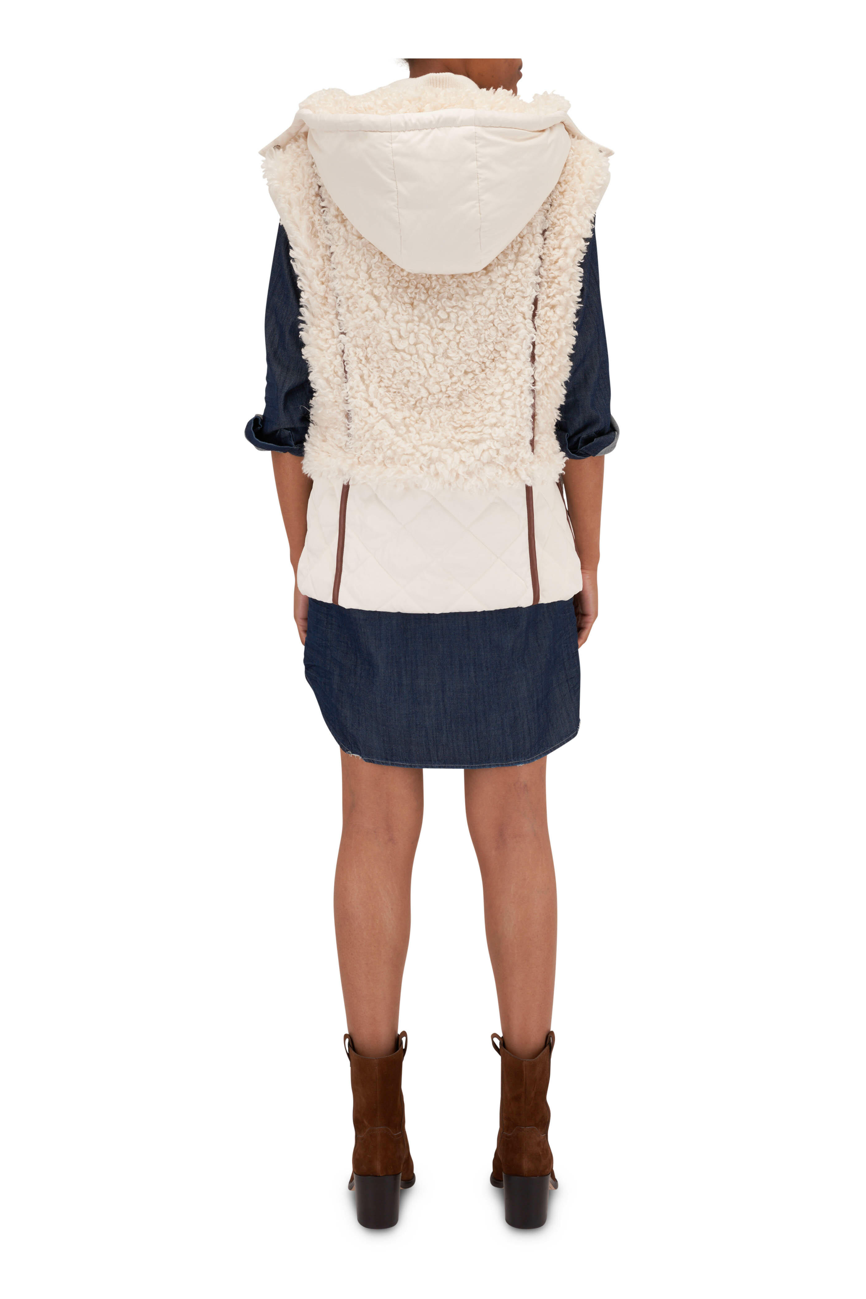 Sarai Eggshell Faux Shearling Hooded Combo Vest