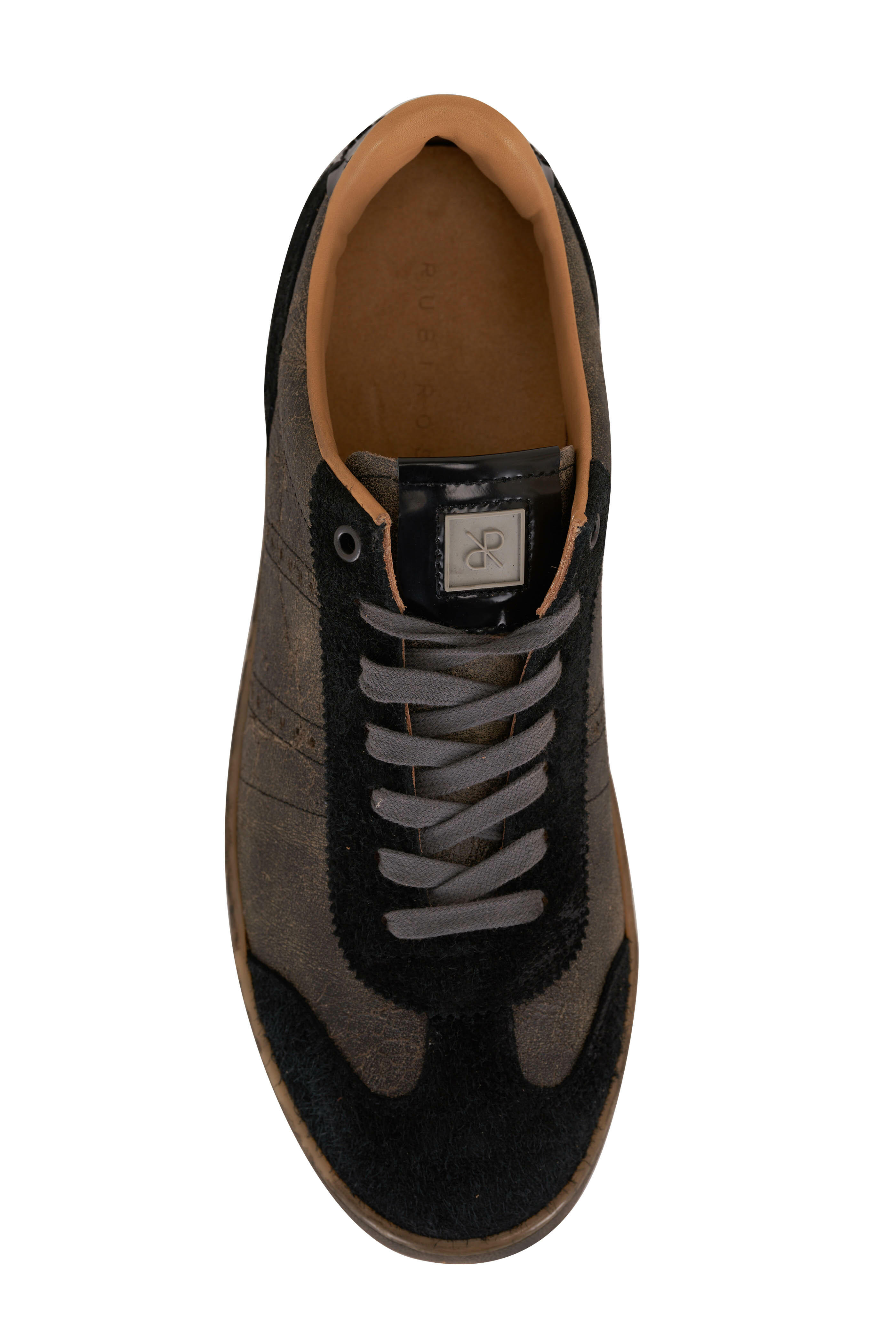 Leather and suede upper. Round toe. Lace-up closure. Suede eyelets and heel detail. Leather tongue and heel tab. Leather lining and removeable insole. Rubber sole. Made in Italy.