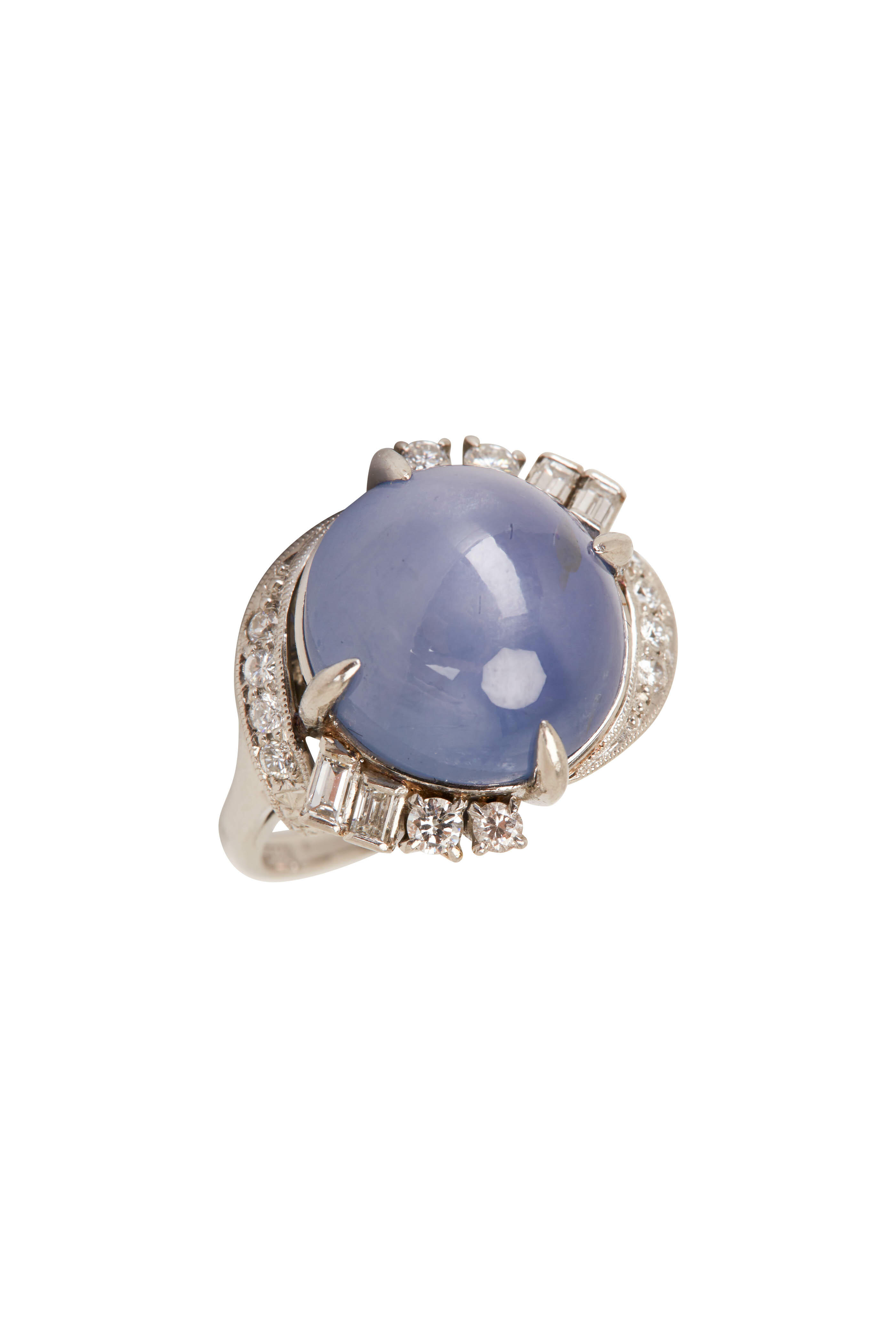 Cabochon Star Sapphire 18.04 carats. Diamonds 0.43 tcw. Platinum.