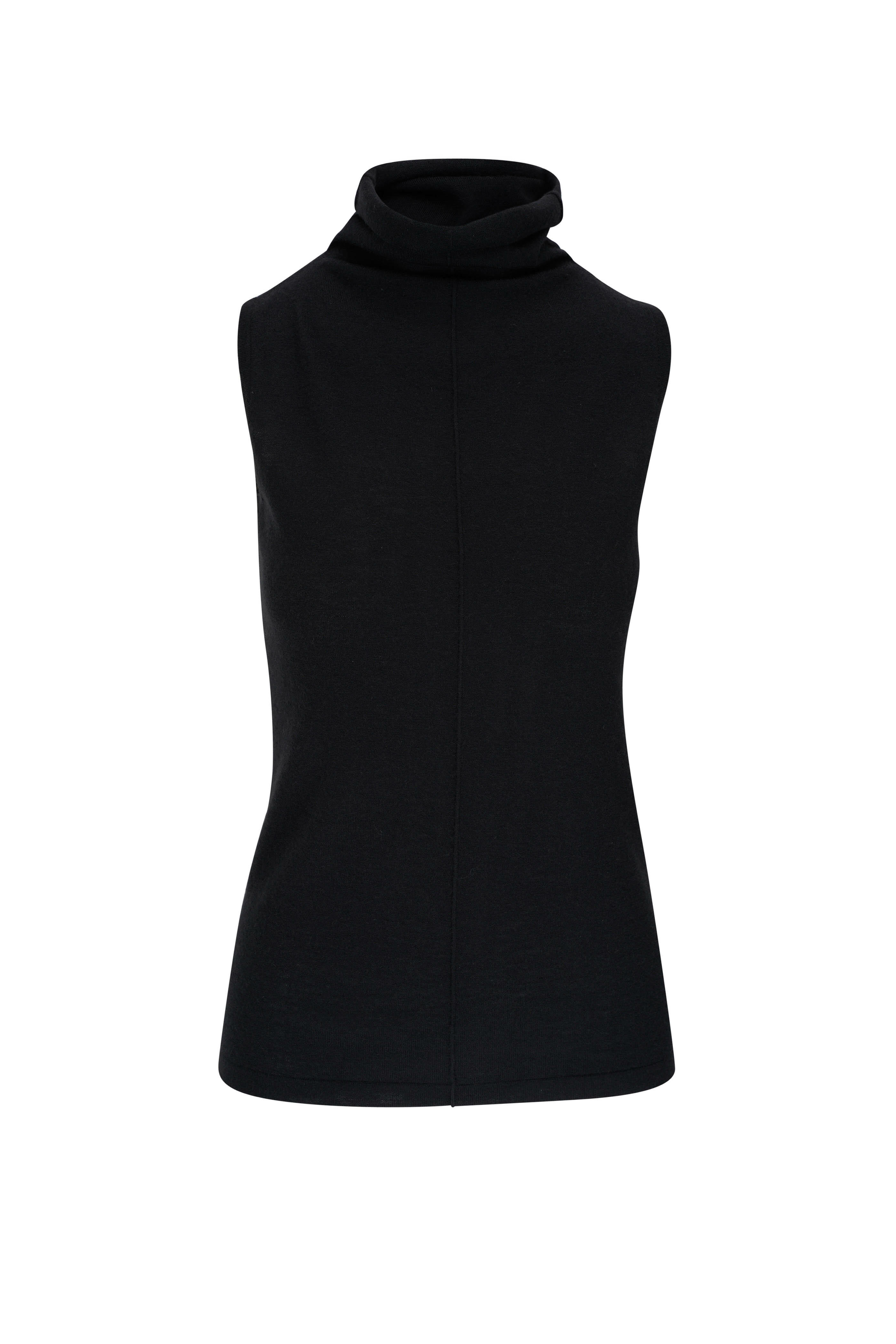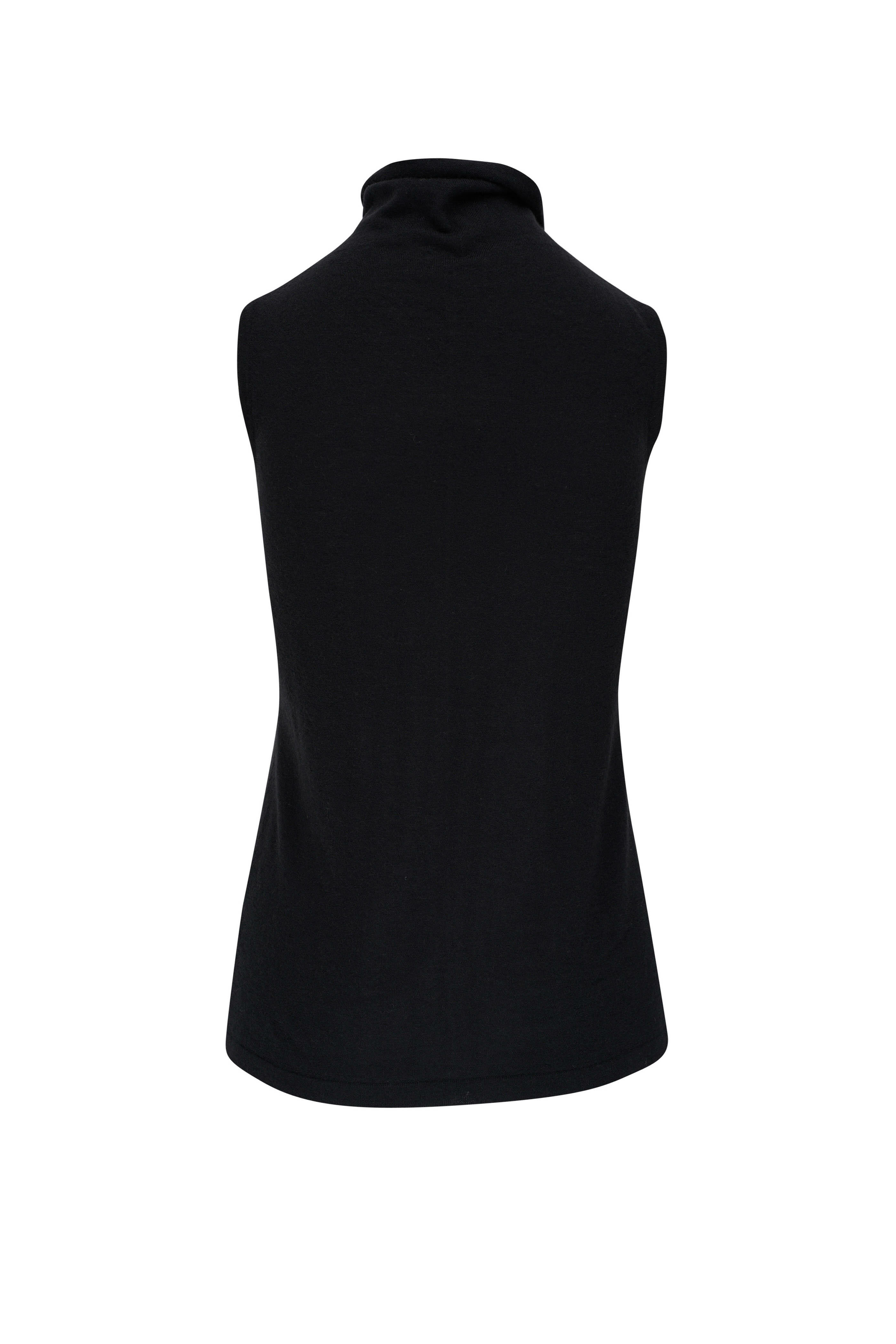 Black Sleeveless Worsted Cashmere Mock Tank