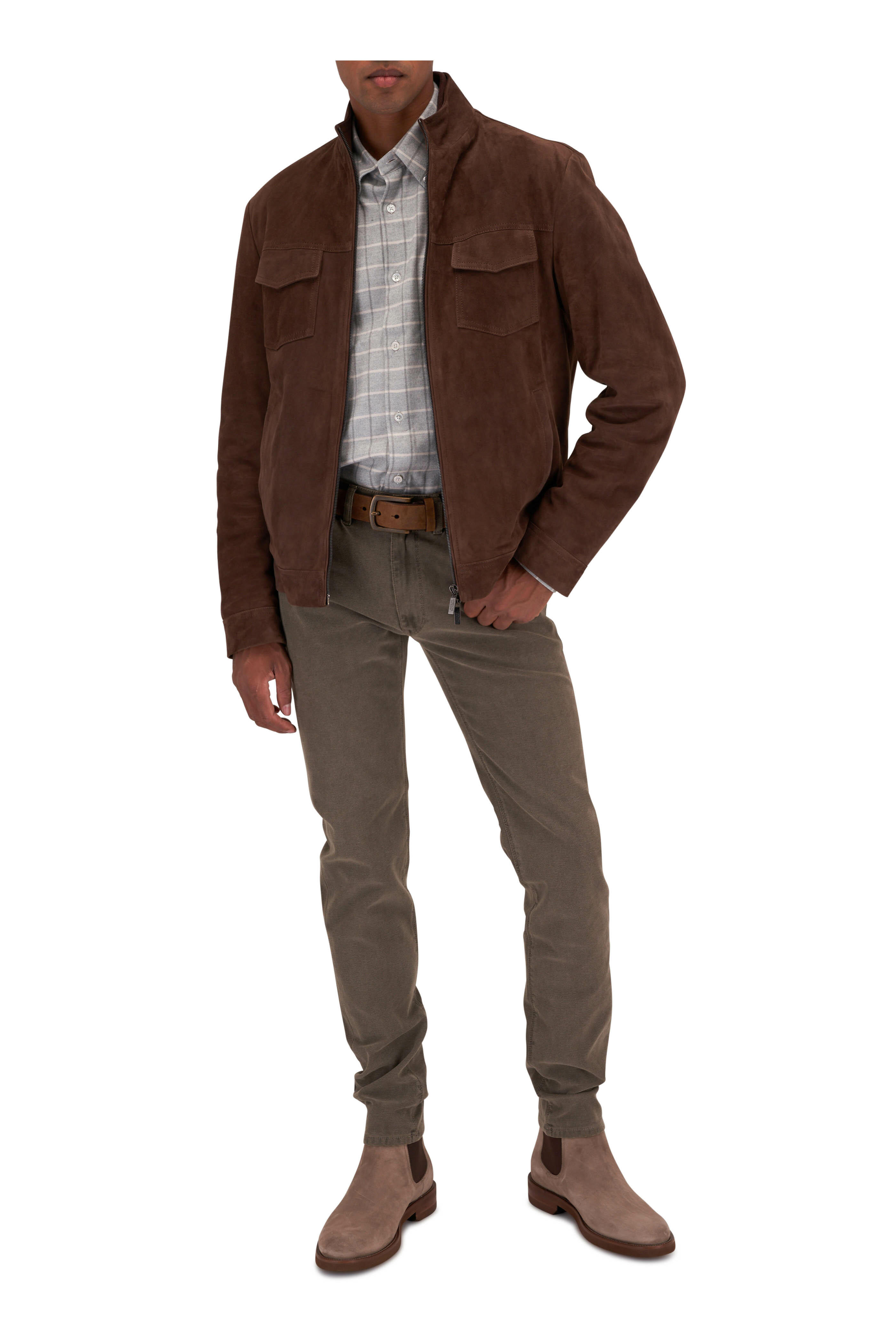 Light Gray Tonal Plaid Flannel Sport Shirt