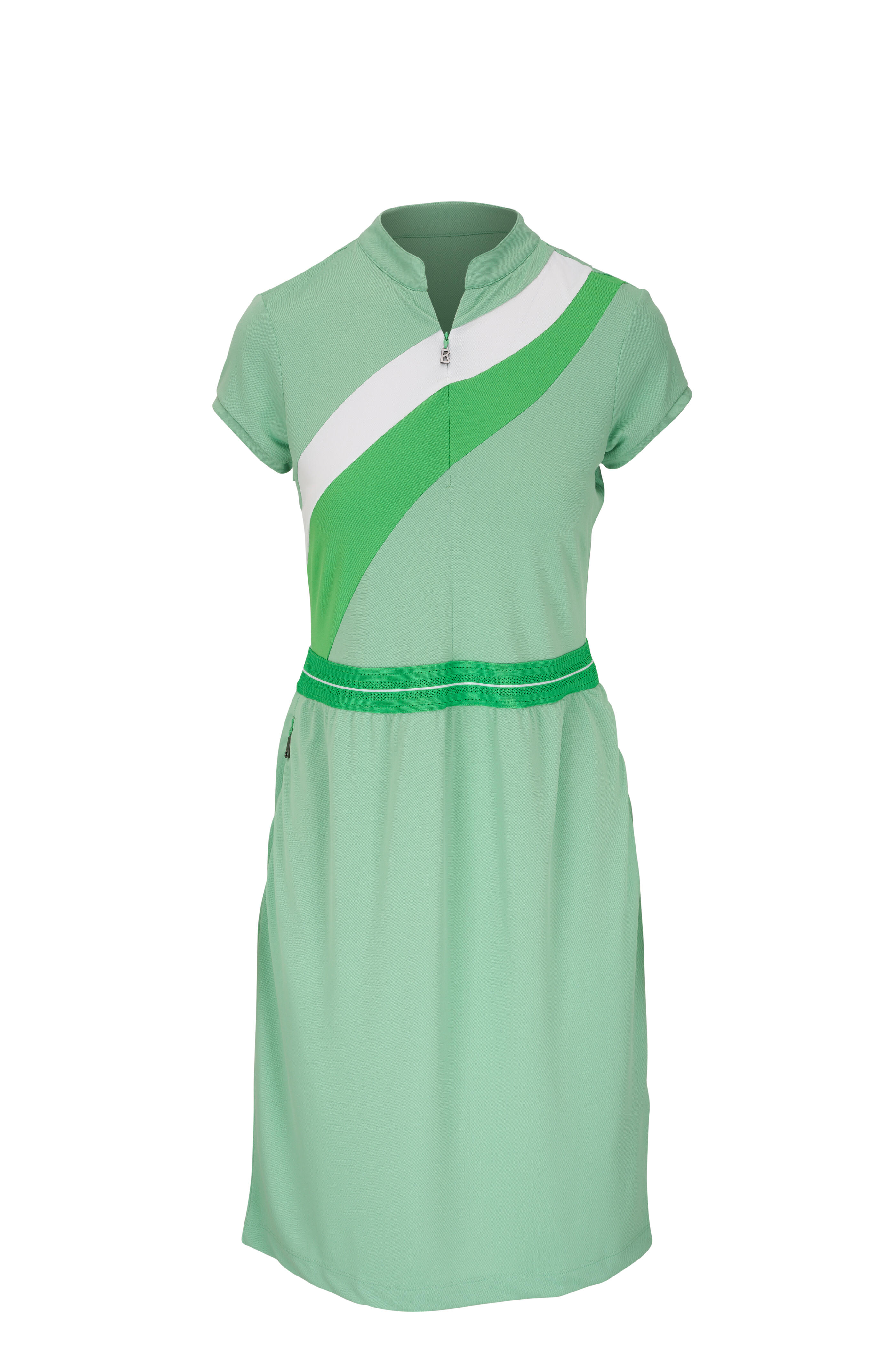 Banded collar. Quarter-zip; logo pull. Elasticized cuffs. Elasticized waist. Imported. Regular fit. Midi length. 75% polyester, 25% elastane. Machine wash.