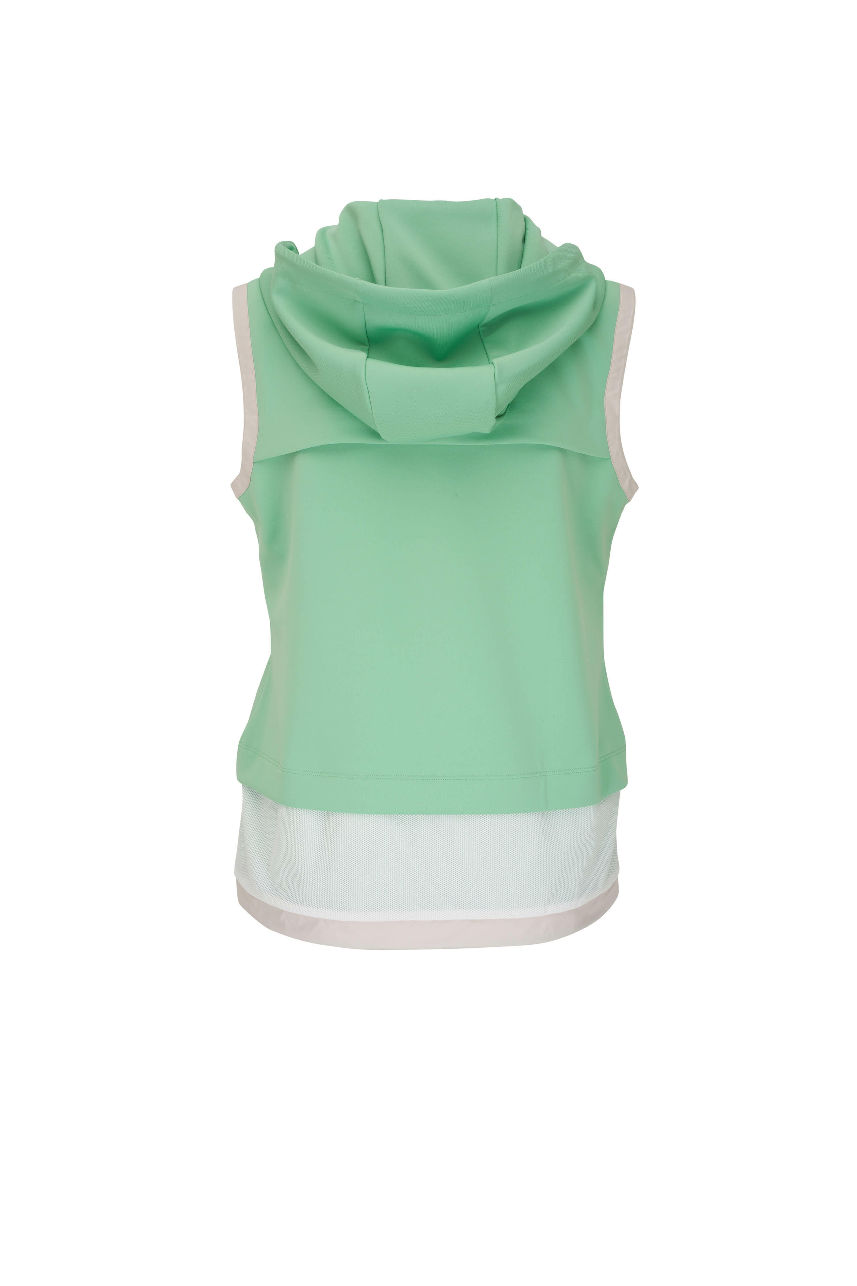 Adjustable drawcord hood; stand collar. Two-way zip. Adjustable drawcord hem. Mesh inserts on back and hem. Imported. 90% polyester, 10% elastane; shell: 72% polyamide, 28% elastane. Machine wash.