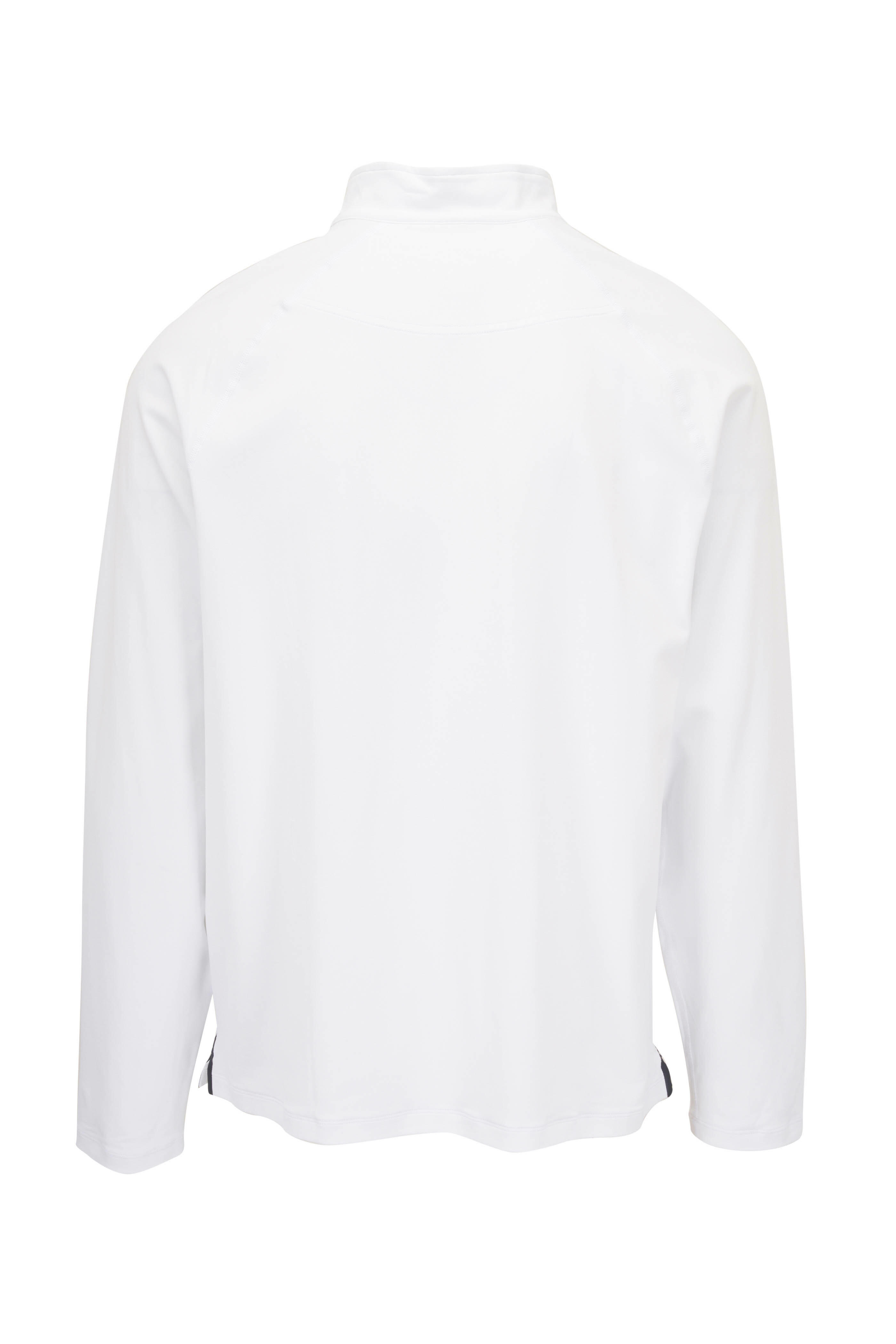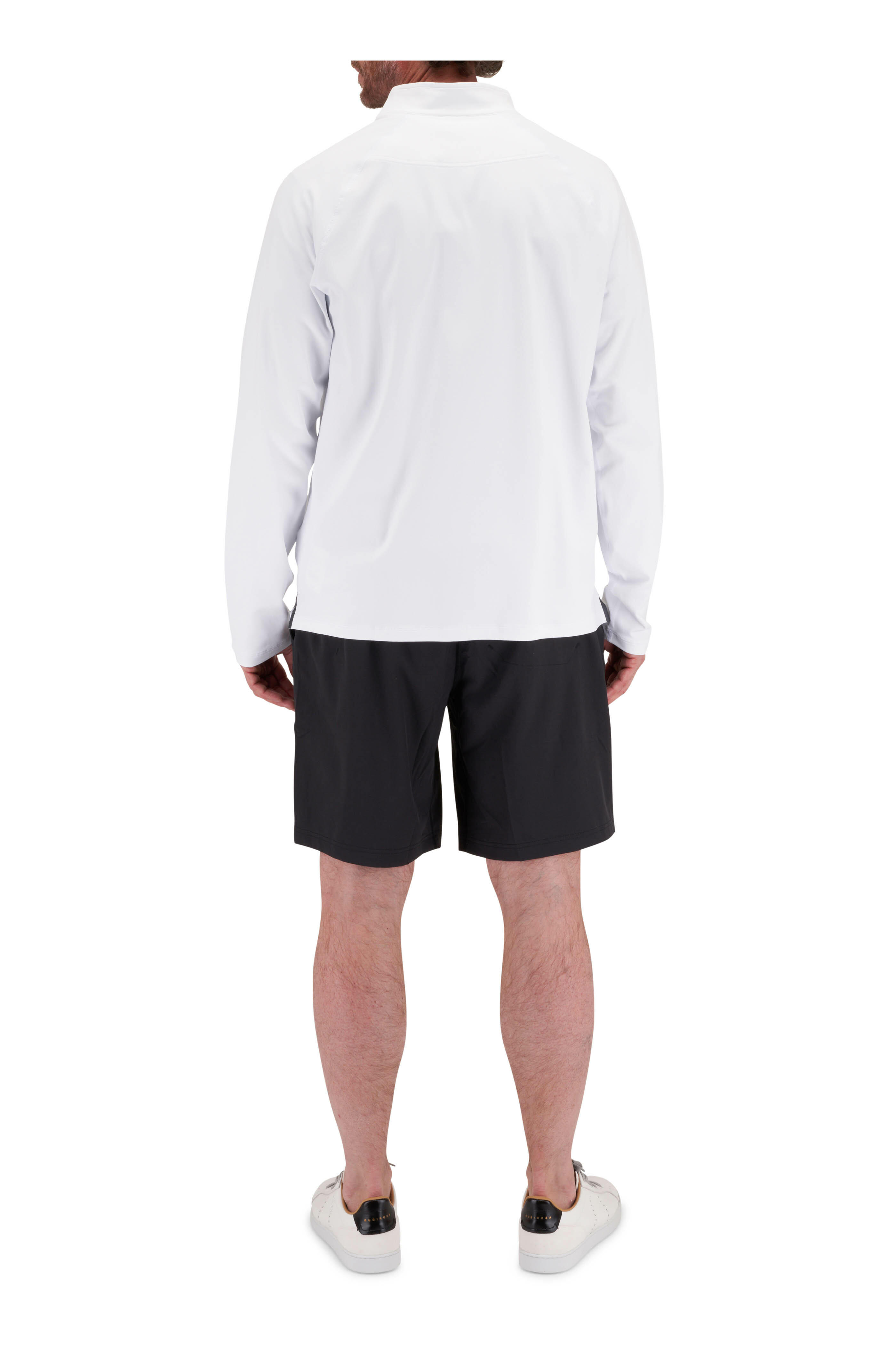 Stand collar. Quarter zip pullover. Imported. 90% nylon, 10% elastane. Machine wash.