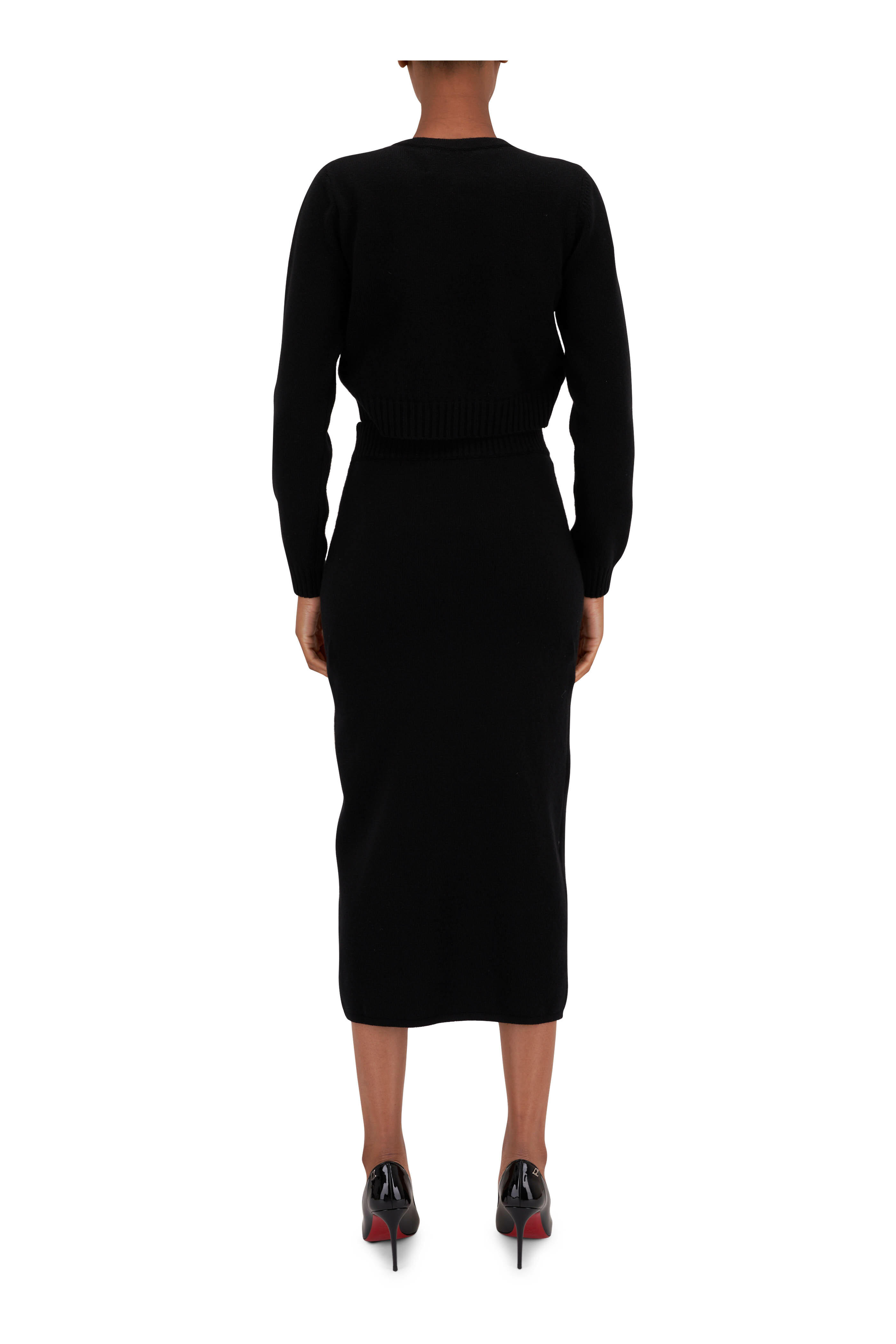 Black Multi Floral Embroidered Pencil Midi Skirt