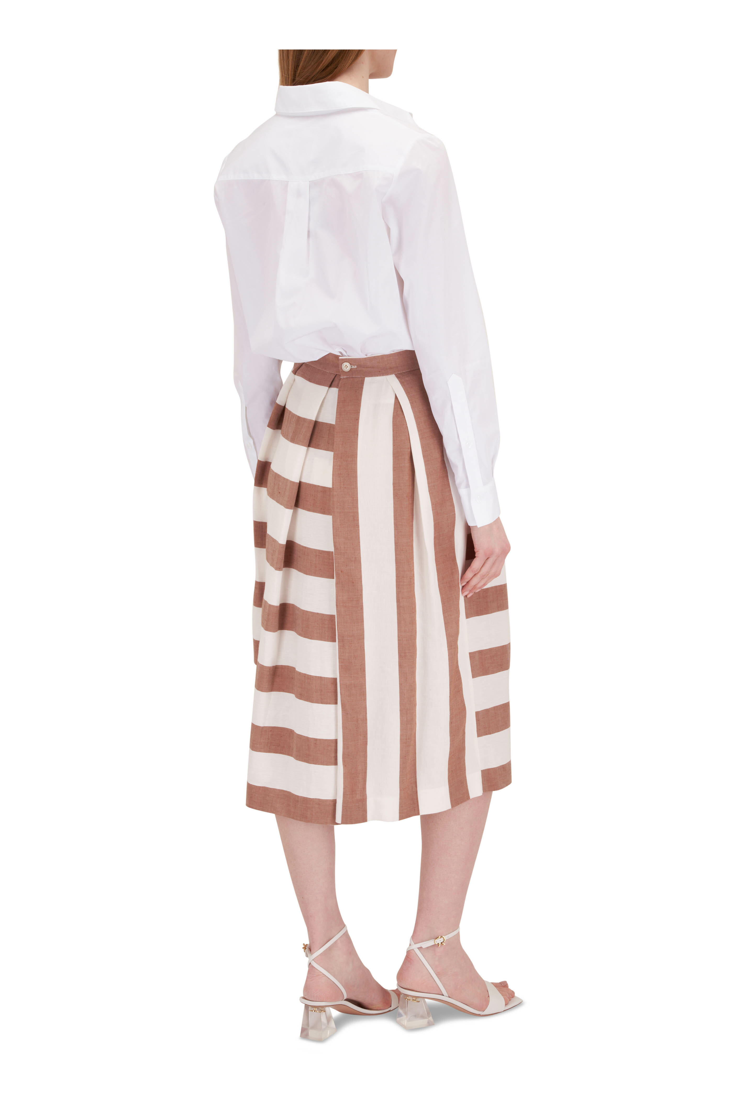 Spread collar. Front button placket. Button cuffs. Made in the USA. 22" length (size medium). 100% cotton. Dry clean.