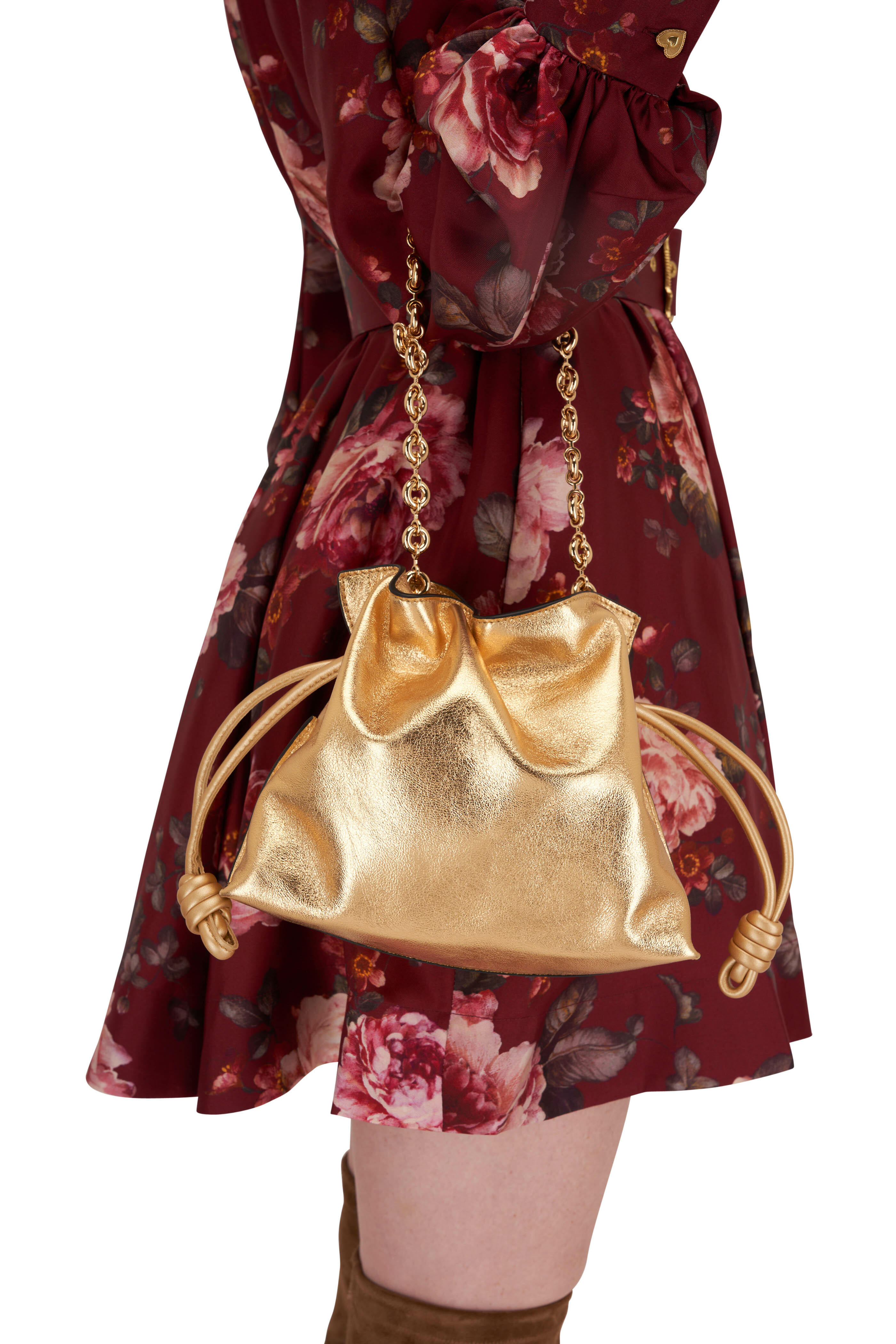 - Detachable gold-toned shoulder chain
