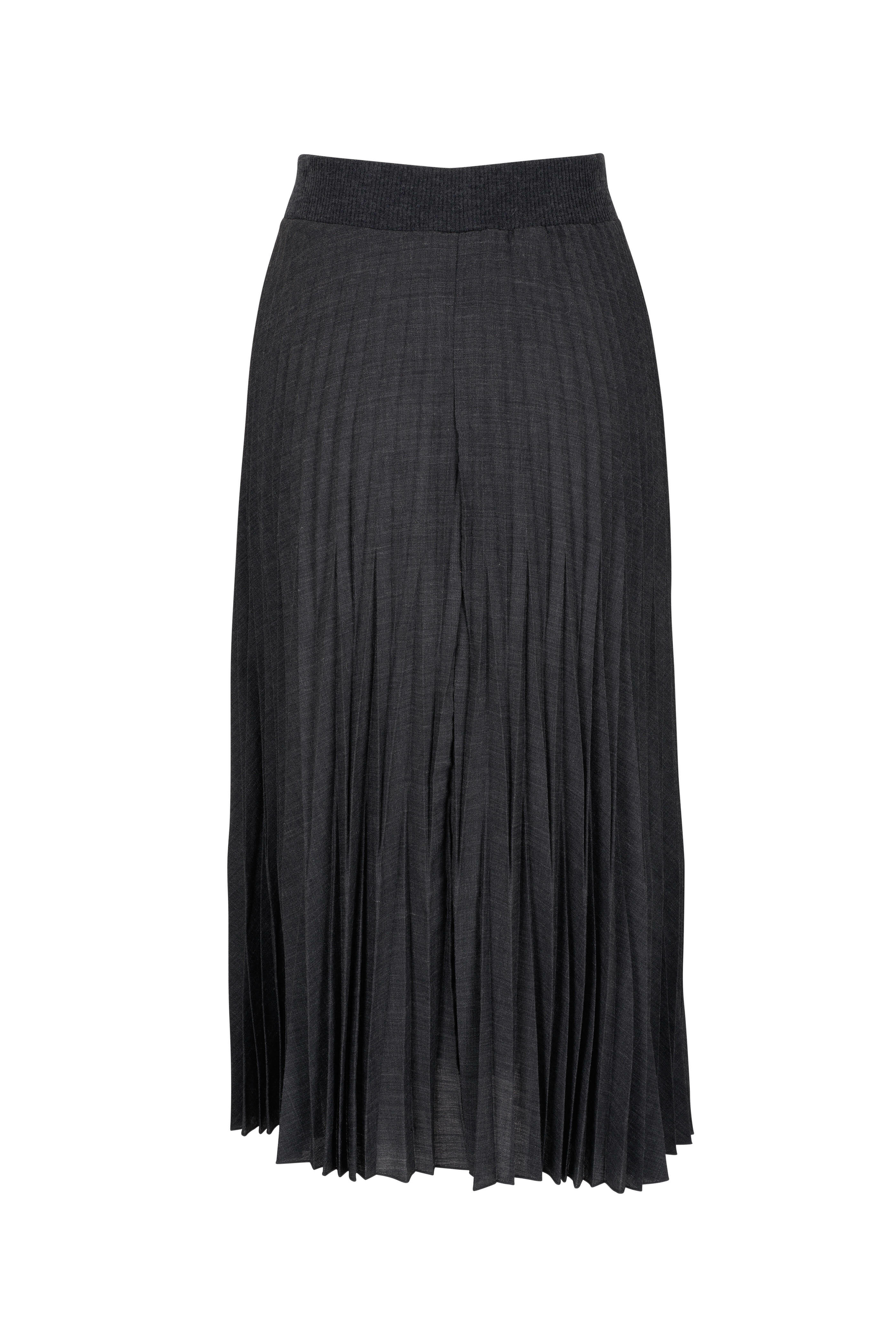 Slip-on style. Banded waistband. Straight hem. Made in Italy. 32” waist to hem. 100% wool. Dry clean.
