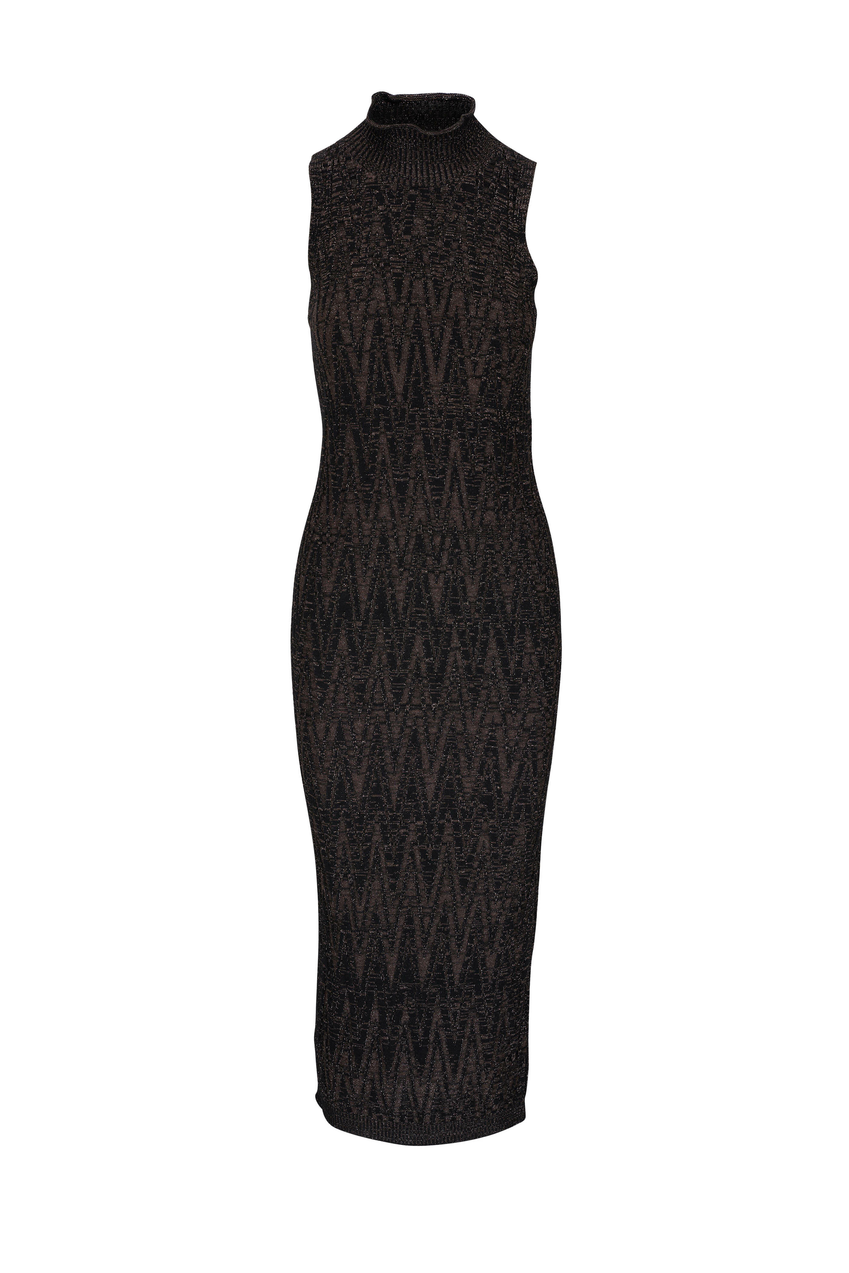 Mock neckline. Slip-on style. Straight hem. Made in Italy. 52” shoulder to hem. 60% wool, 28% viscose, 6% polyester, 6% metallic polyester. Hand wash.