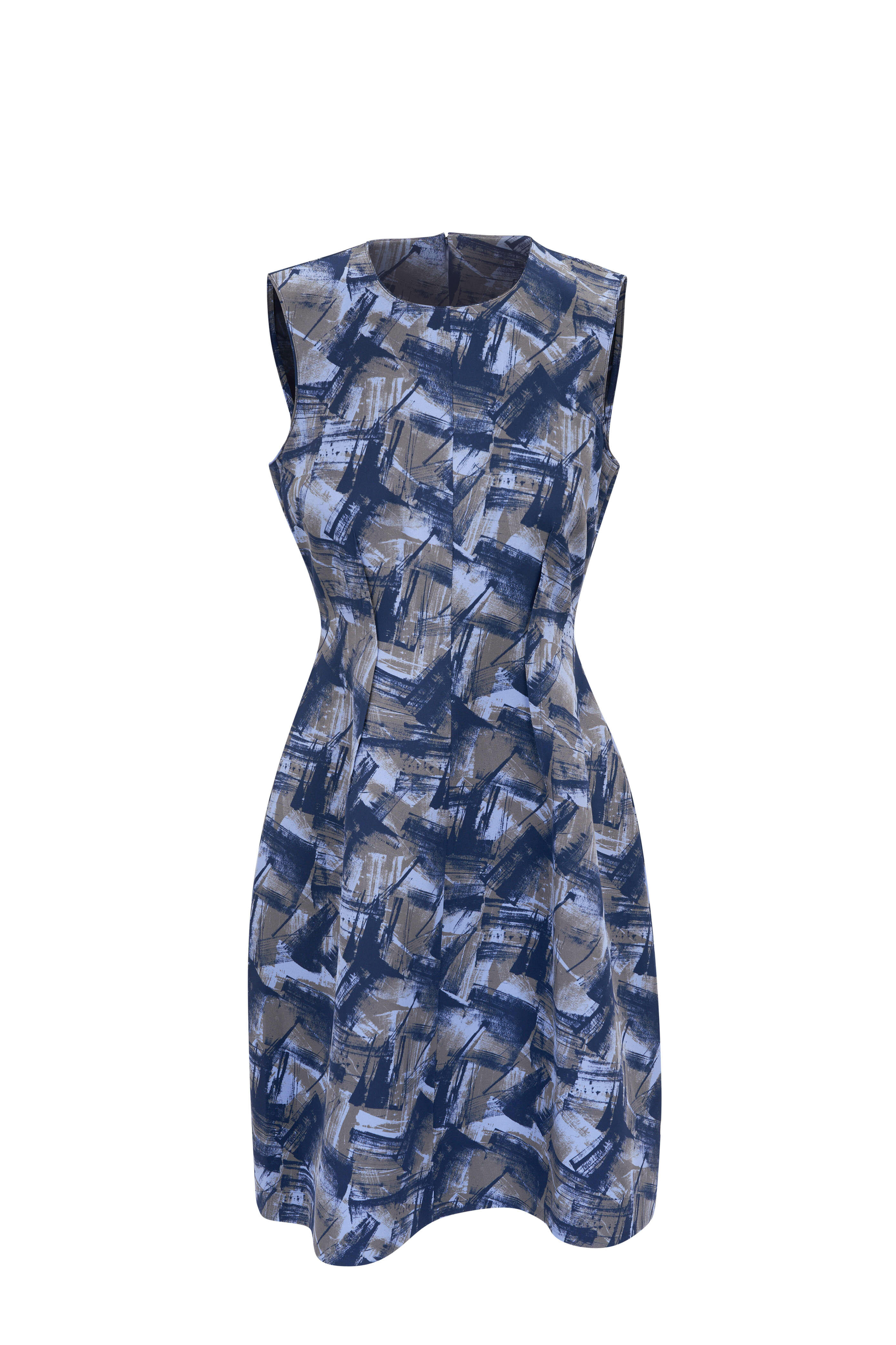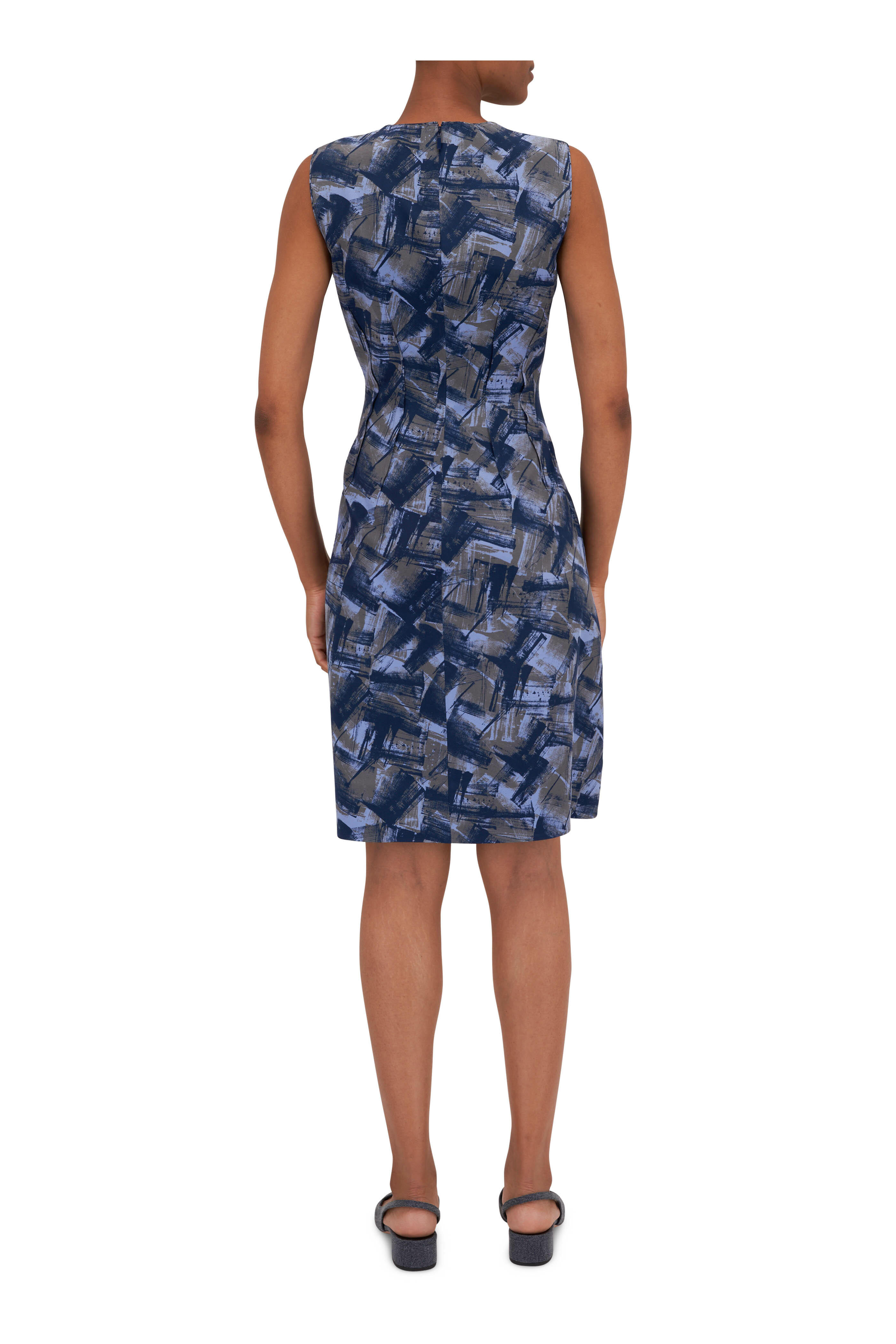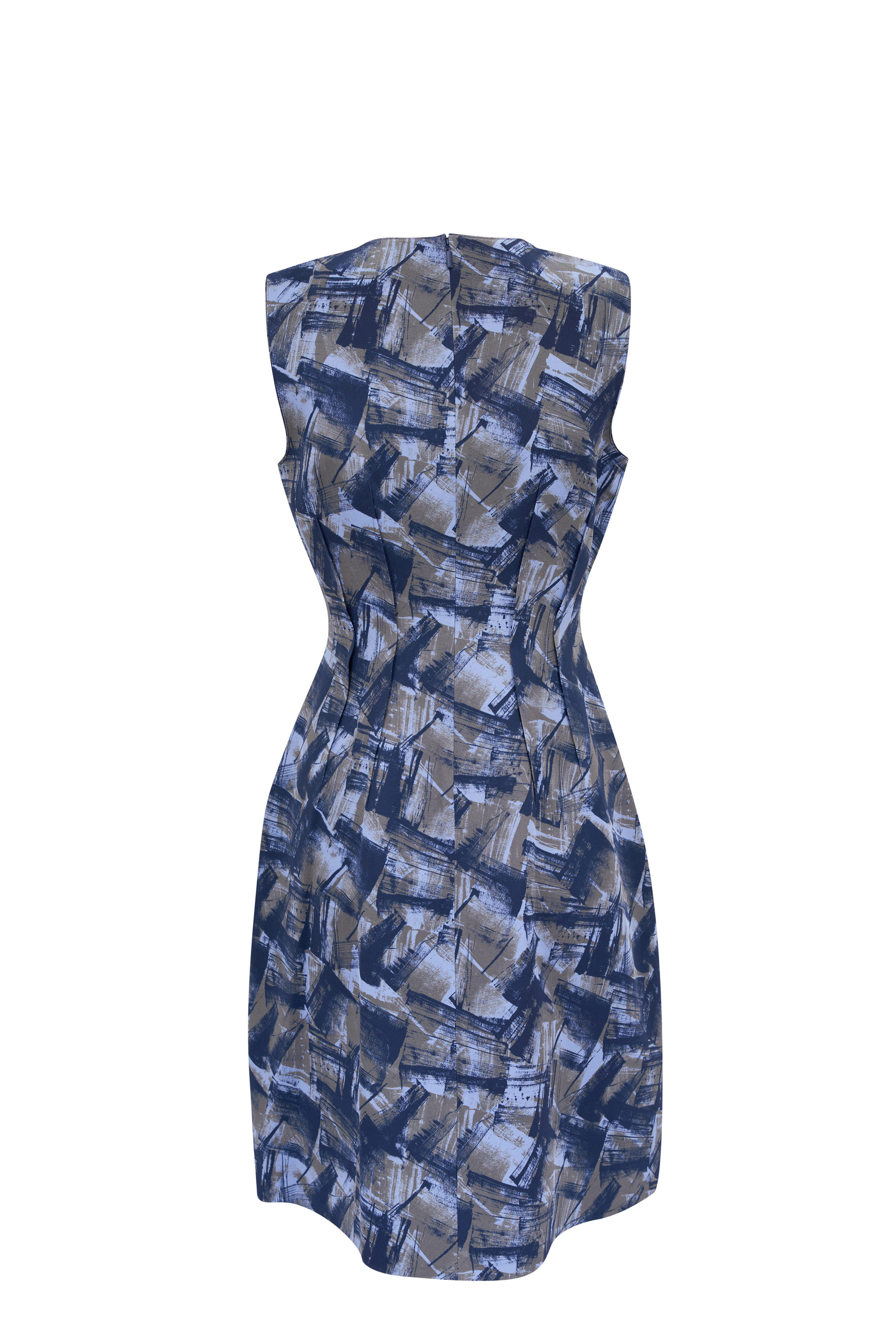 Round neckline. Concealed back zip. Exposed dart details. Imported. 38" shoulder to hem. 100% silk. Dry clean.