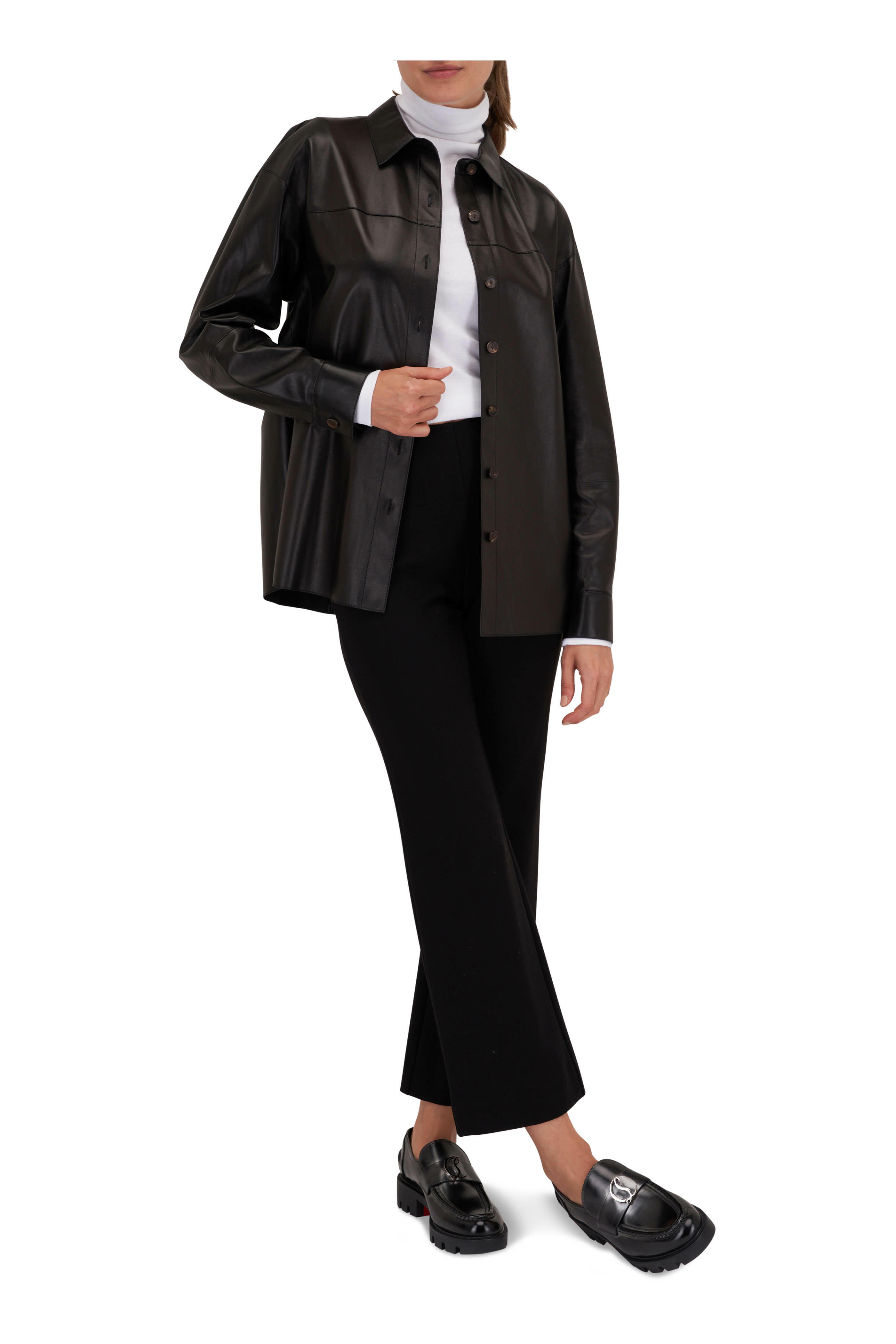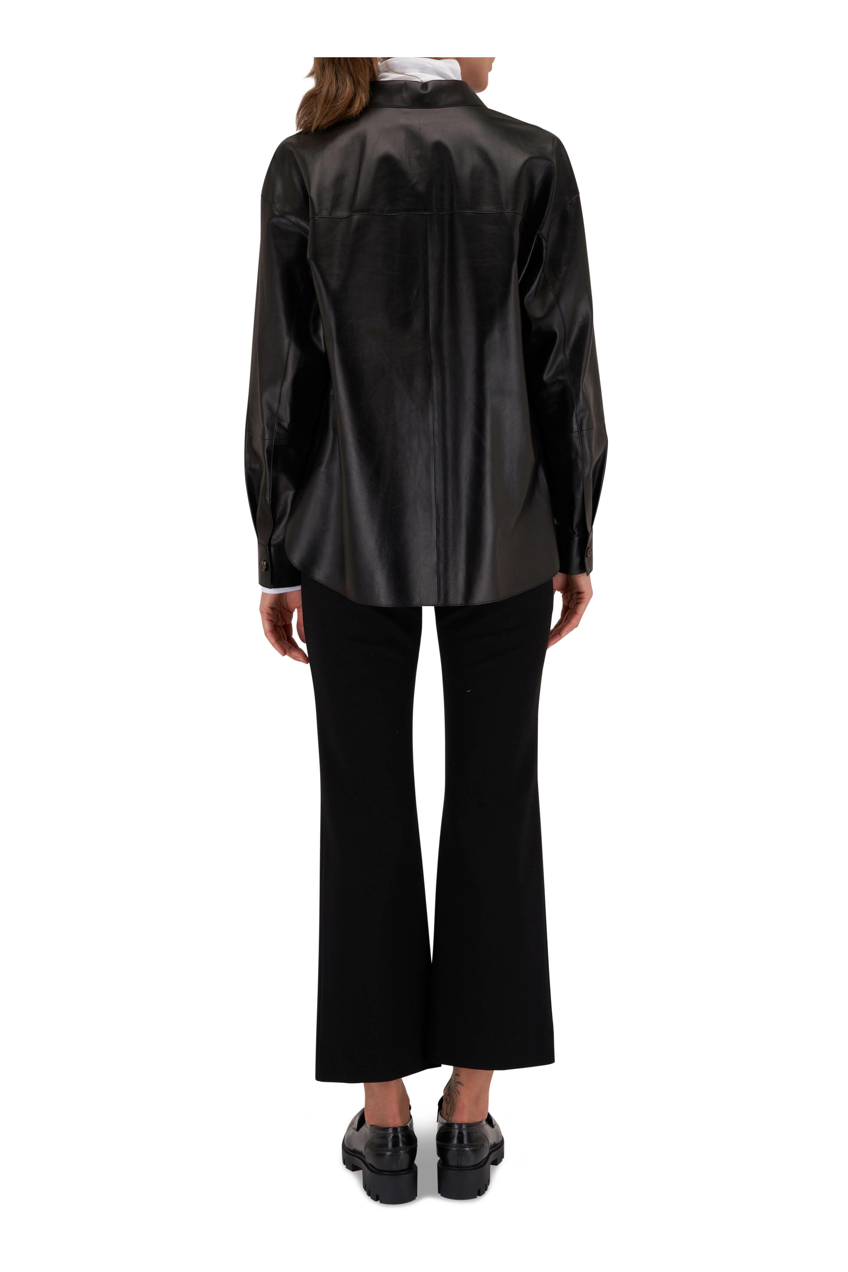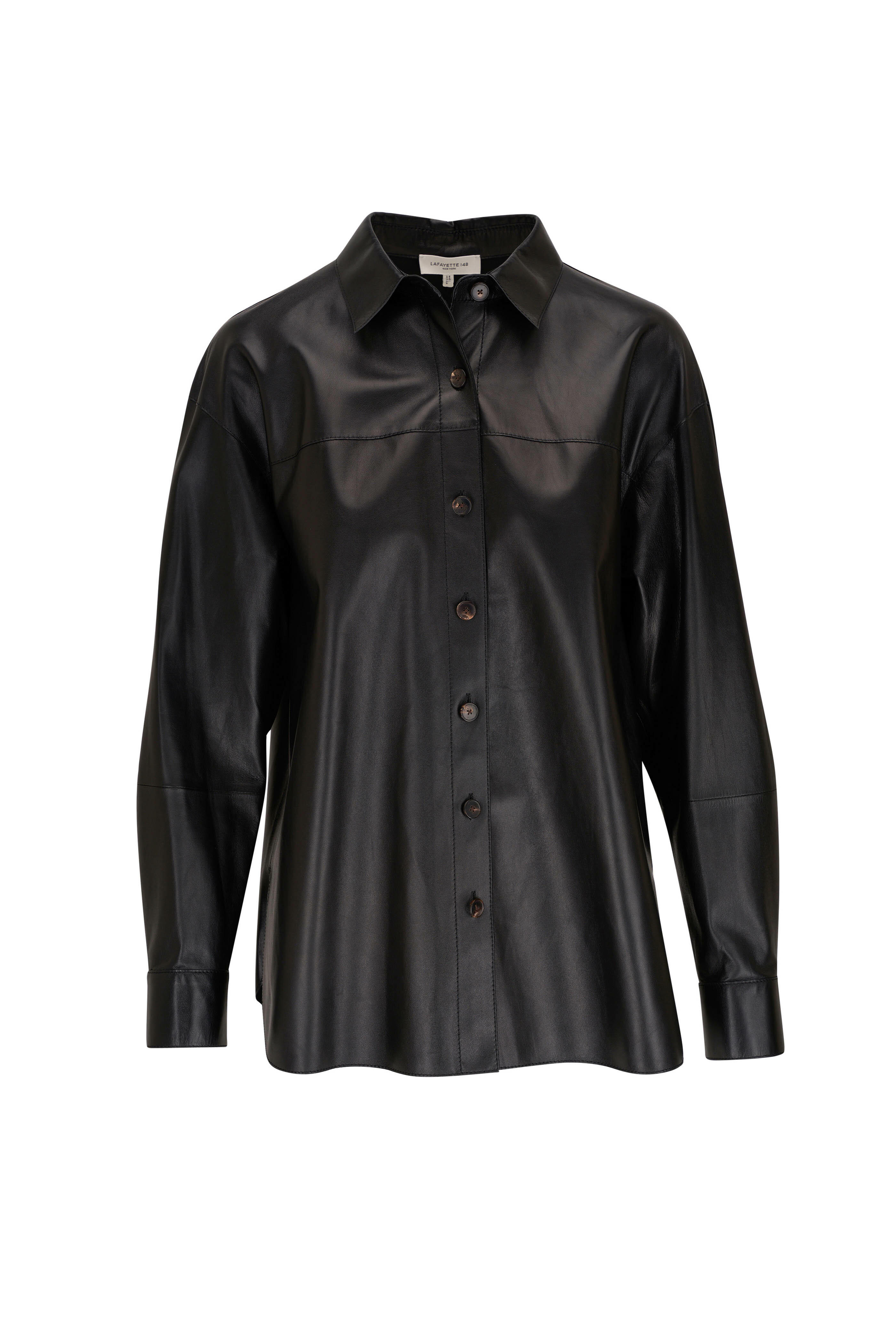 Specialist clean. Point collar. Front button placket. Single button cuffs. Classic shirttail hem. Imported. 100% lamb leather.