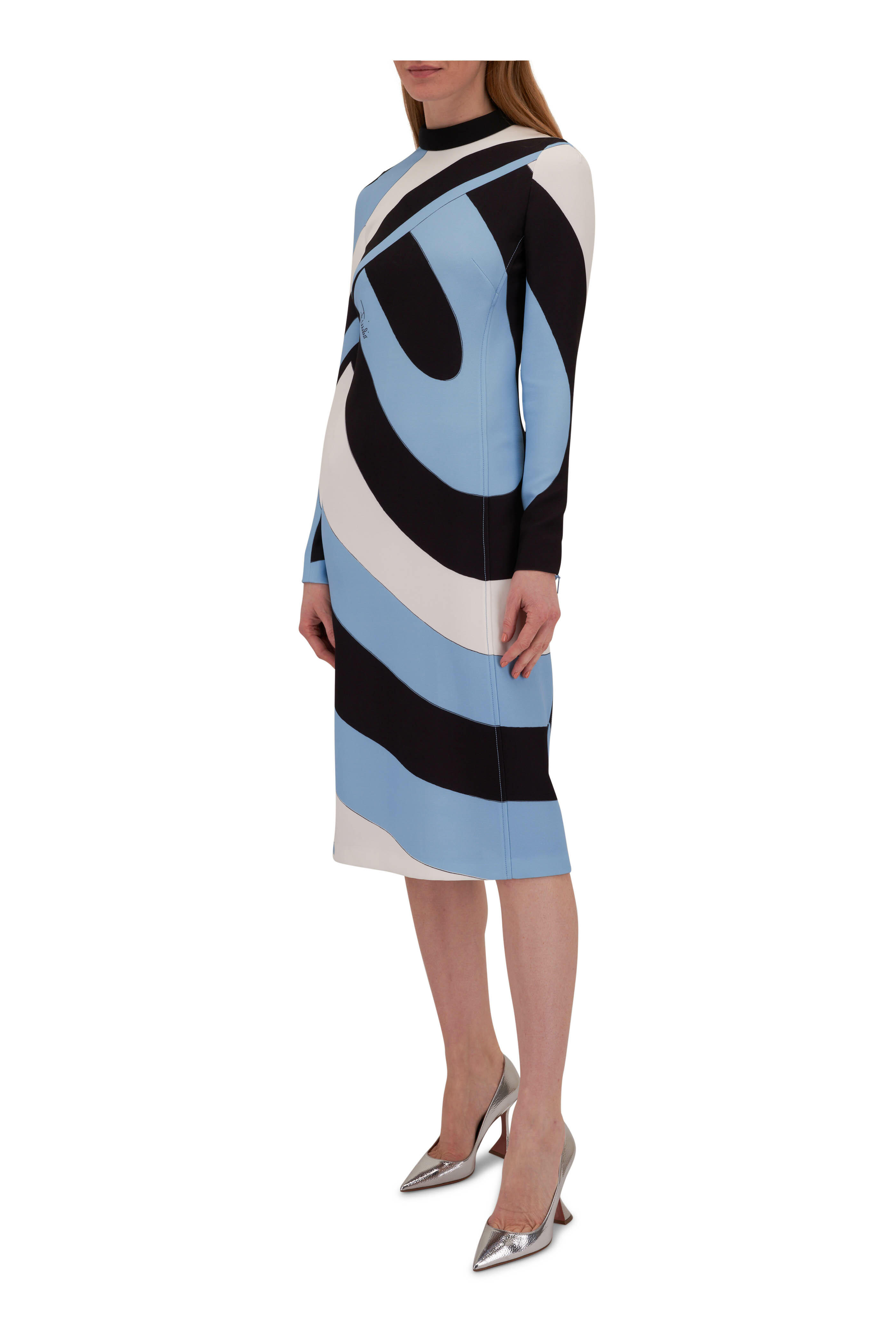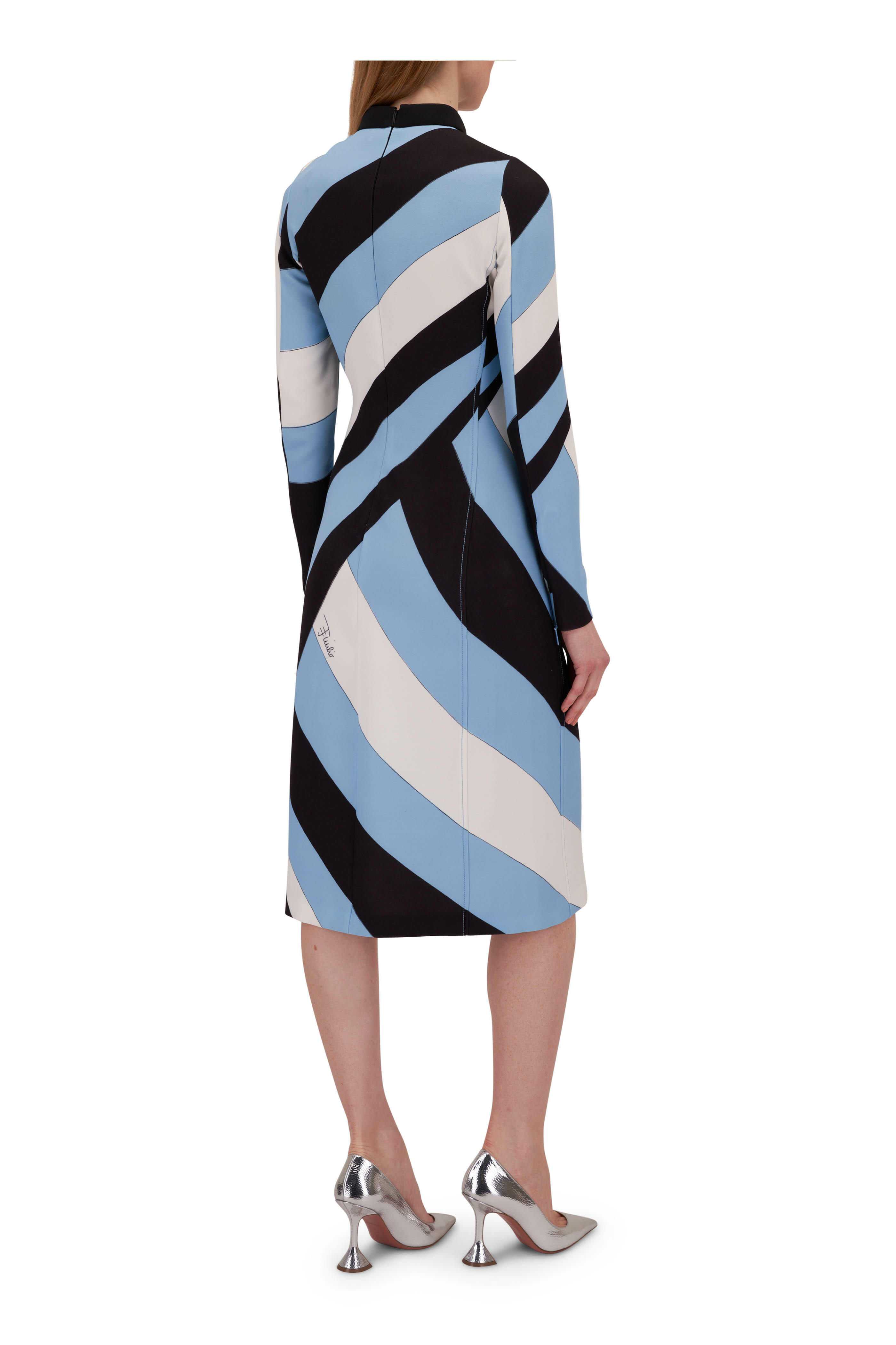 Stand collar. Concealed back zip. Zip cuffs. Straight hem. Made in Italy. Approx. 43" shoulder to hem. 96% polyester, 4% elastane. Dry clean.