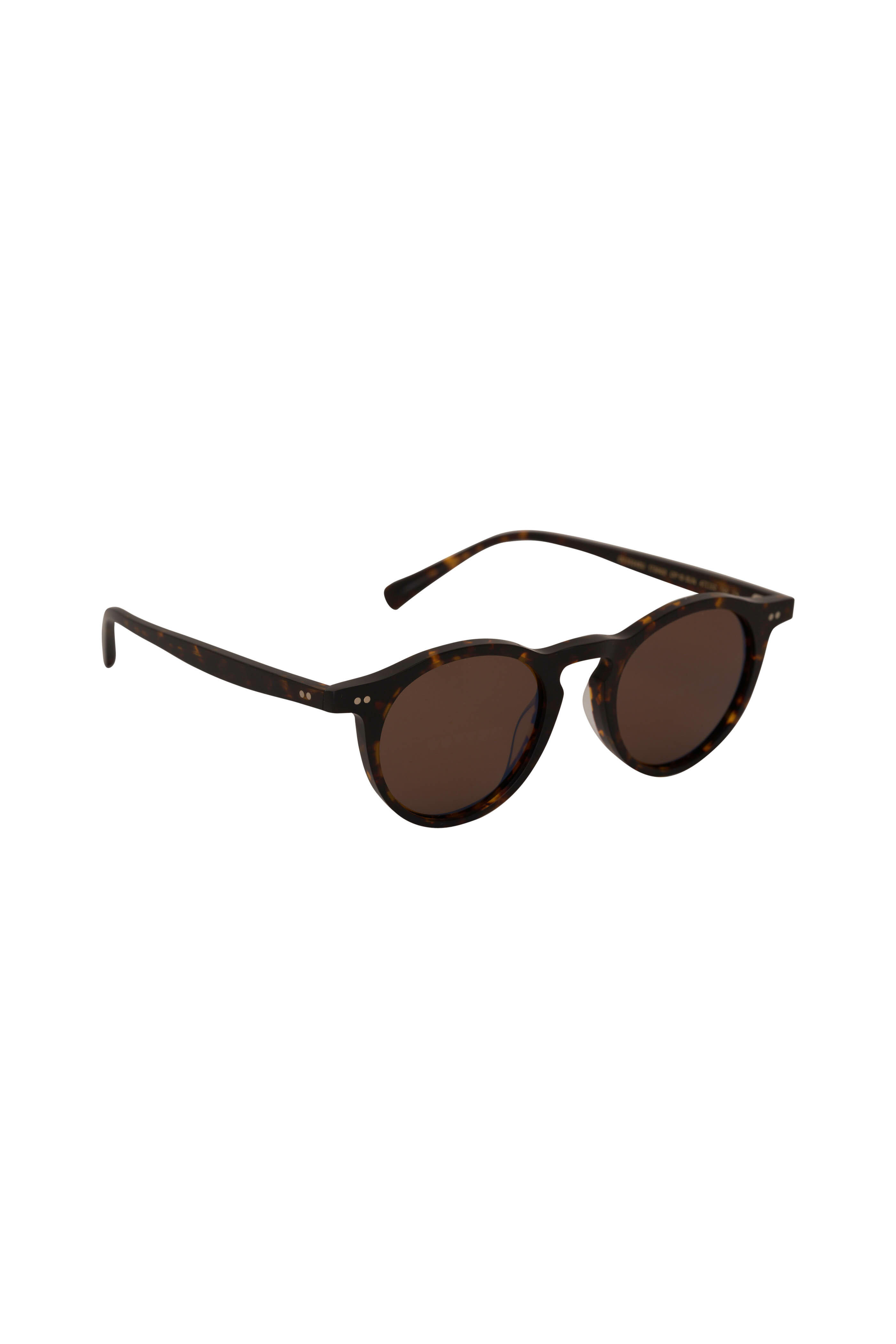 Frame material: acetate. Frame color: semi-matte atago tortoise. Frame fit: round frame. Lens type: glass. Lens color: cognac mirror. Made in Japan. 100% UV protection.