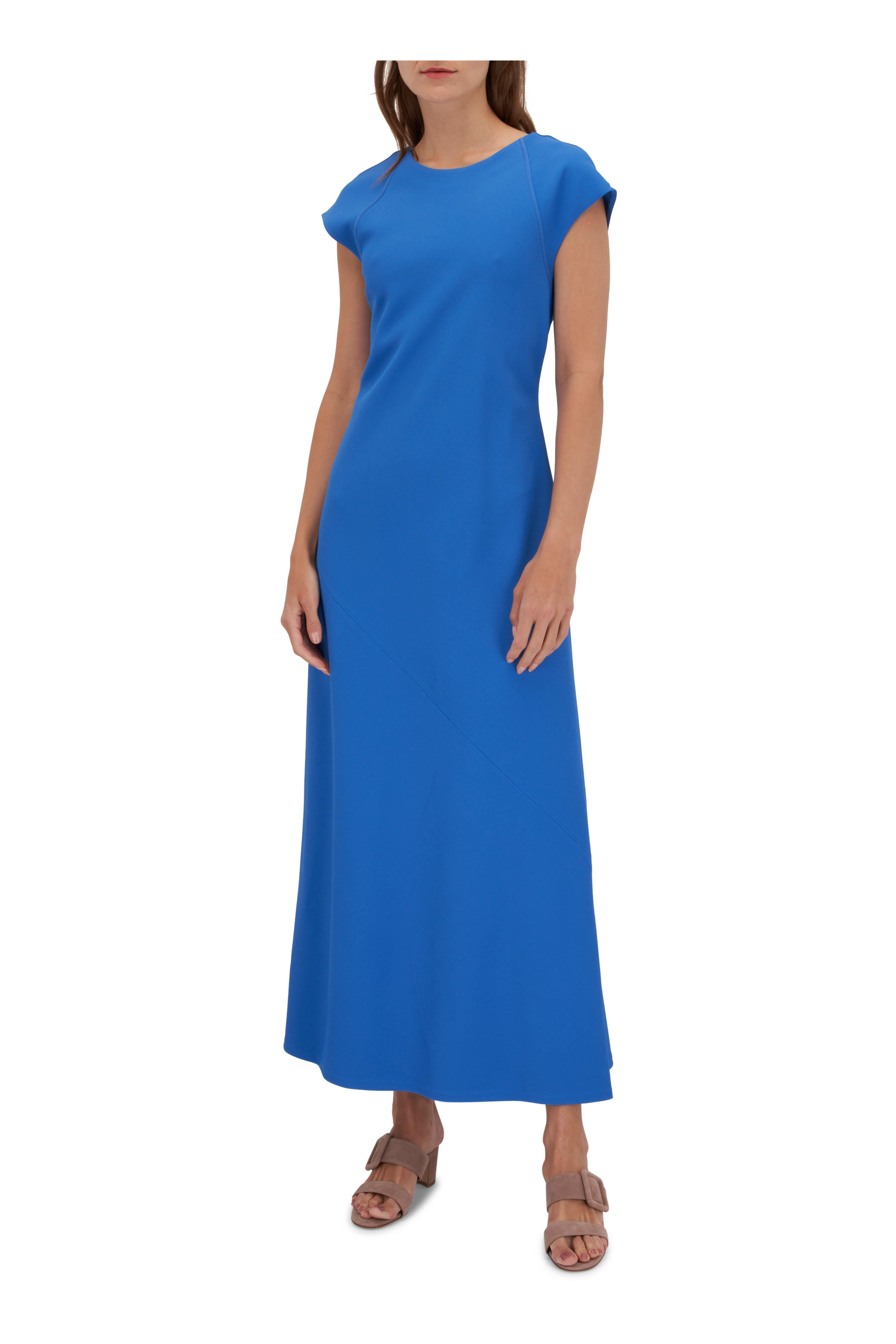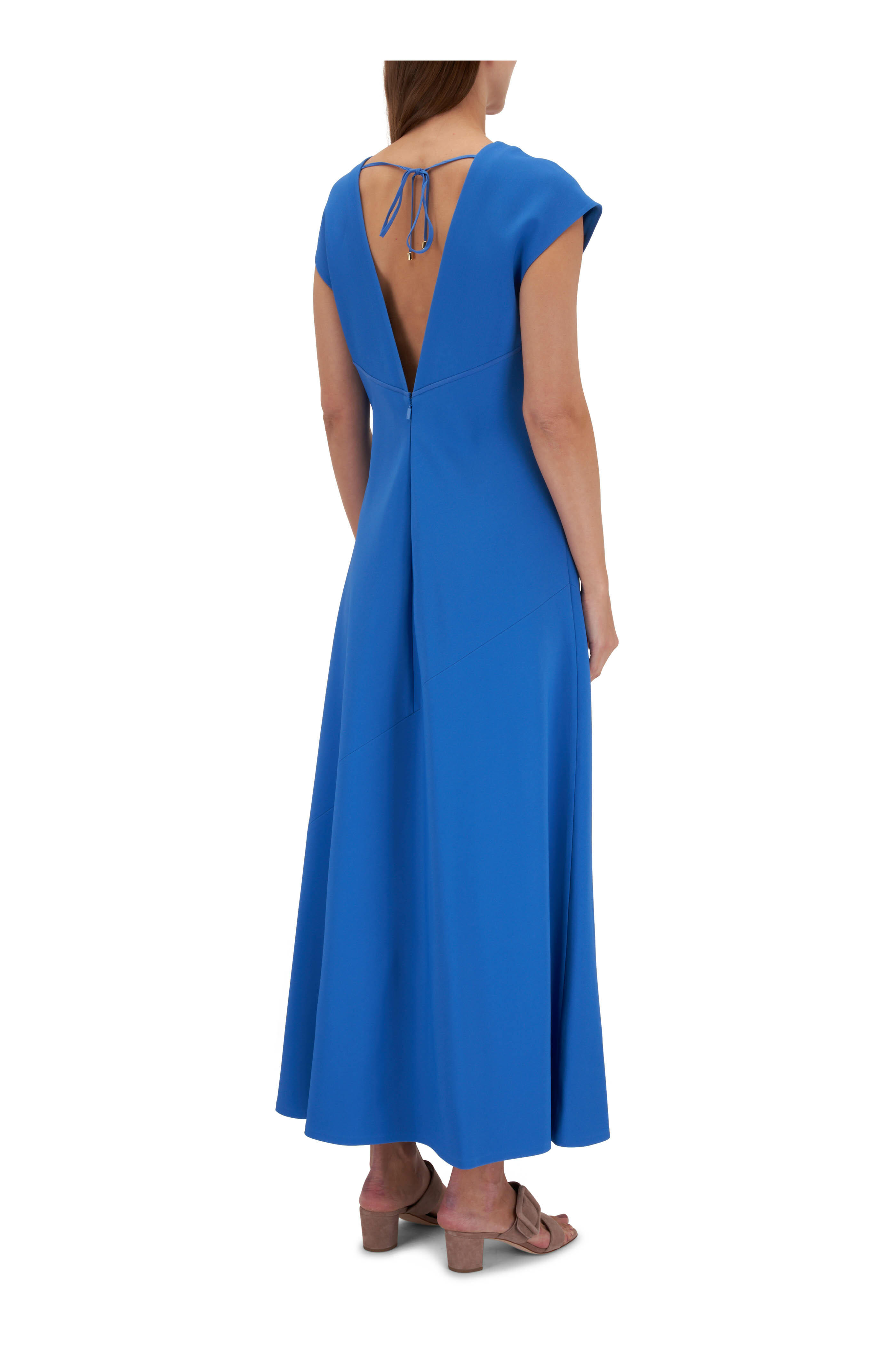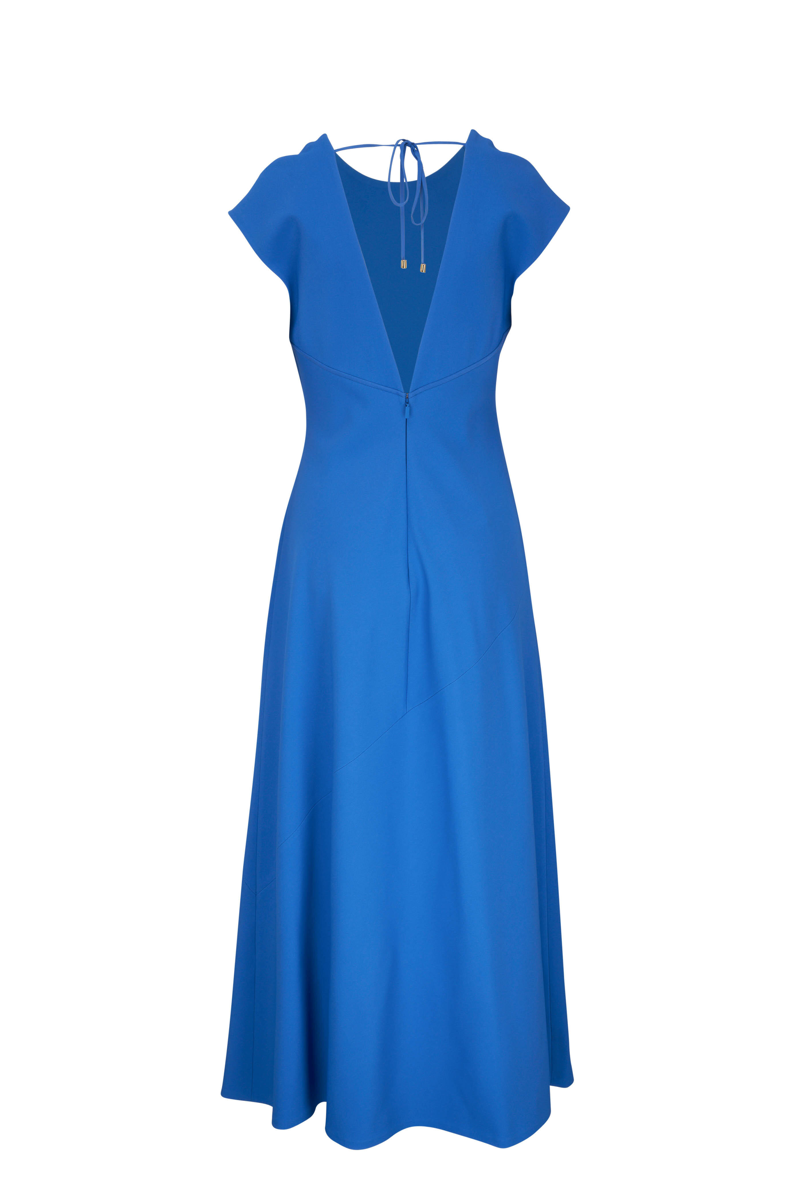 Classic Cobalt Blue Cap Sleeve V-Back Gown