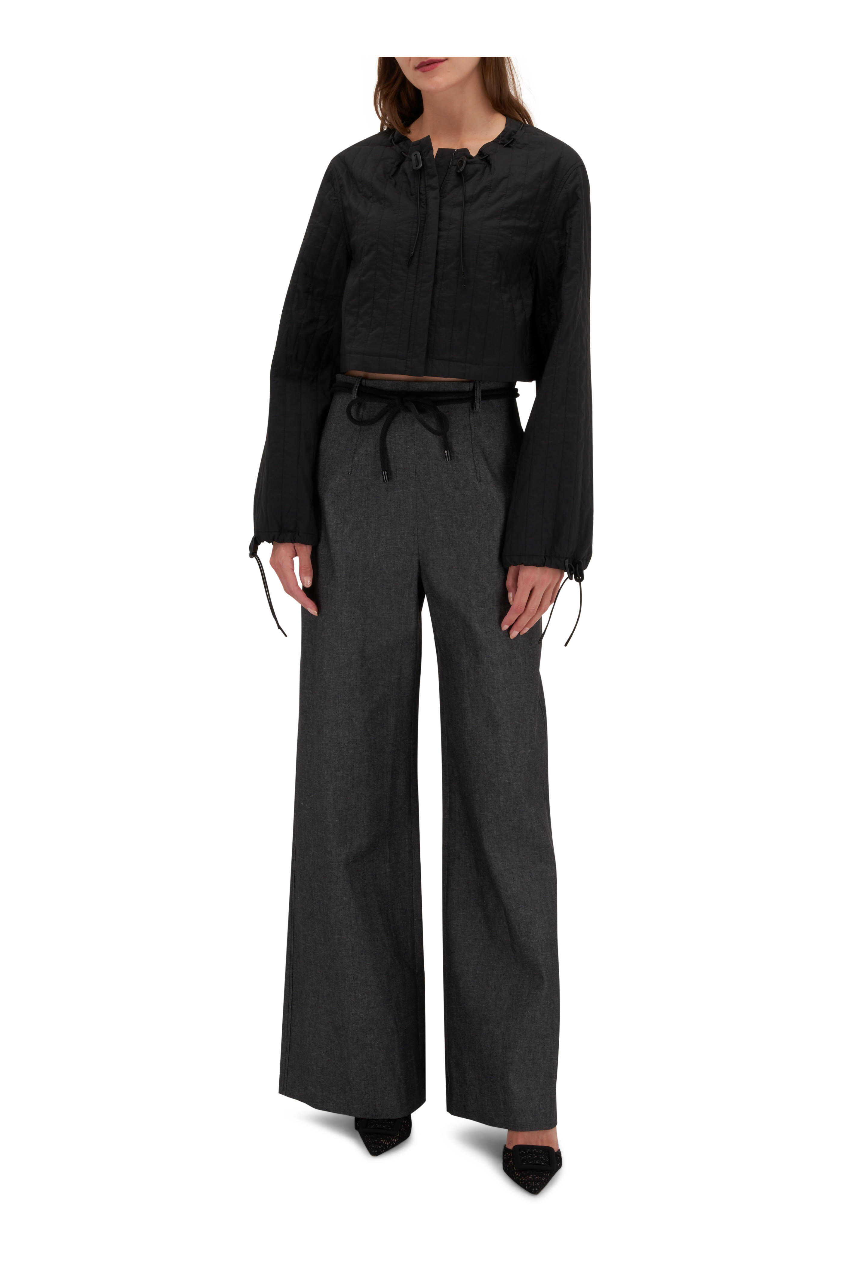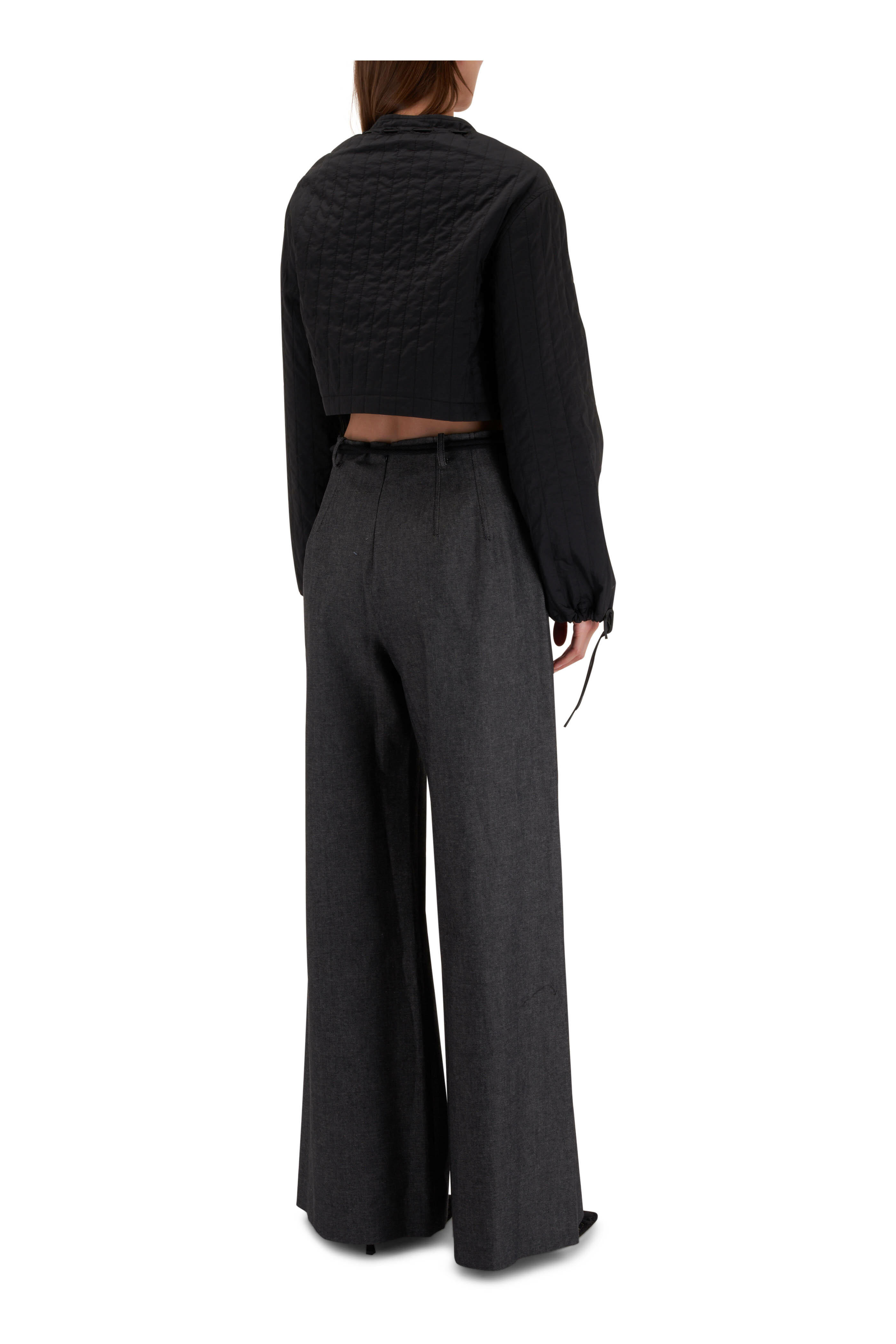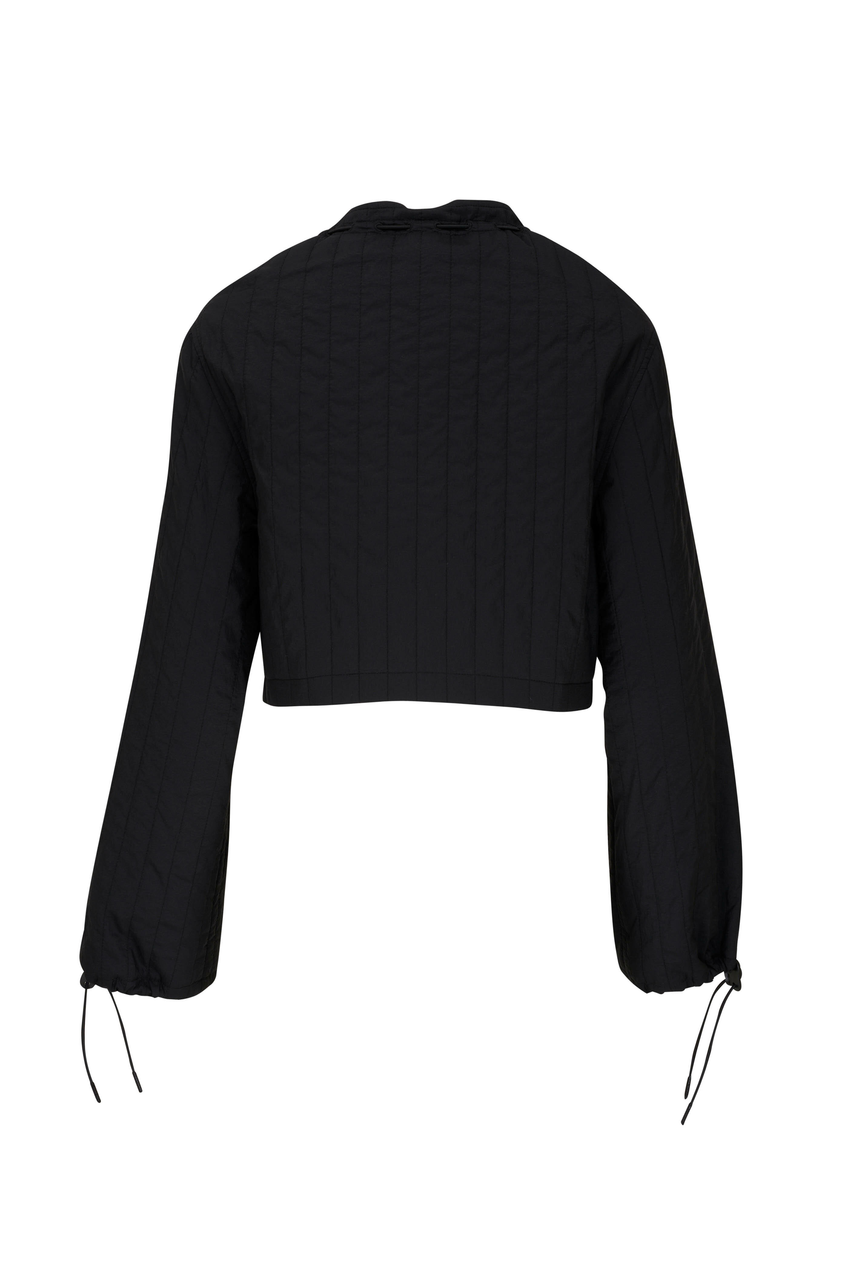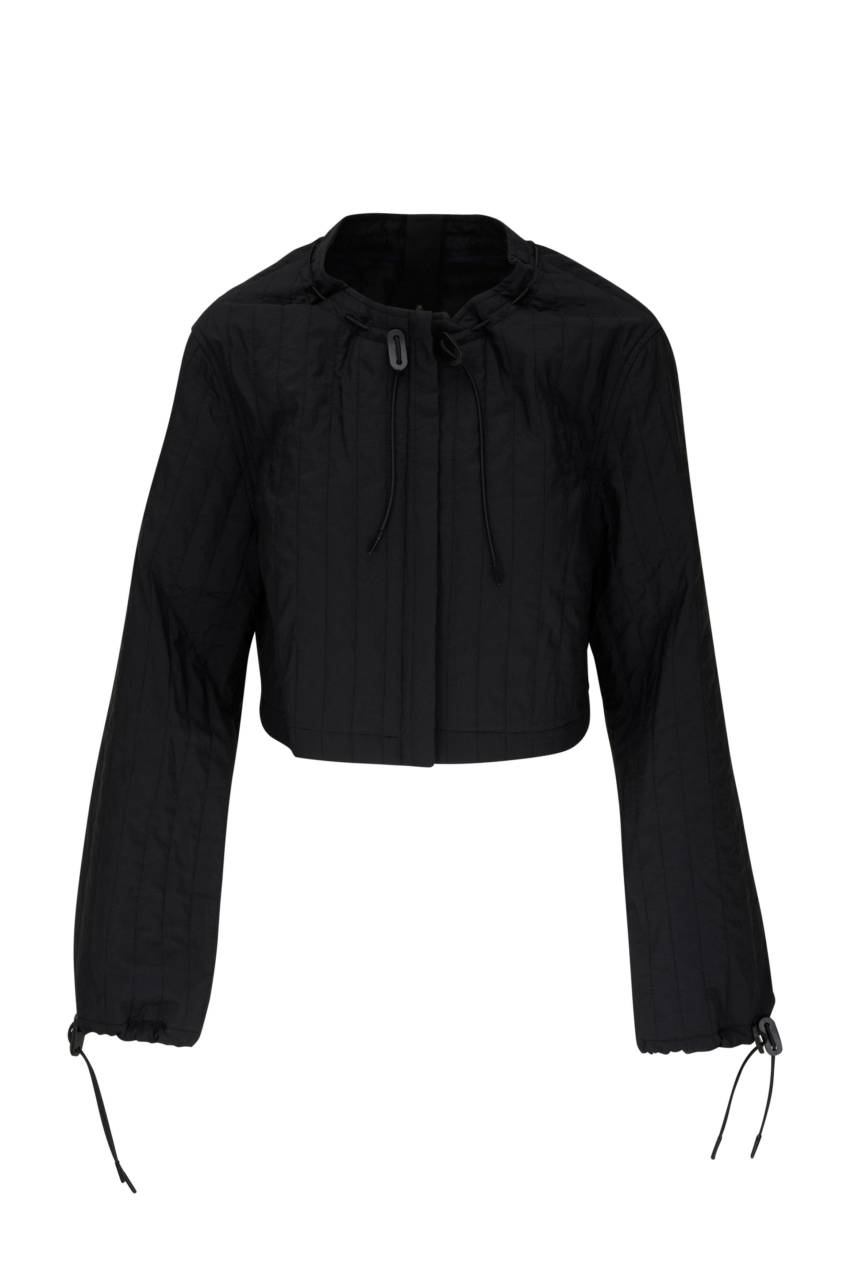Round neckline. Concealed zip placket. Adjustable cinching at neck and cuffs. Reversible to contrast seam detailing. Made in the USA. 100% polyamide. Dry clean.
